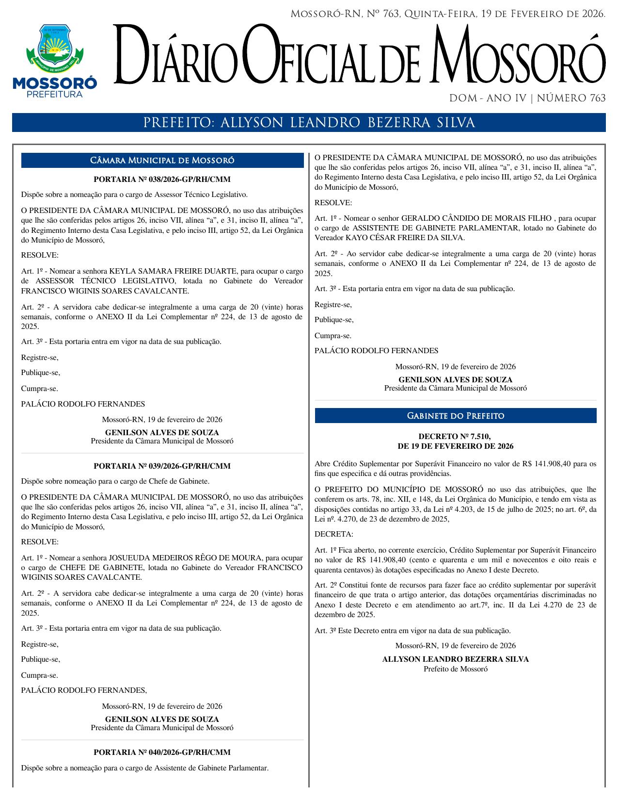 EXTRATO DE ADITIVO Aditivo nº 02/2026 – Contrato Nº 03/2024. Pregão nº 13/2023-SEMAD+. Objeto: Pr...
