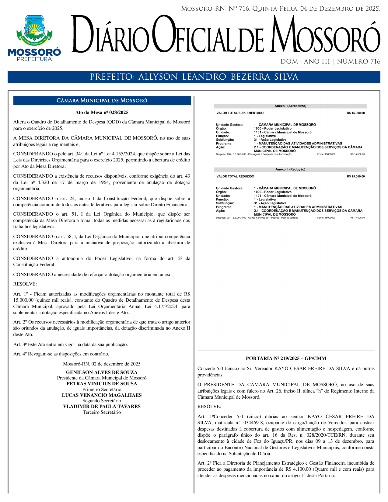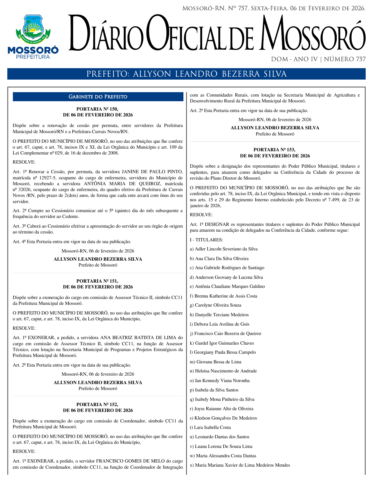 O PREFEITO DO MUNICÍPIO DE MOSSORÓ, no uso das atribuições que lhe confere o art. 67, caput, e ar...