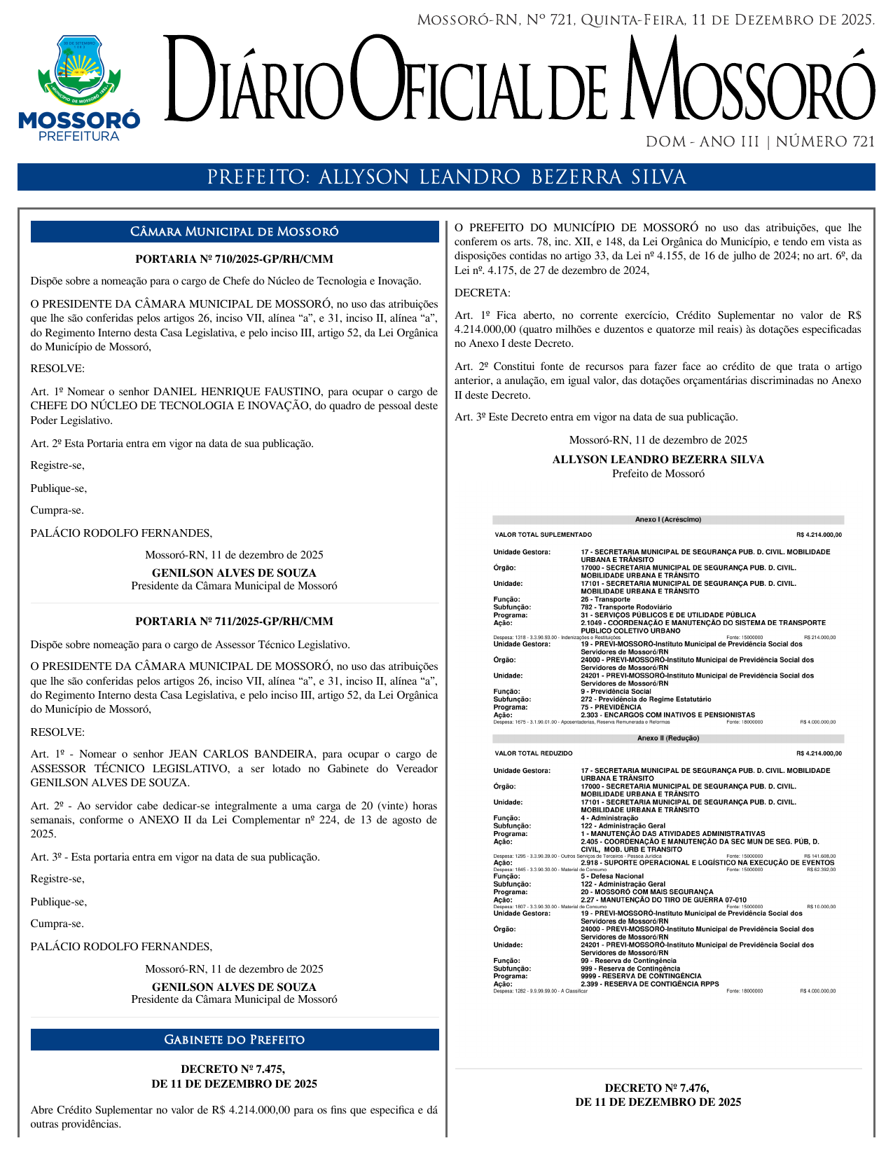 O PRESIDENTE DO INSTITUTO MUNICIPAL DE PREVIDÊNCIA SOCIAL DE MOSSORÓ – PREVI-MOSSORÓ e a SECRETAR...