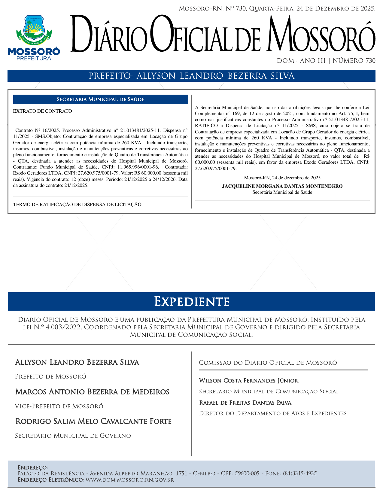 EXTRATO DE CONTRATO Contrato Nº 16/2025. Processo Administrativo n° 21.013481/2025-11. Dispensa ...