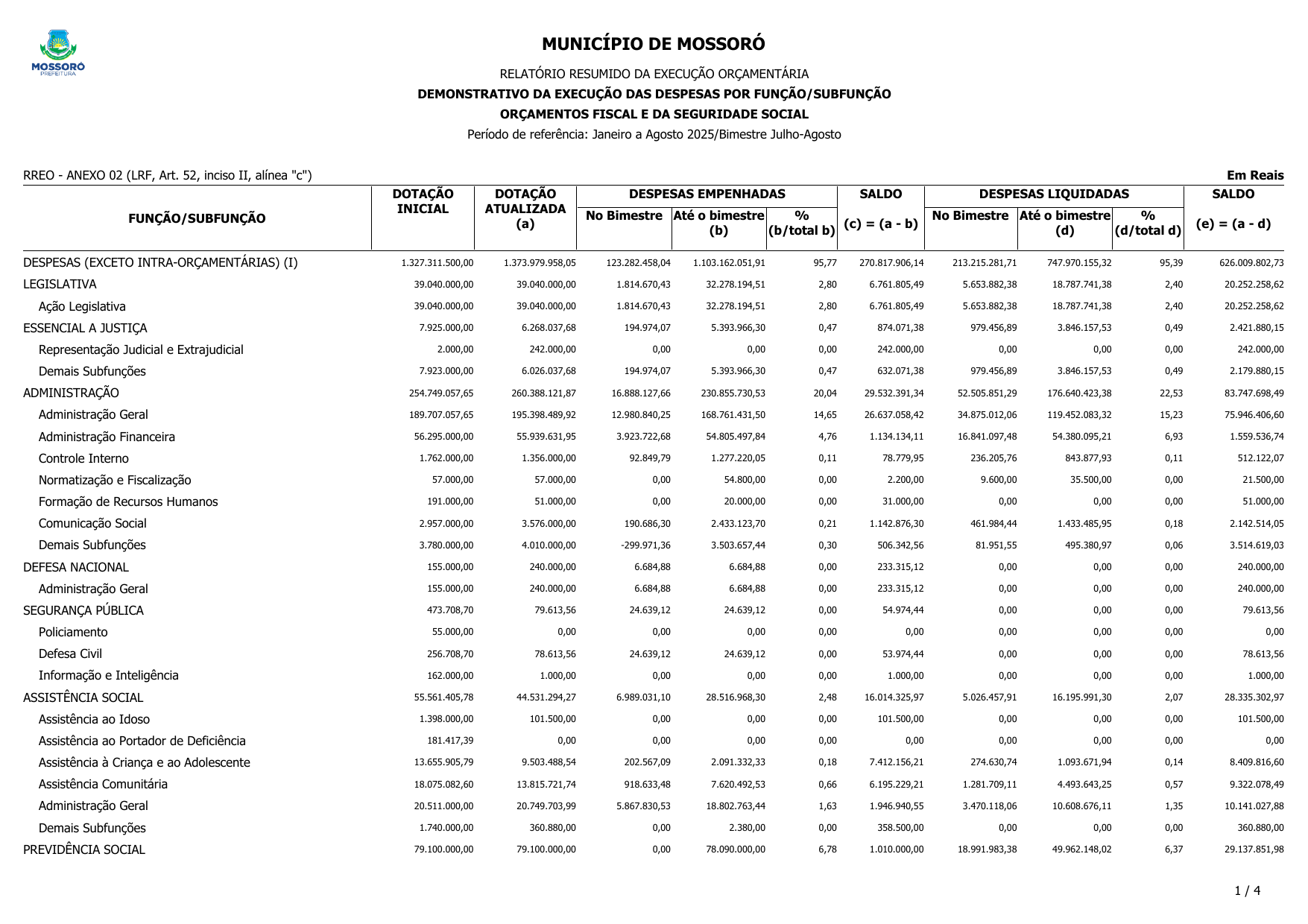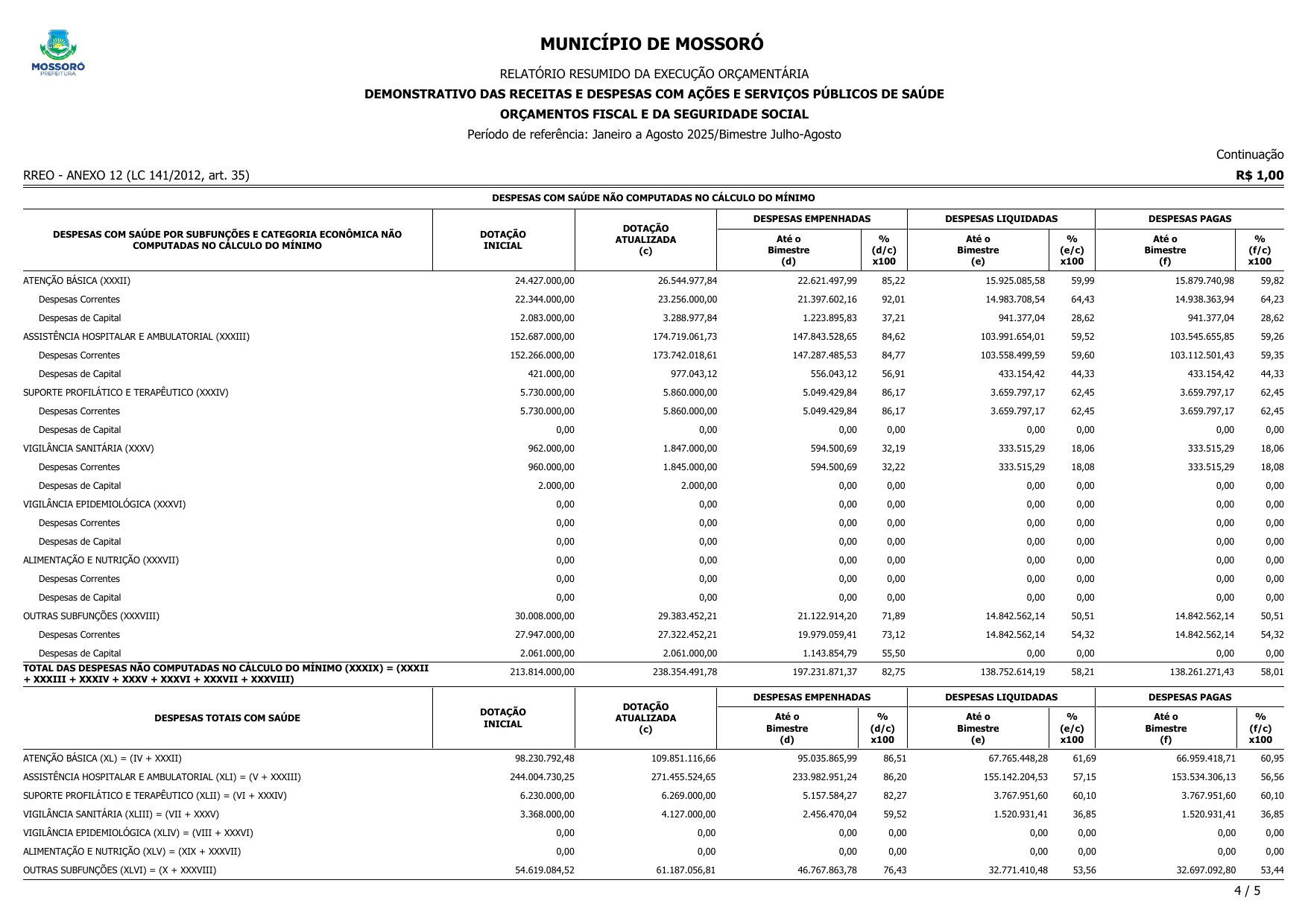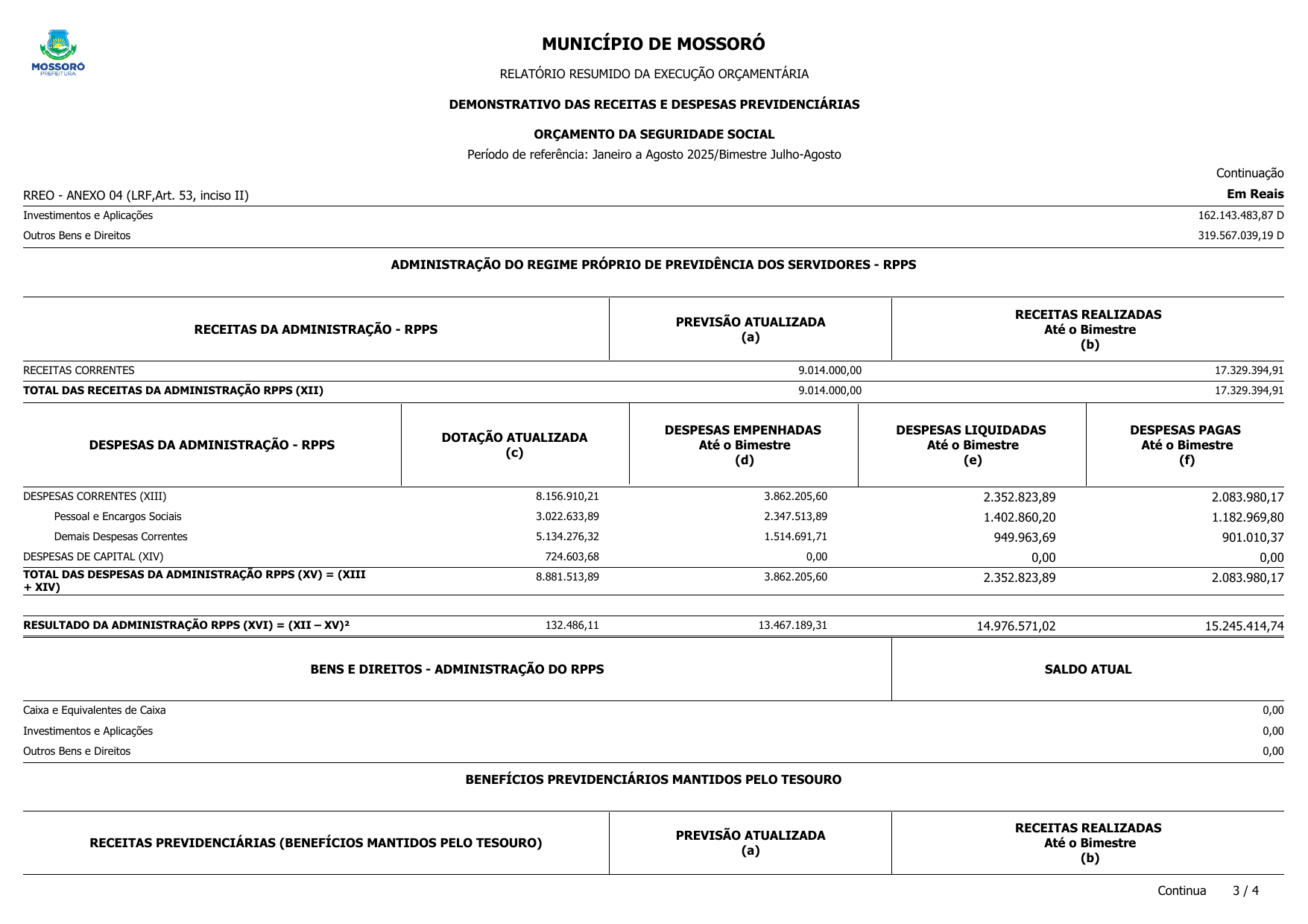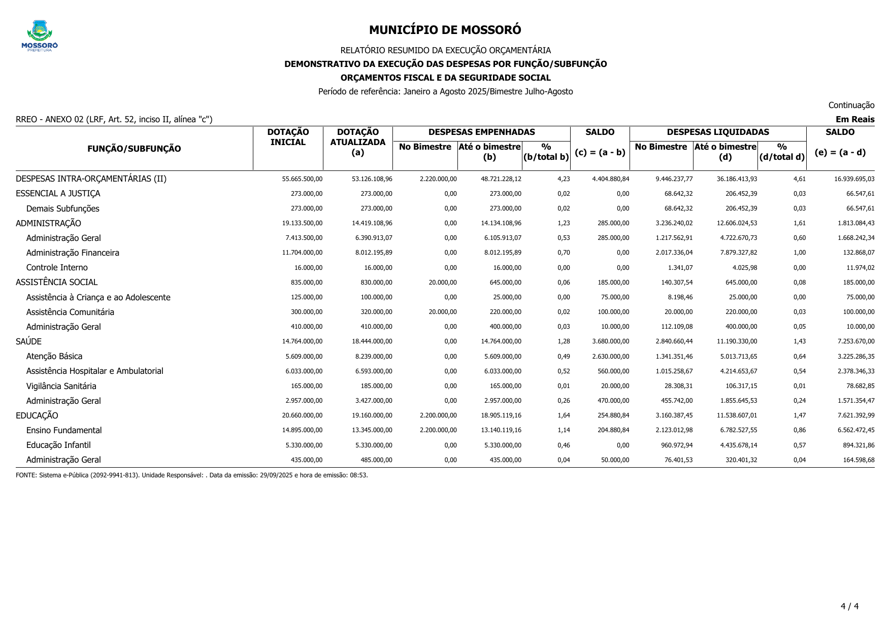 RELATÓRIO RESUMIDO DA EXECUÇÃO ORÇAMENTÁRIA - RREO DO 4º BIMESTRE DE 2025
