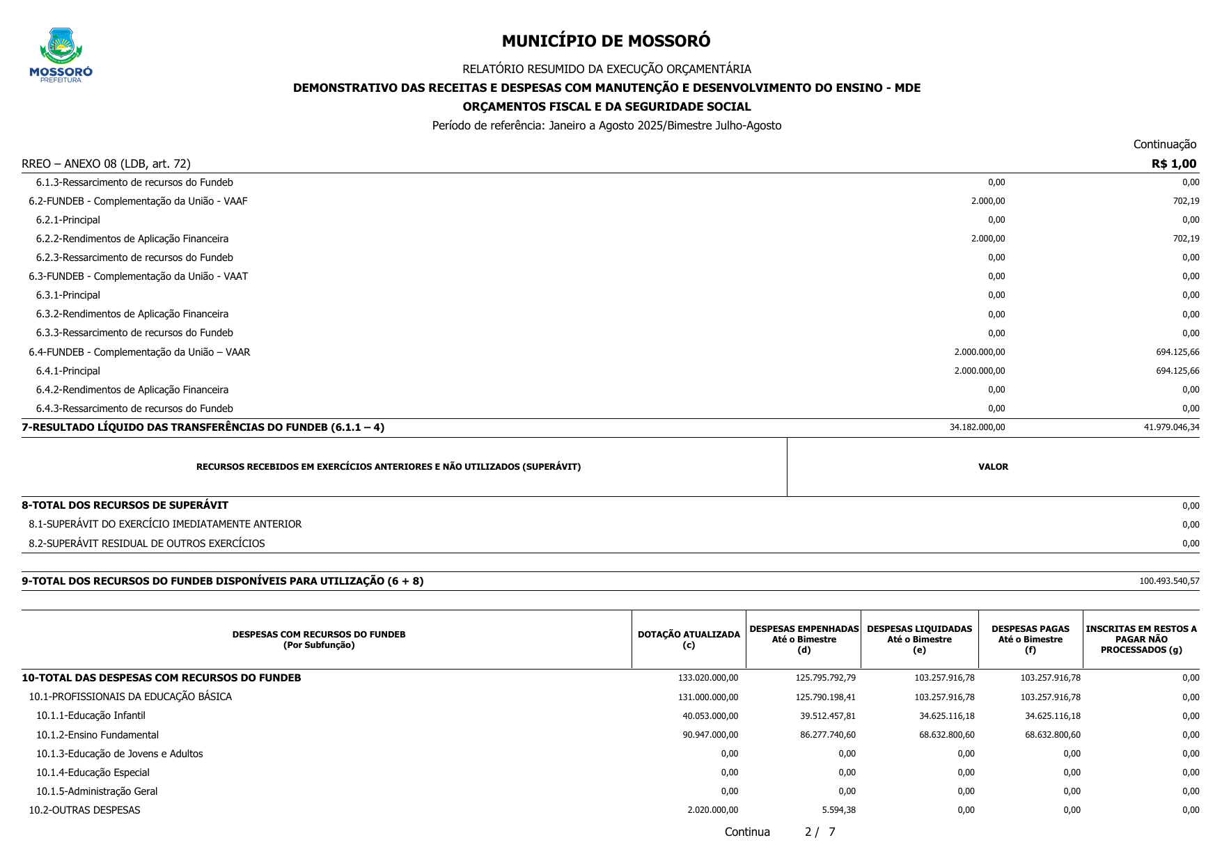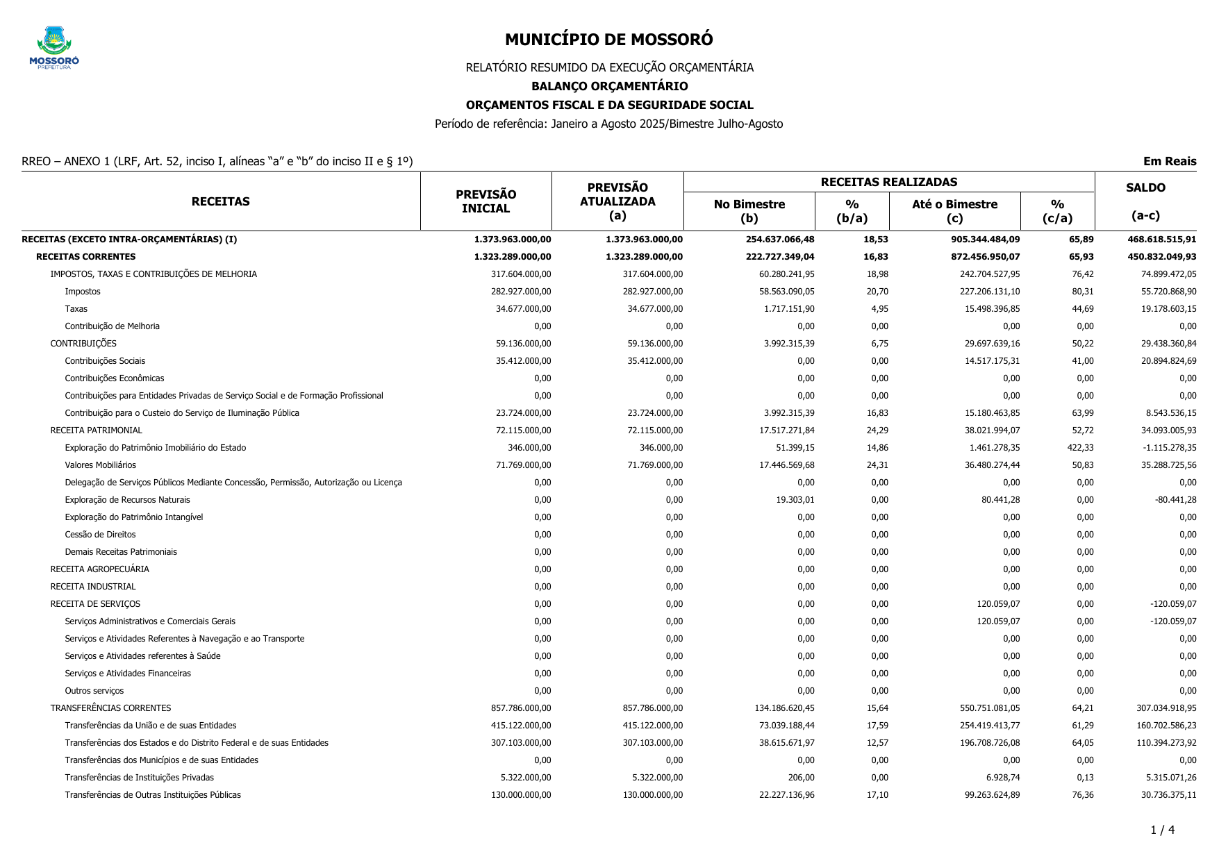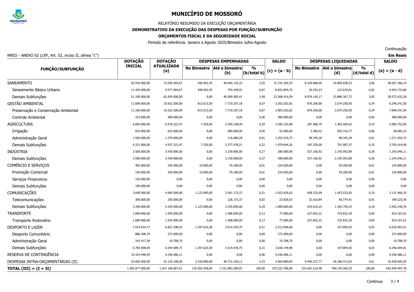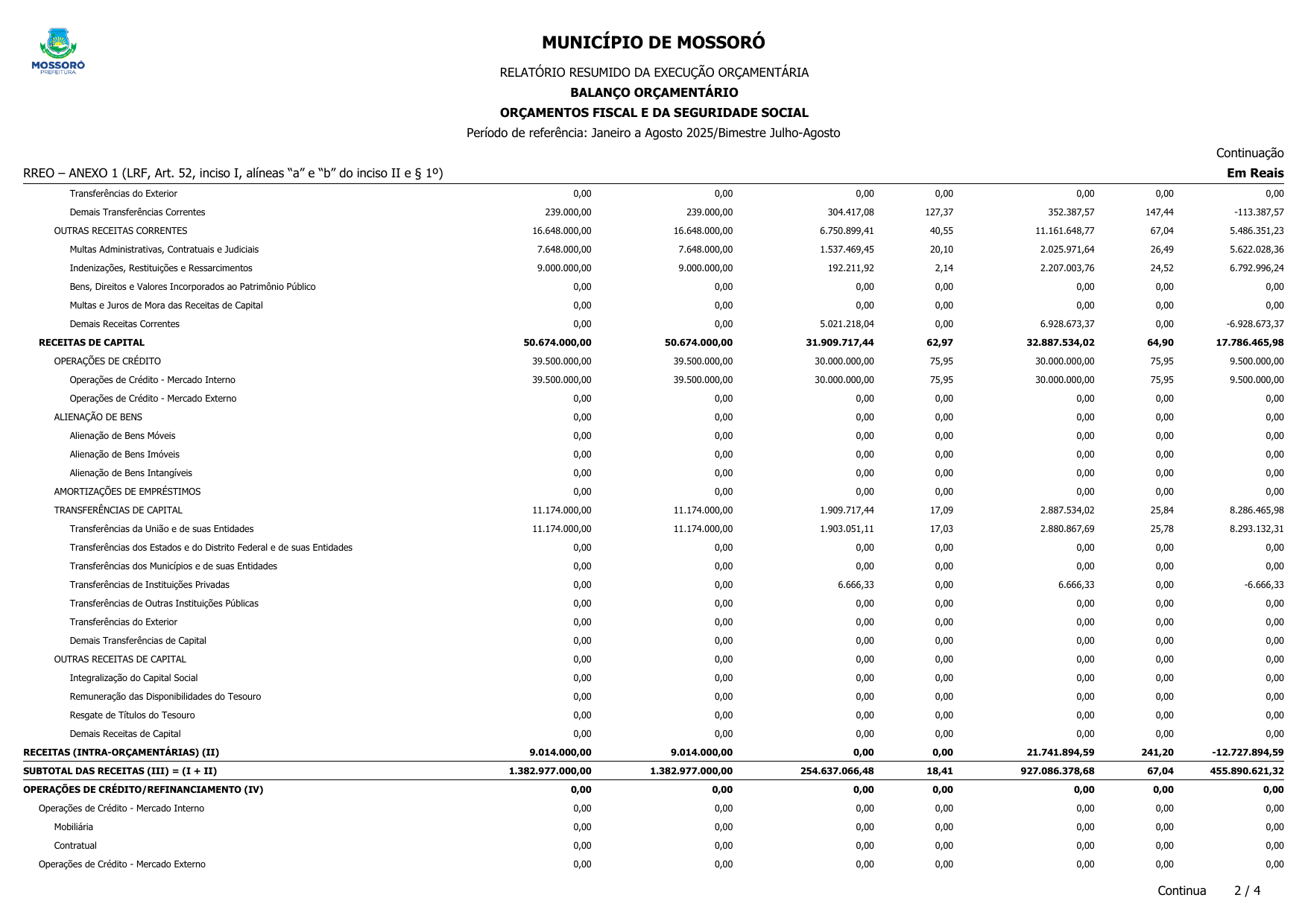 RELATÓRIO RESUMIDO DA EXECUÇÃO ORÇAMENTÁRIA - RREO DO 4º BIMESTRE DE 2025