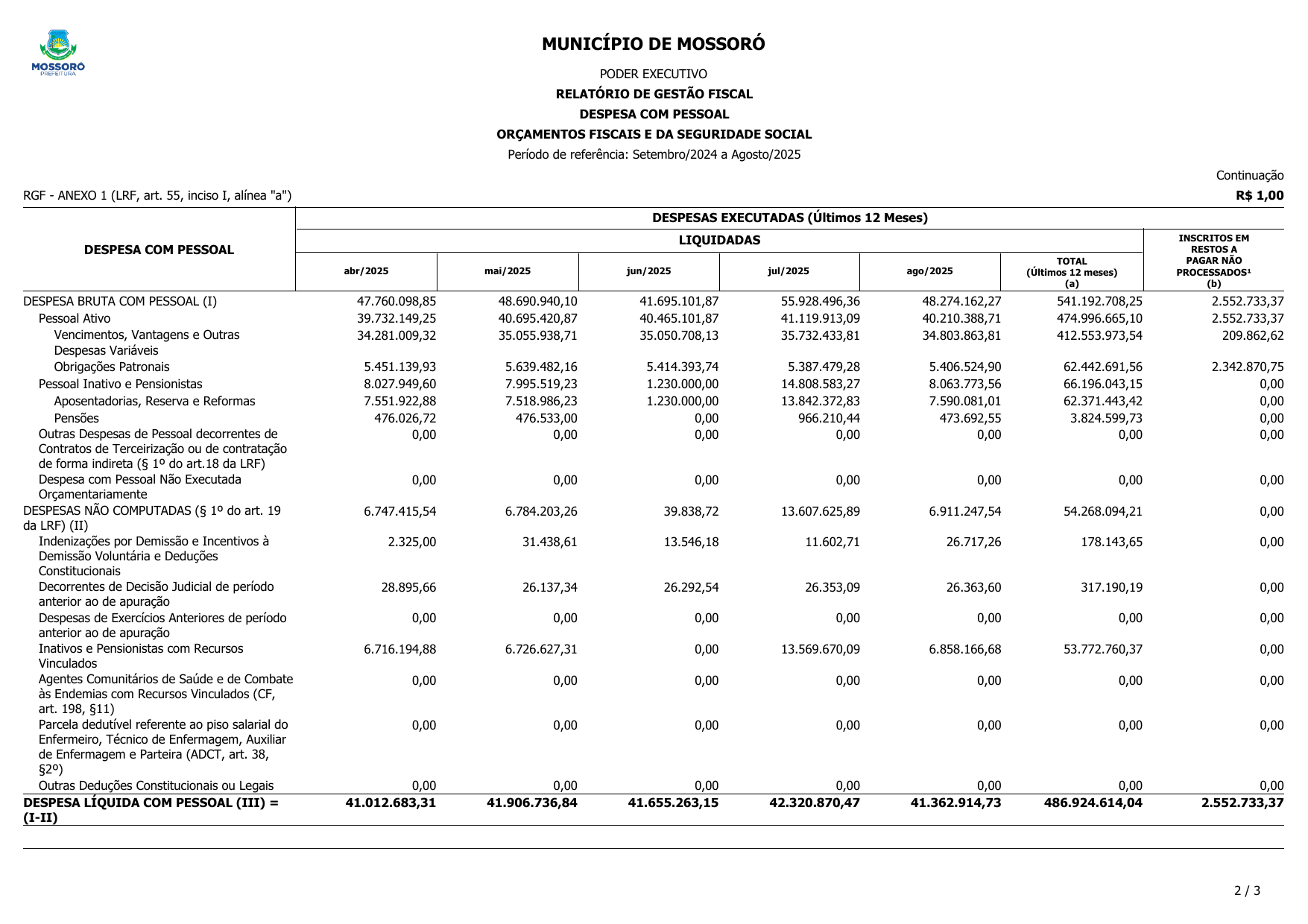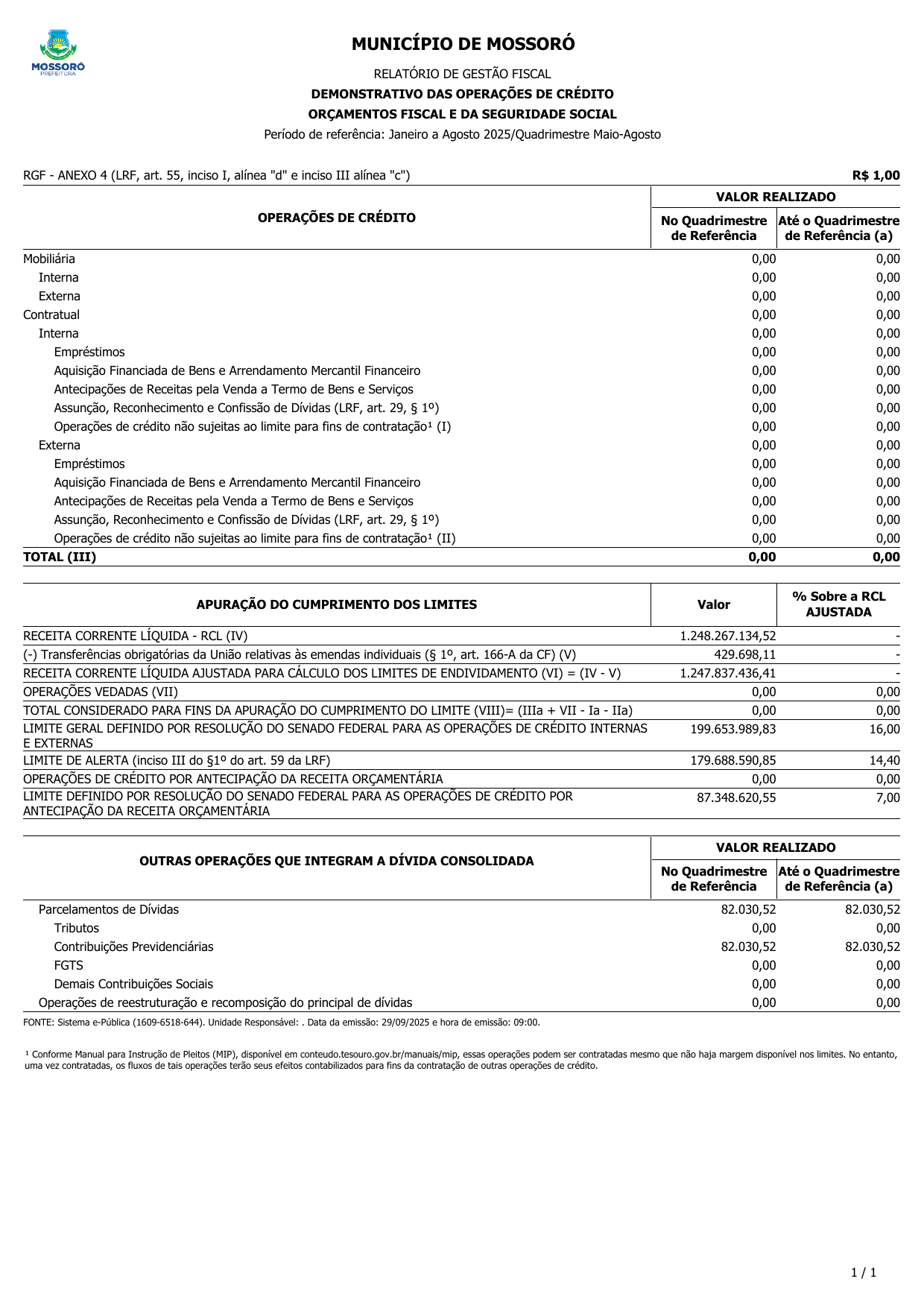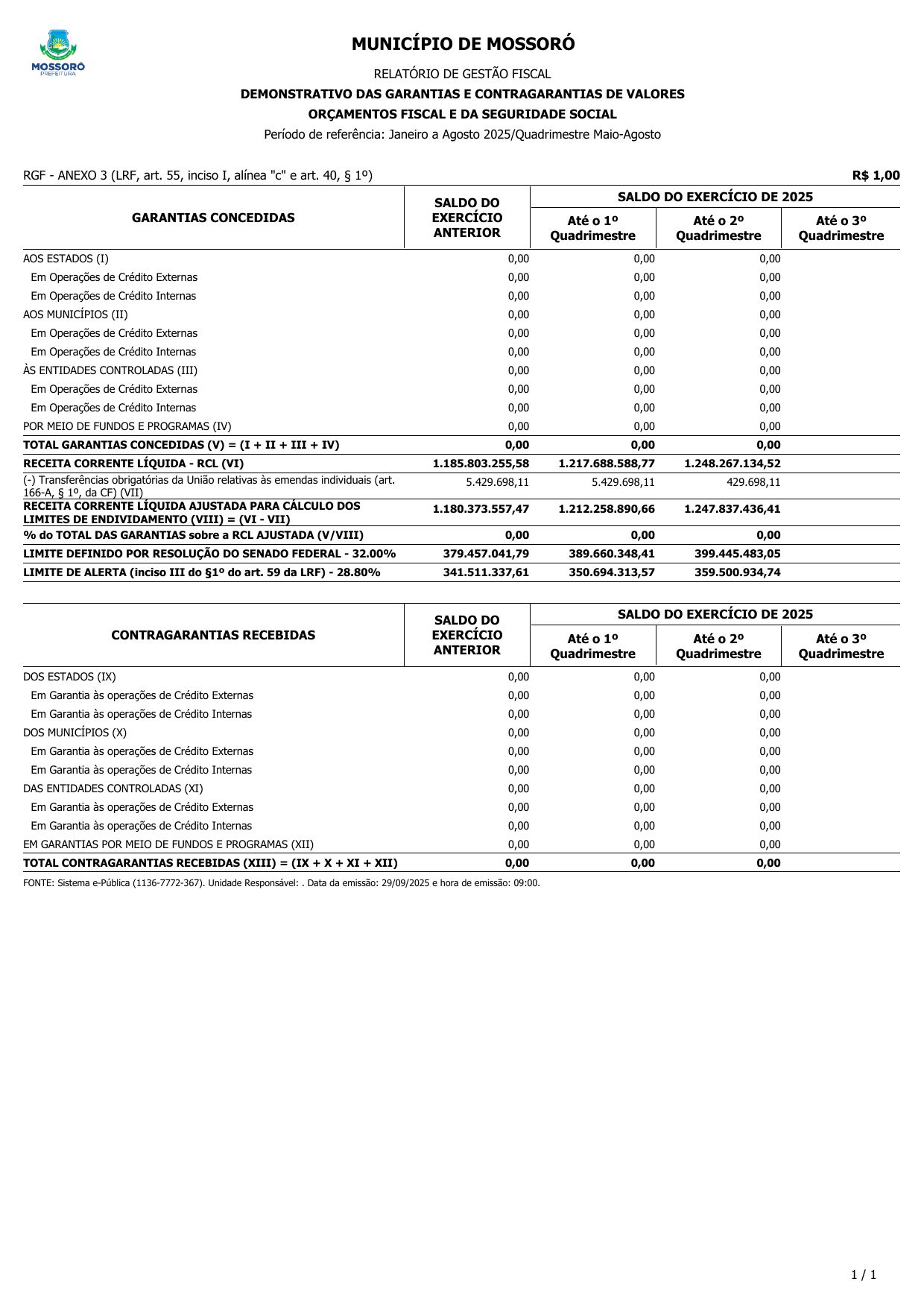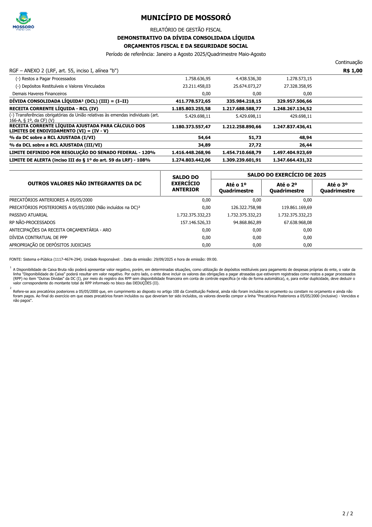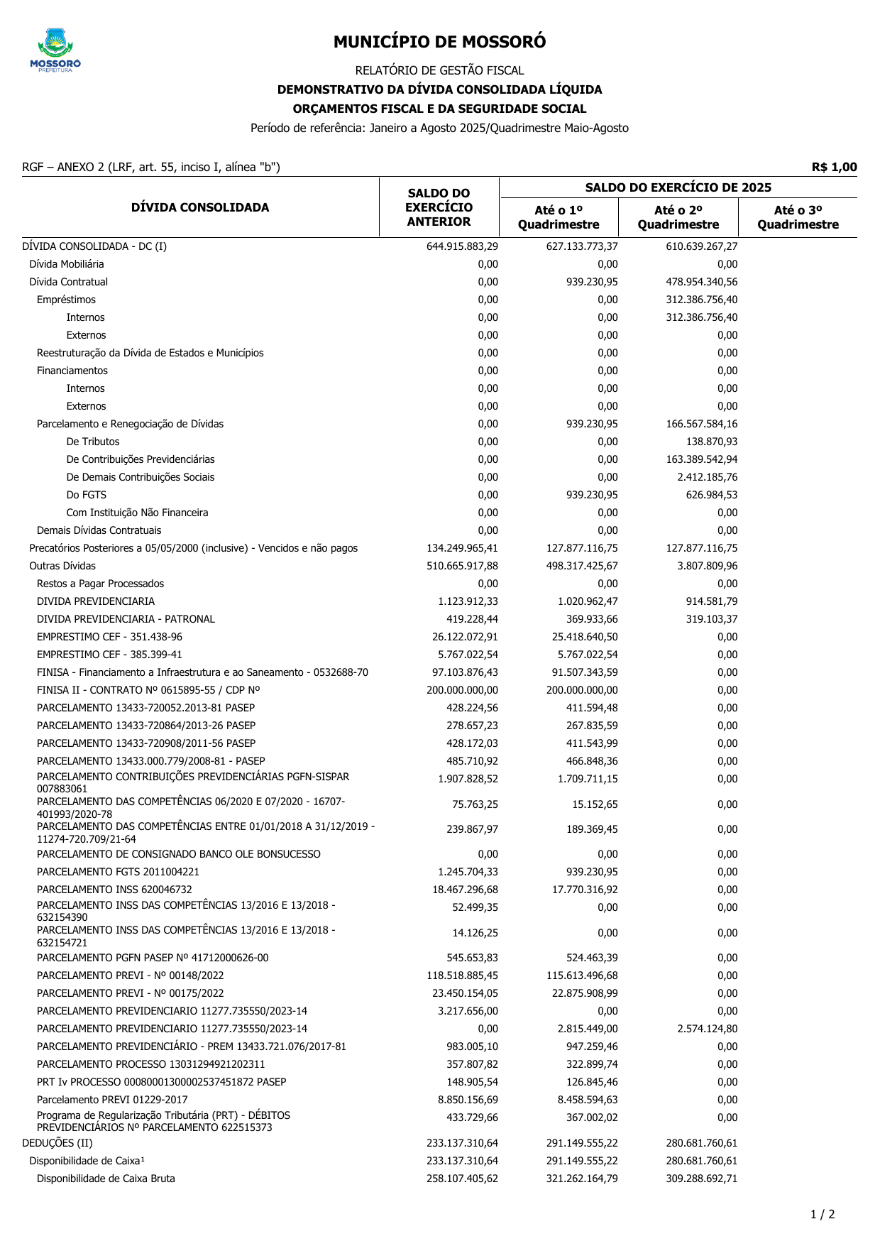 RELATÓRIO DE GESTÃO FISCAL - RGF DO 2º QUADRIMESTRE DE 2025