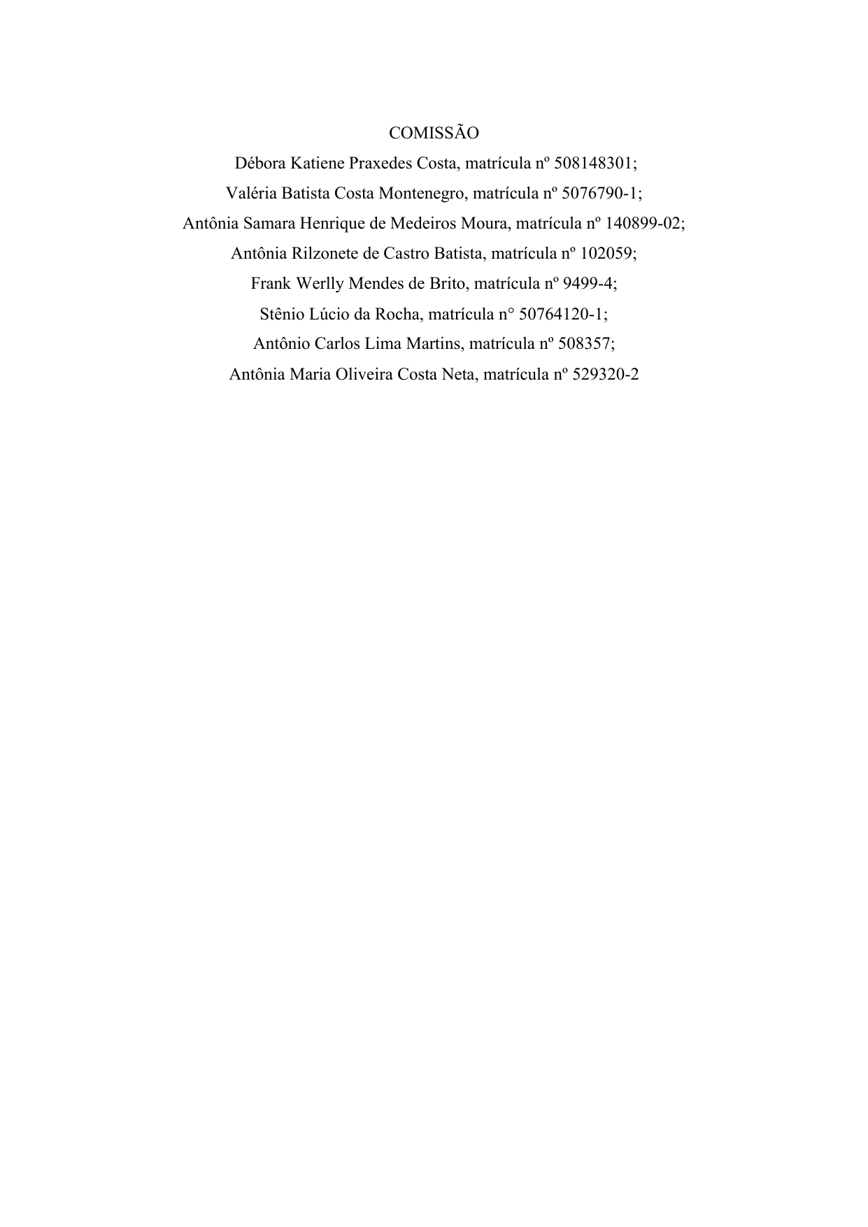 Coordenação Administrativa: Isabela Giovanna Félix Pereira Freitas, matrícula nº 034487-8;