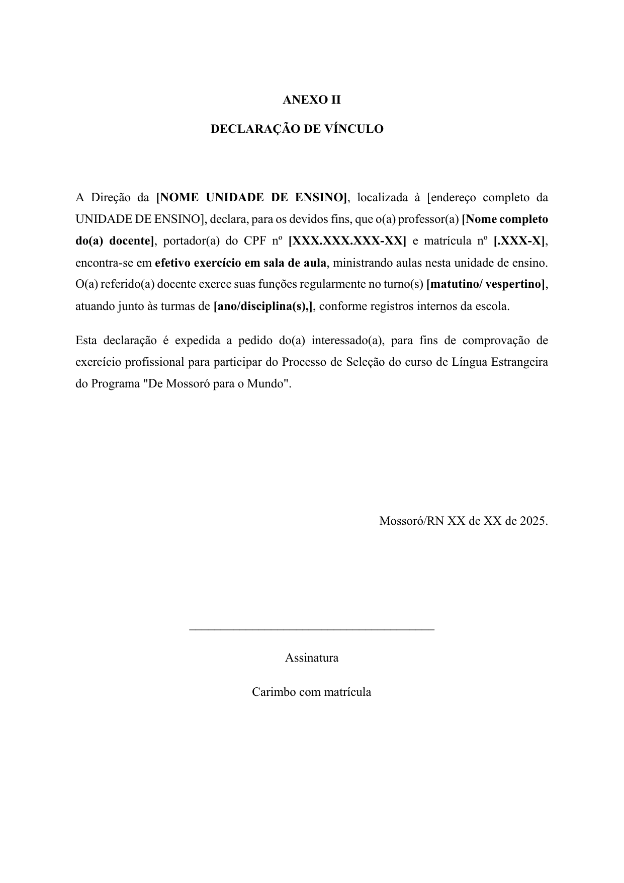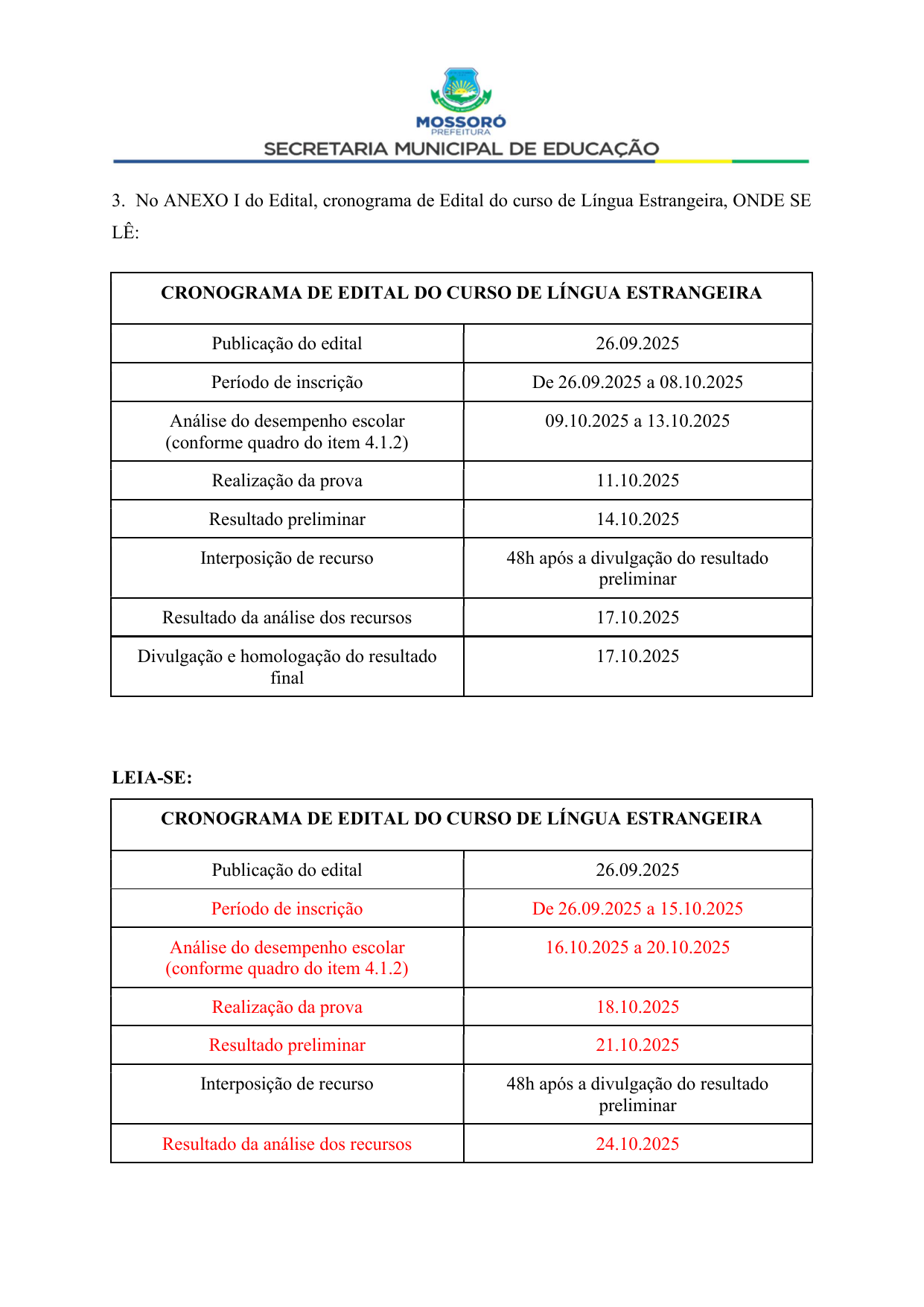 10.5 Quaisquer informações e alterações relativas ao objeto de que trata este Edital constarão no site https://mossorocidadeeducacao.mossoro.rn.gov.br/programas-e-projetos, sendo de responsabilidade do candidato/professor o conhecimento de seu inteiro teor, bem como das etapas deste processo.