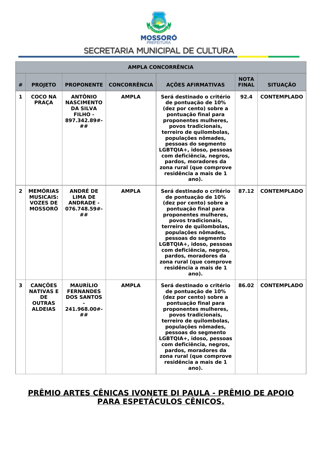 Art.3º Designar a servidora, EURIMARA MAYARA DO NASCIMENTO OLIVEIRA CRUZ, CPF n°: 082.xxx.xxx-54, para atuar como FISCAL do Contrato nº 02/2024 – PREVI, firmado entre o Instituto Municipal de Previdência Social dos Servidores de Mossoró - CNPJ nº 14.801-428/0001-48 e a AGENDA ASSESSORIA PLANEJAMENTO E INFORMÁTICA LTDA, CNPJ N°: 00.059.307/0001-68, tendo como eventual substituto a servidora RUTE PEREIRA DA SILVA AMORIM, CPF n° 010.xxx.xxx-94.