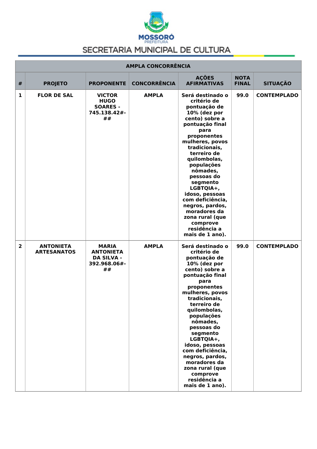 Objeto........................: Contratação de empresa especializada em fornecimento, POR DEMANDA, algodões doces, picolés, crepes, sorvetes e pipocas para atender as necessidades nos eventos a serem realizados pela Fundação Vereador Aldenor Nogueira em parceria com a Câmara Municipal de Mossoró, por um período de 12 meses.