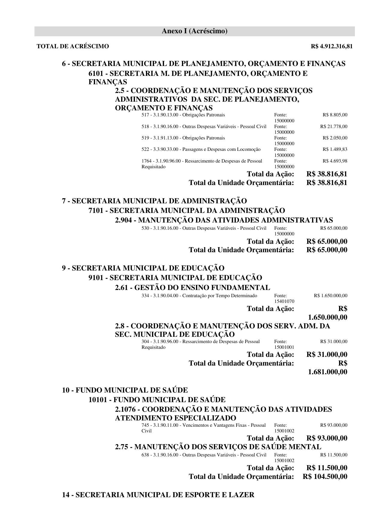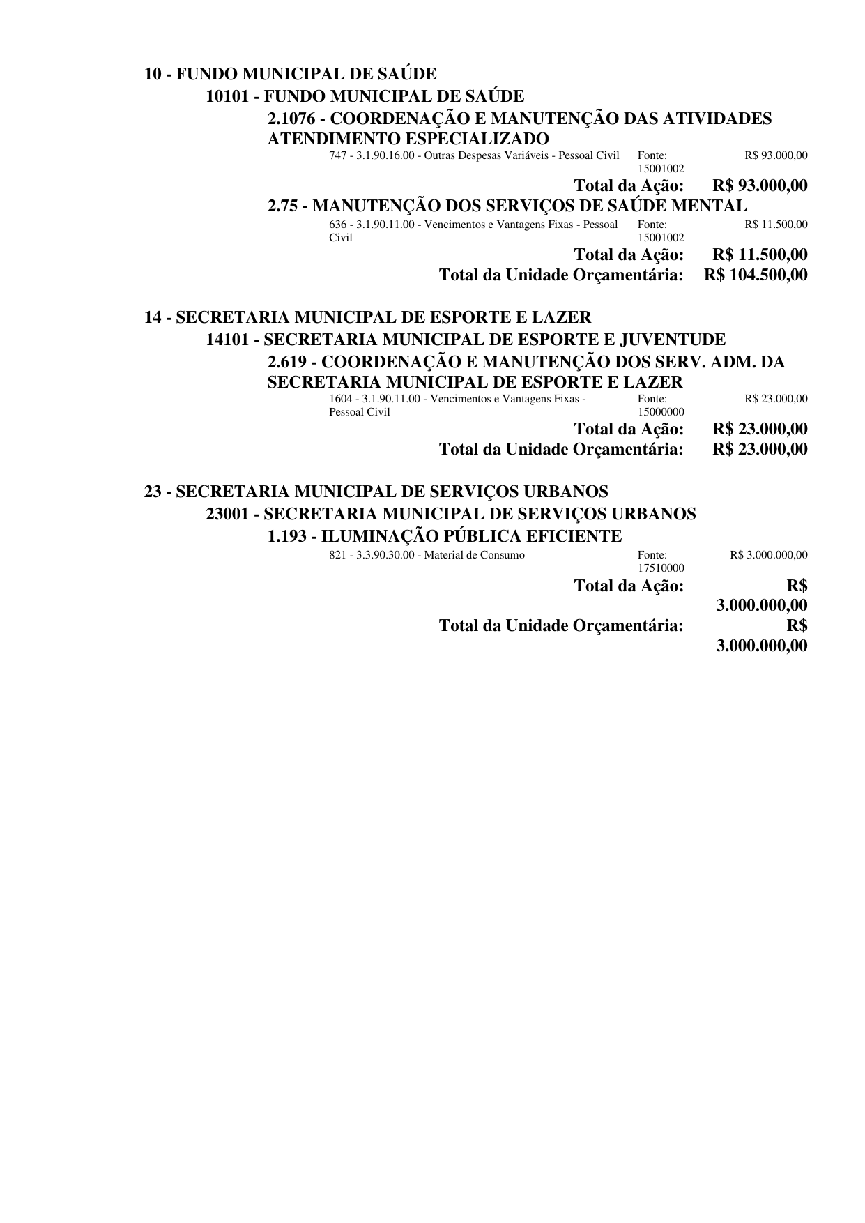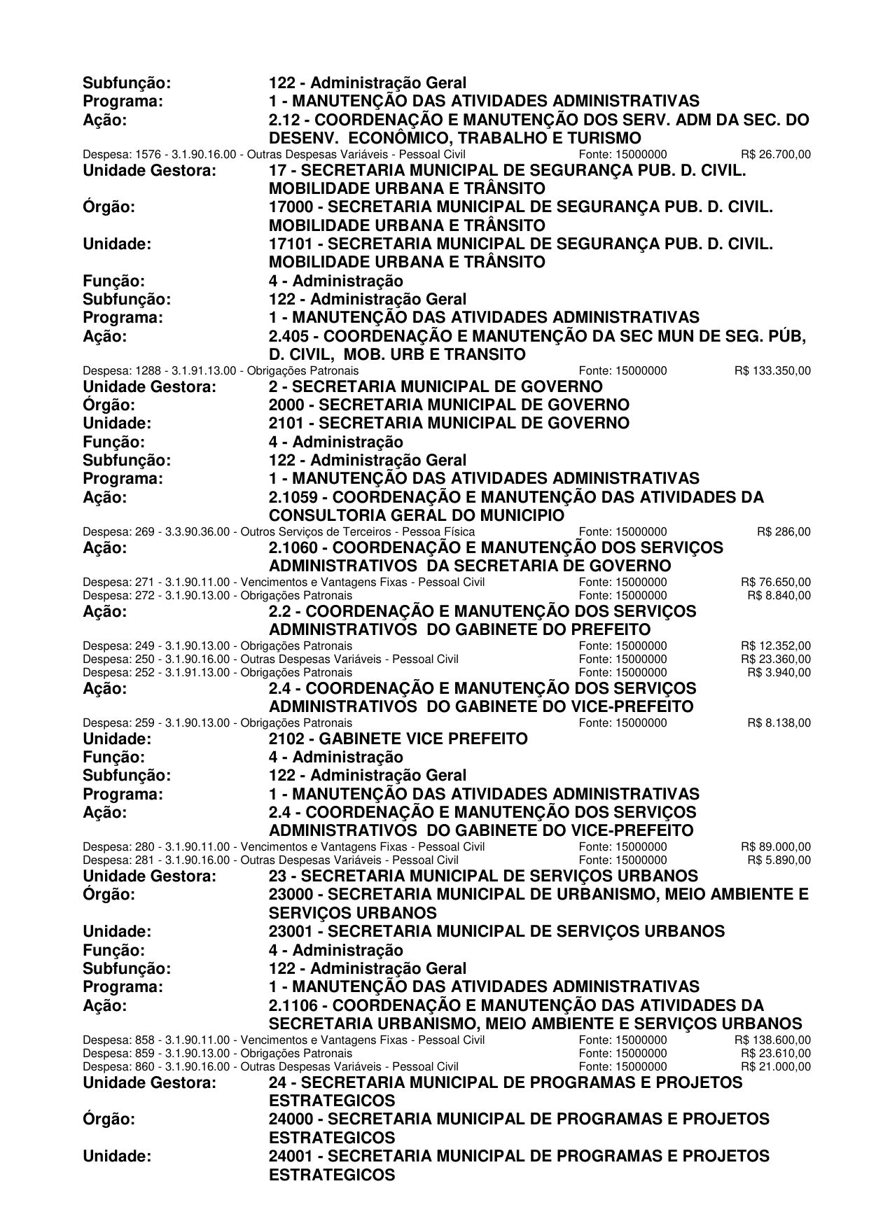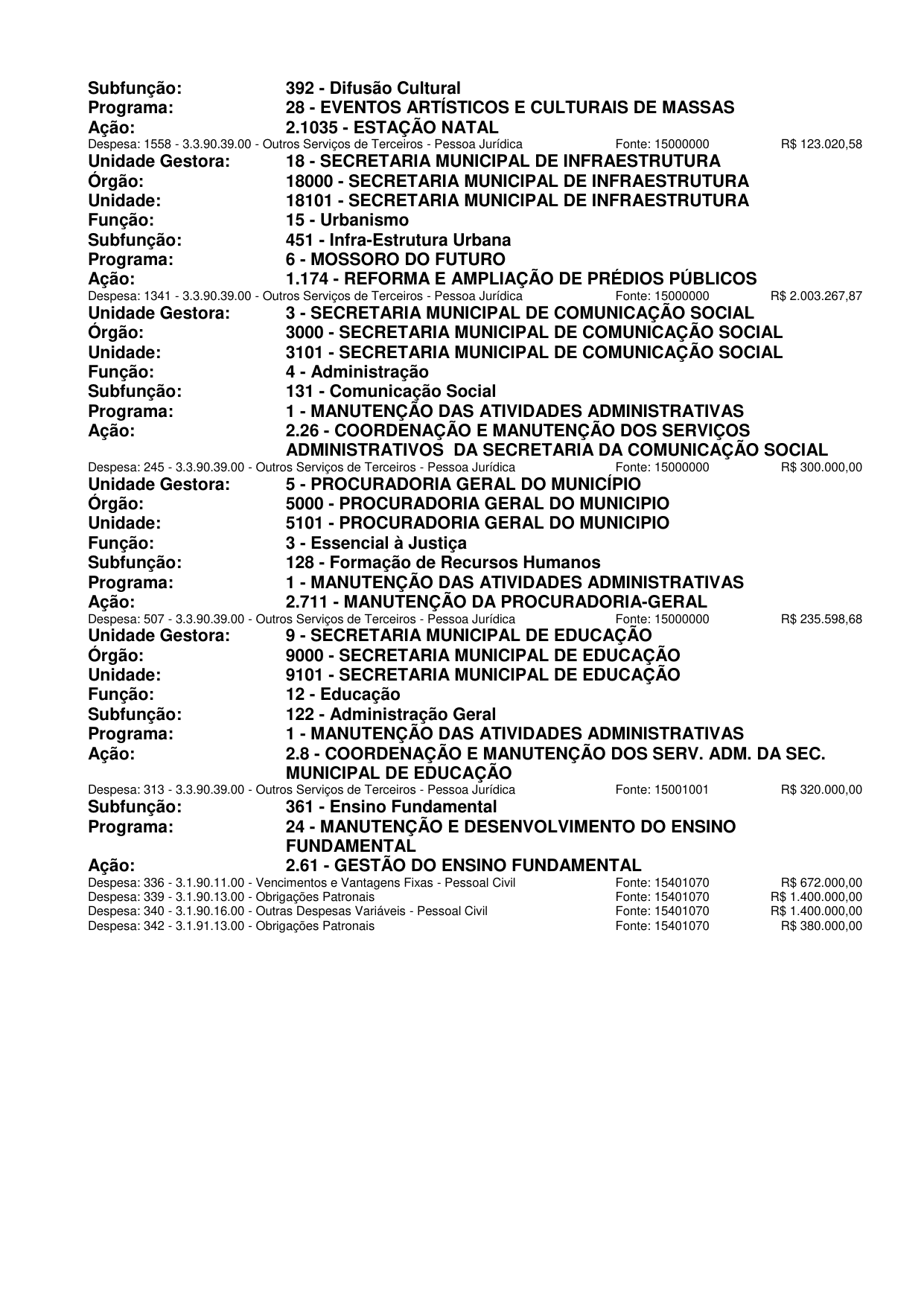 Unidade: 101 CÂMARA MUNICIPAL DE MOSSORO, Projeto: 2001 COORDENAÇÃO E MANUTENÇÃO DOS SERVIÇOS DA CÂMARA MUNICIPAL DE MOSSORÓ, Elemento: 339039 Outros Ser. Terceiros – Pessoa Jurídica, Fonte: 15000000 Recursos não vinculados de Impostos, Esfera: Fiscal.