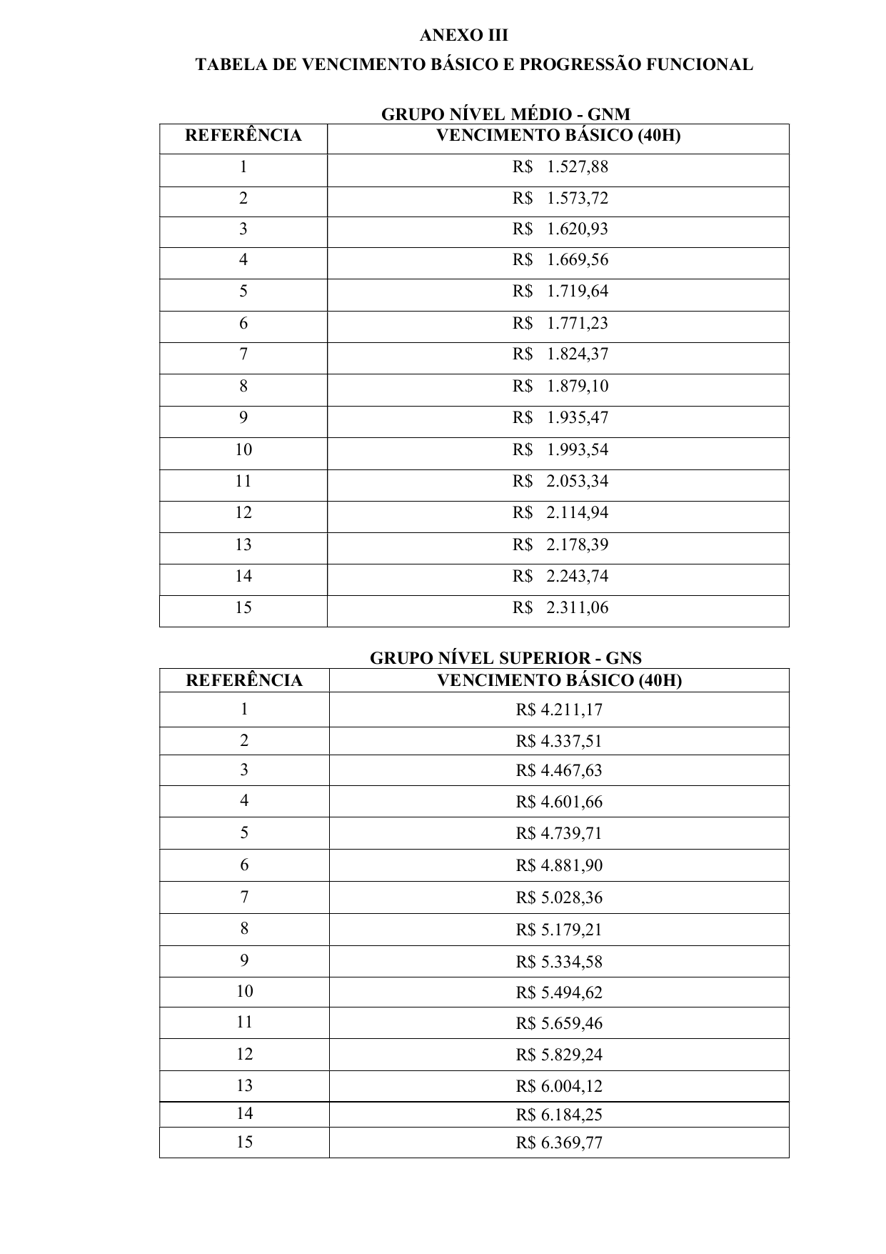 I - Vencimento Básico, conforme valores e vigências estabelecidos no Anexo III desta Lei Complementar;