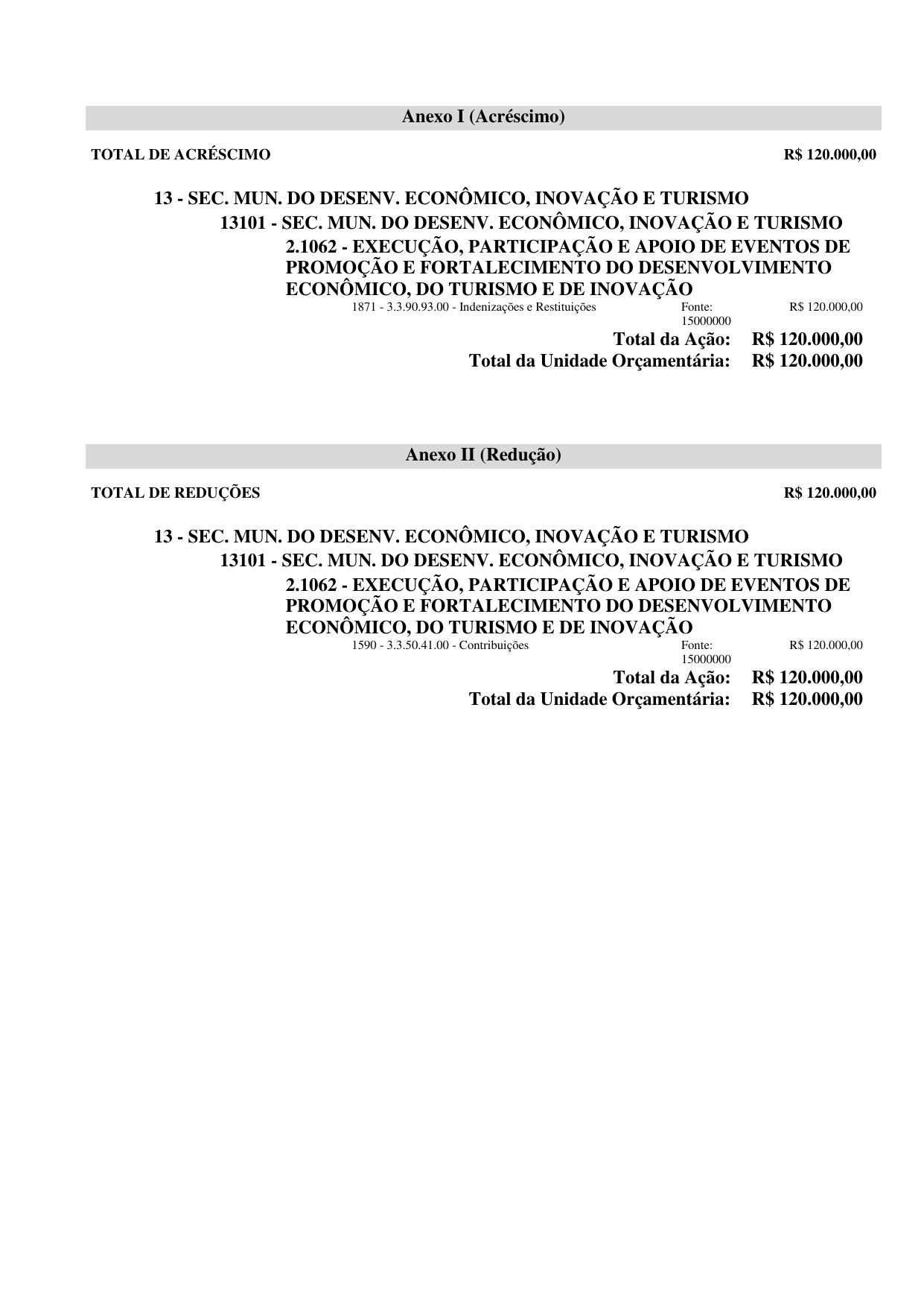 Unidade Orçamentária: 13.101 – Secretaria Municipal do Desenvolvimento Econômico, Inovação e Turismo