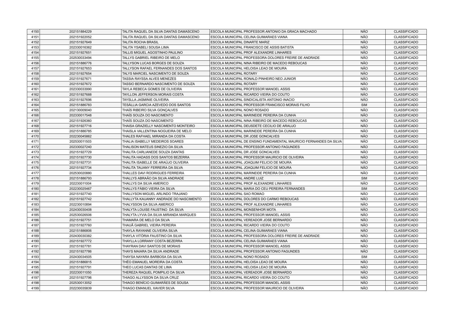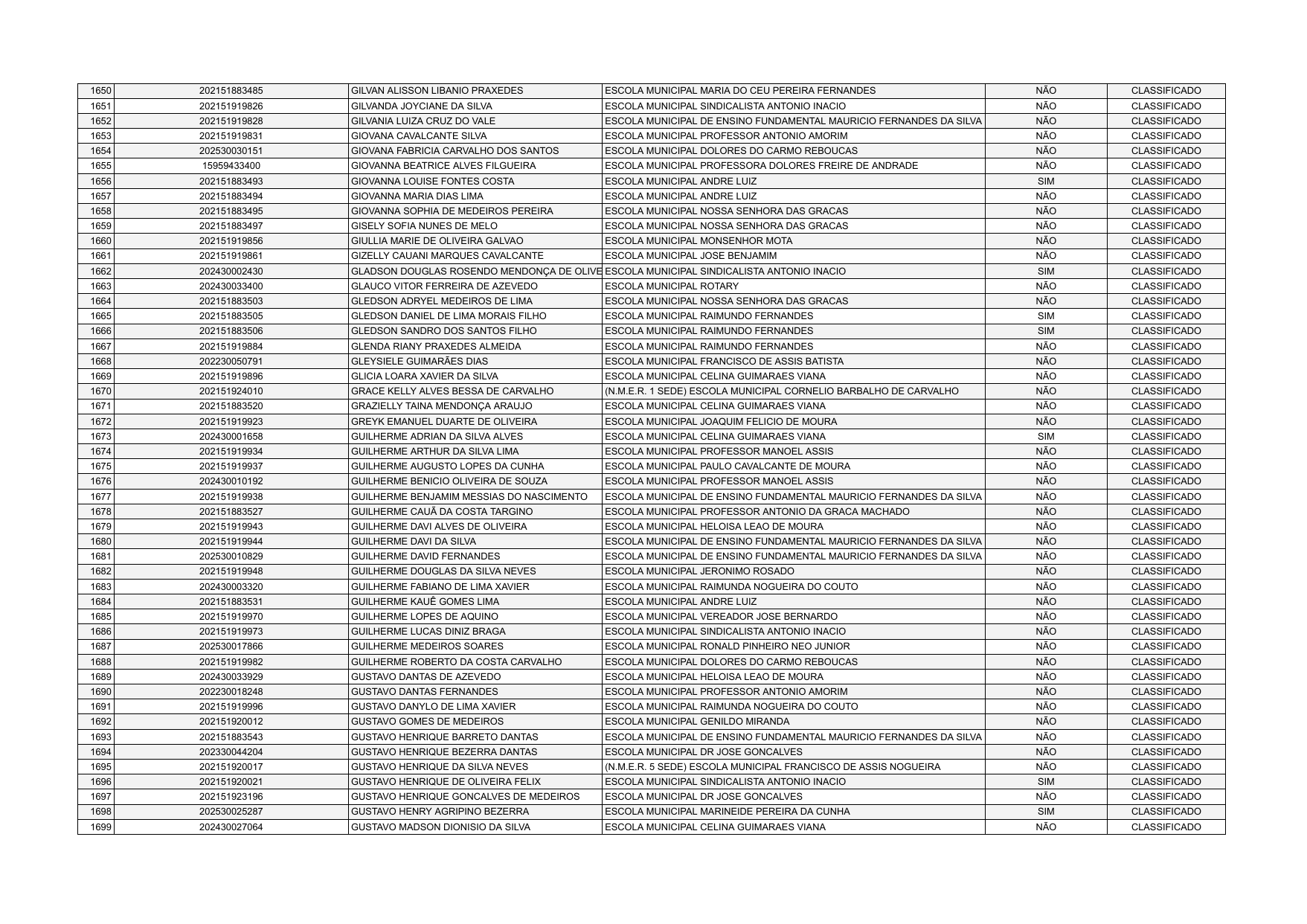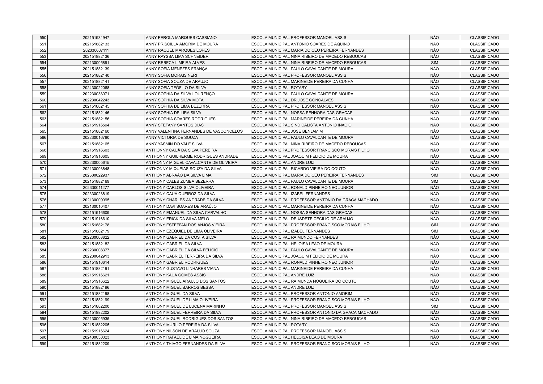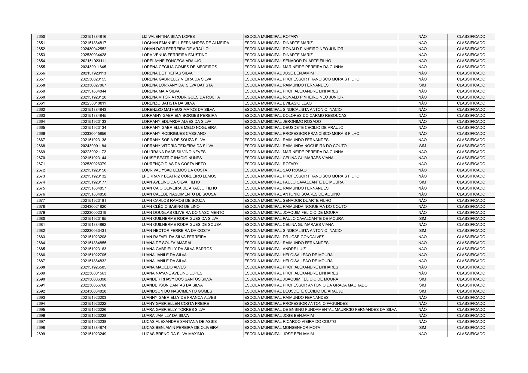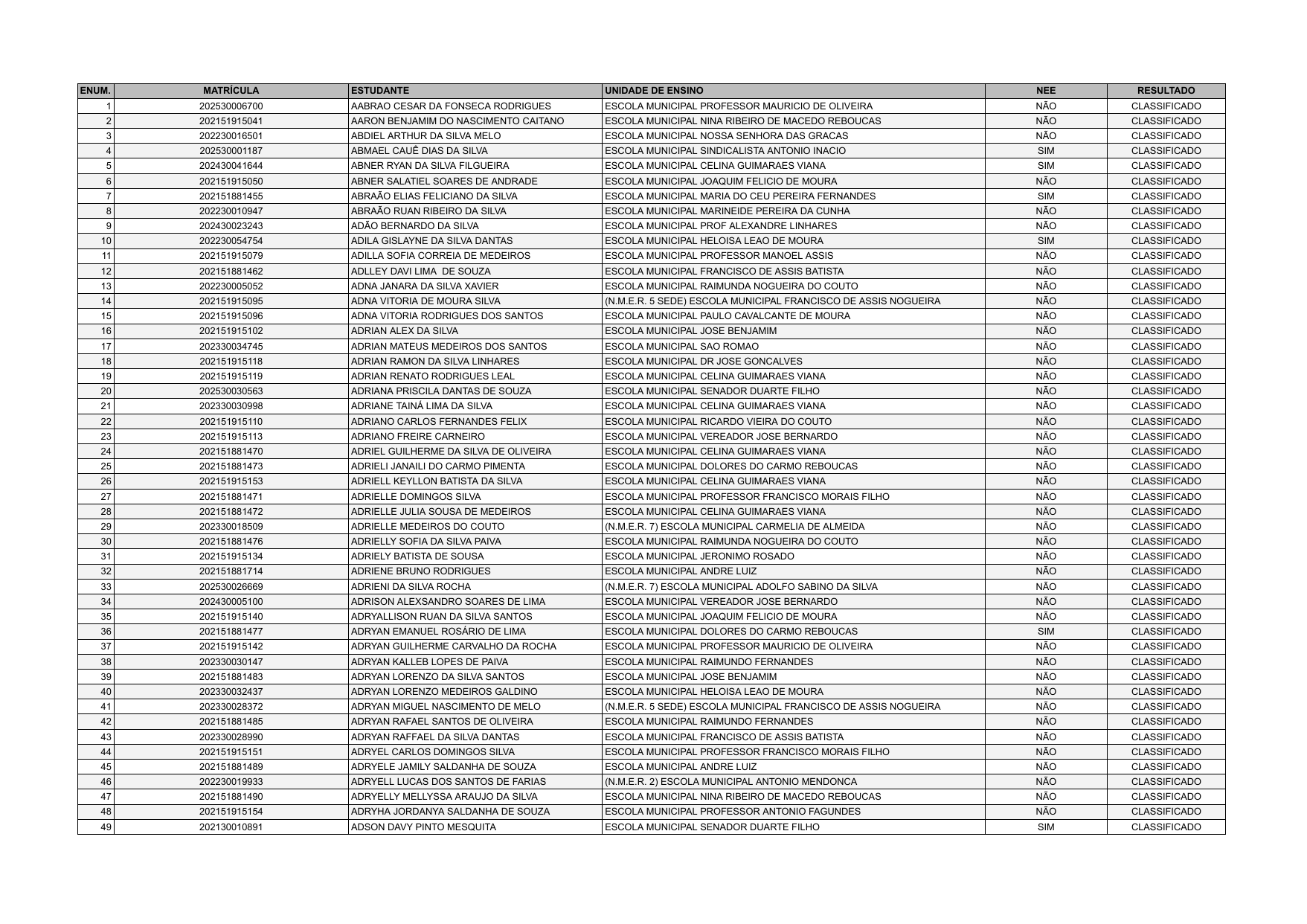 A Comissão Organizadora da 1º edição de seleção para o Programa de Apoio ao Estudante (PAE) da Secretaria Municipal de Educação, instituída pela Portaria nº 190/2025, publicada no Diário Oficial do Município, edição de nº 697, do dia 06 de novembro 2025, no uso de suas atribuições, vem publicar por incorreção o resultado preliminar, o que faz a seguir: