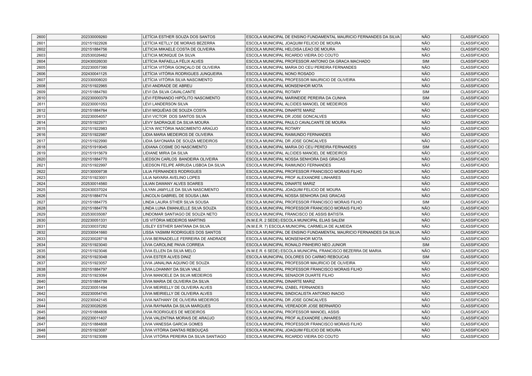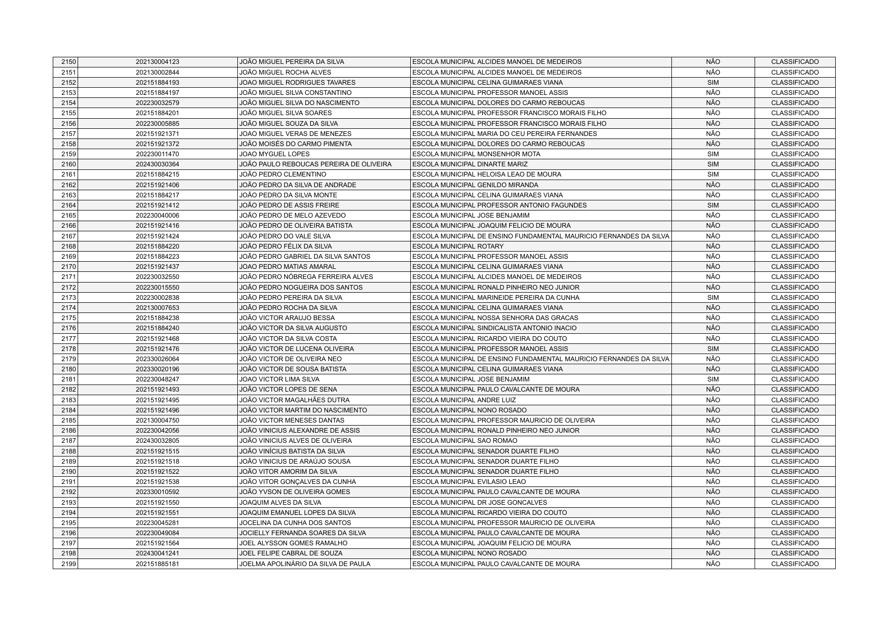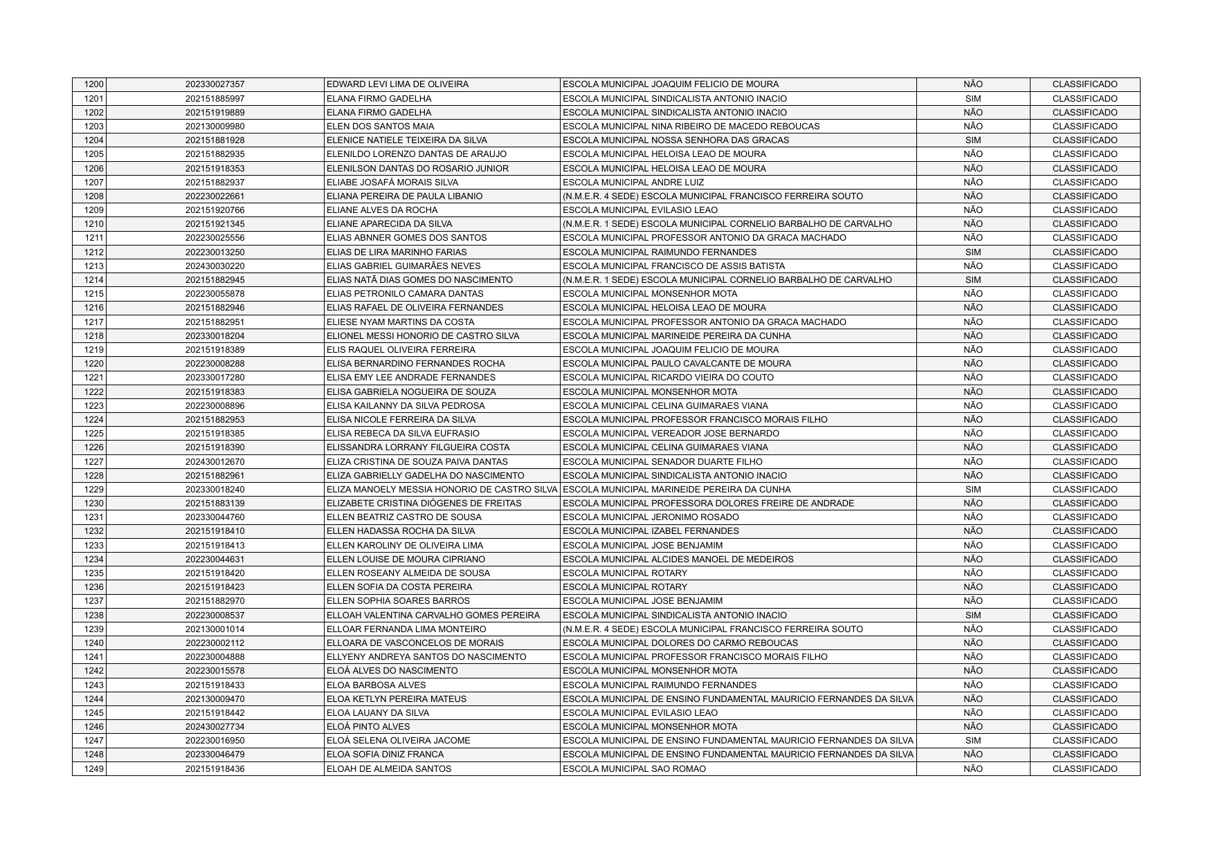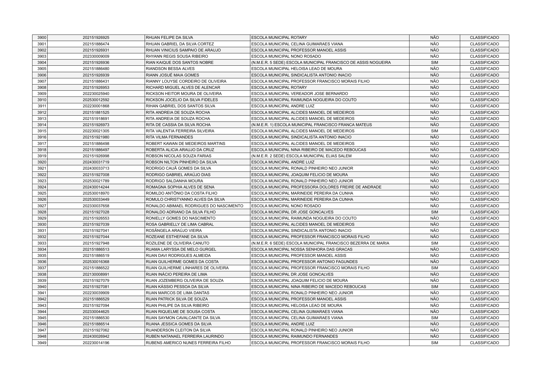A Comissão Organizadora da 1º edição de seleção para o Programa de Apoio ao Estudante (PAE) da Secretaria Municipal de Educação, instituída pela Portaria nº 190/2025, publicada no Diário Oficial do Município, edição de nº 697, do dia 06 de novembro 2025, no uso de suas atribuições, vem publicar por incorreção o resultado preliminar, o que faz a seguir:
