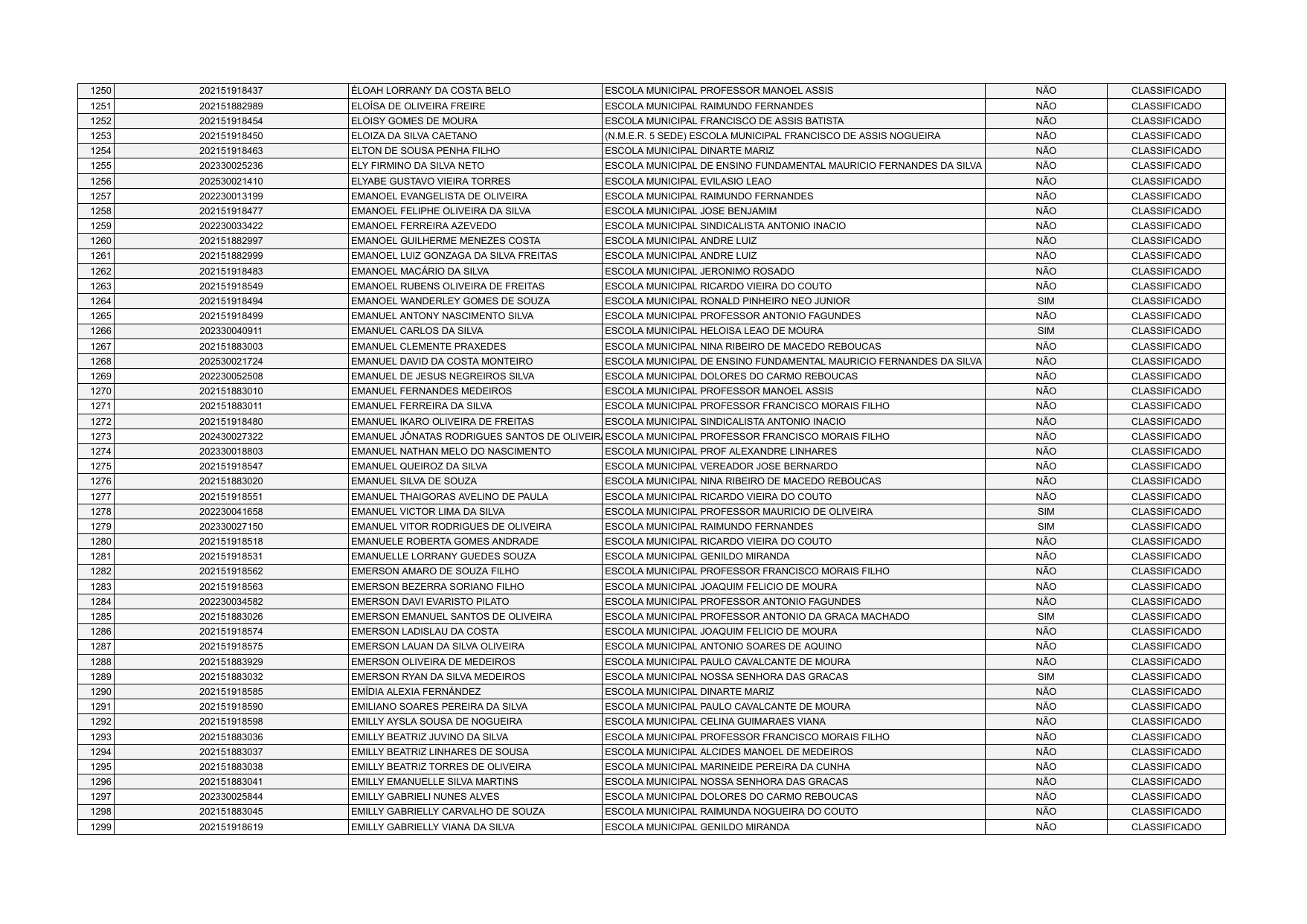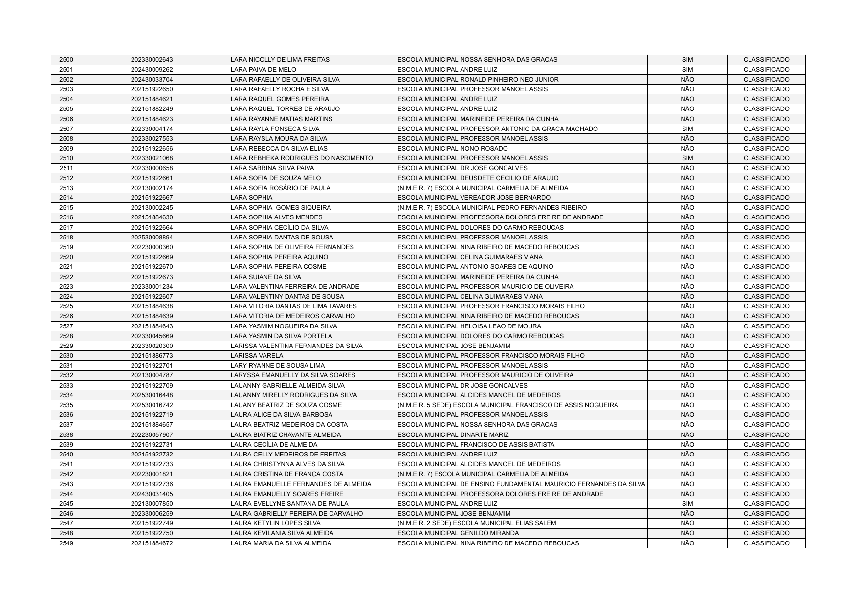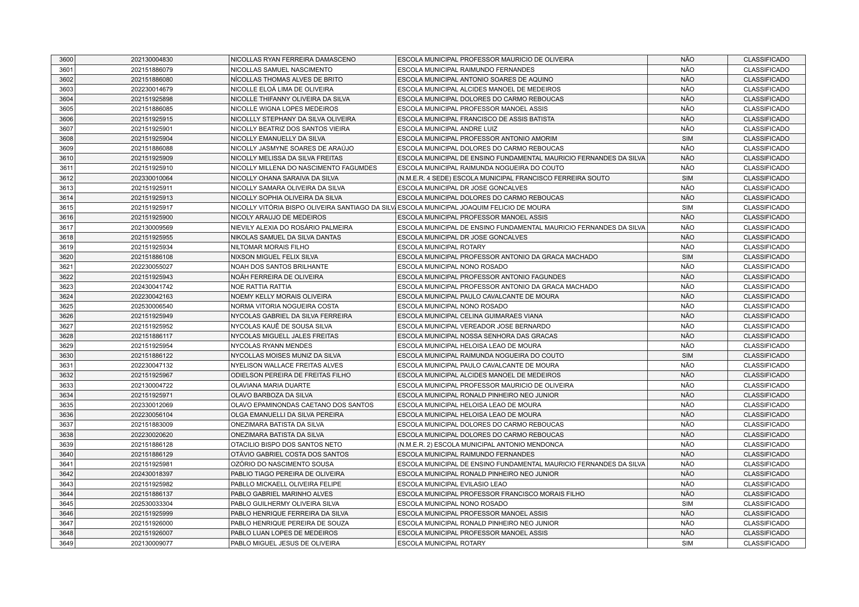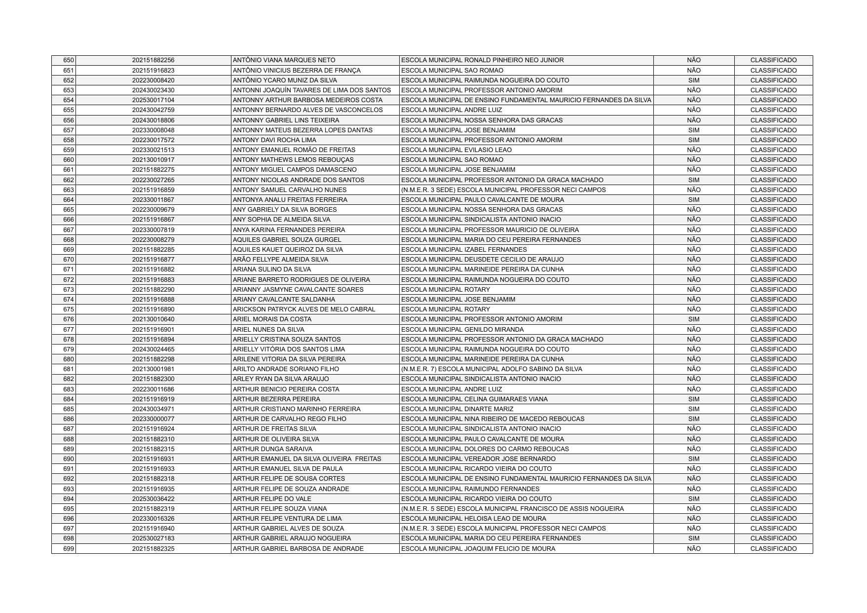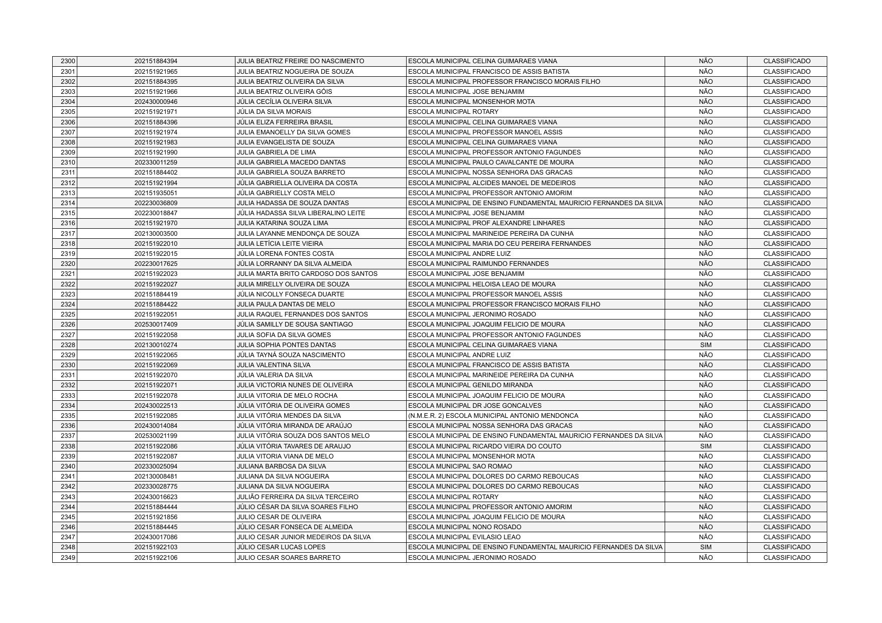 A Comissão Organizadora da 1º edição de seleção para o Programa de Apoio ao Estudante (PAE) da Secretaria Municipal de Educação, instituída pela Portaria nº 190/2025, publicada no Diário Oficial do Município, edição de nº 697, do dia 06 de novembro 2025, no uso de suas atribuições, vem publicar por incorreção o resultado preliminar, o que faz a seguir: