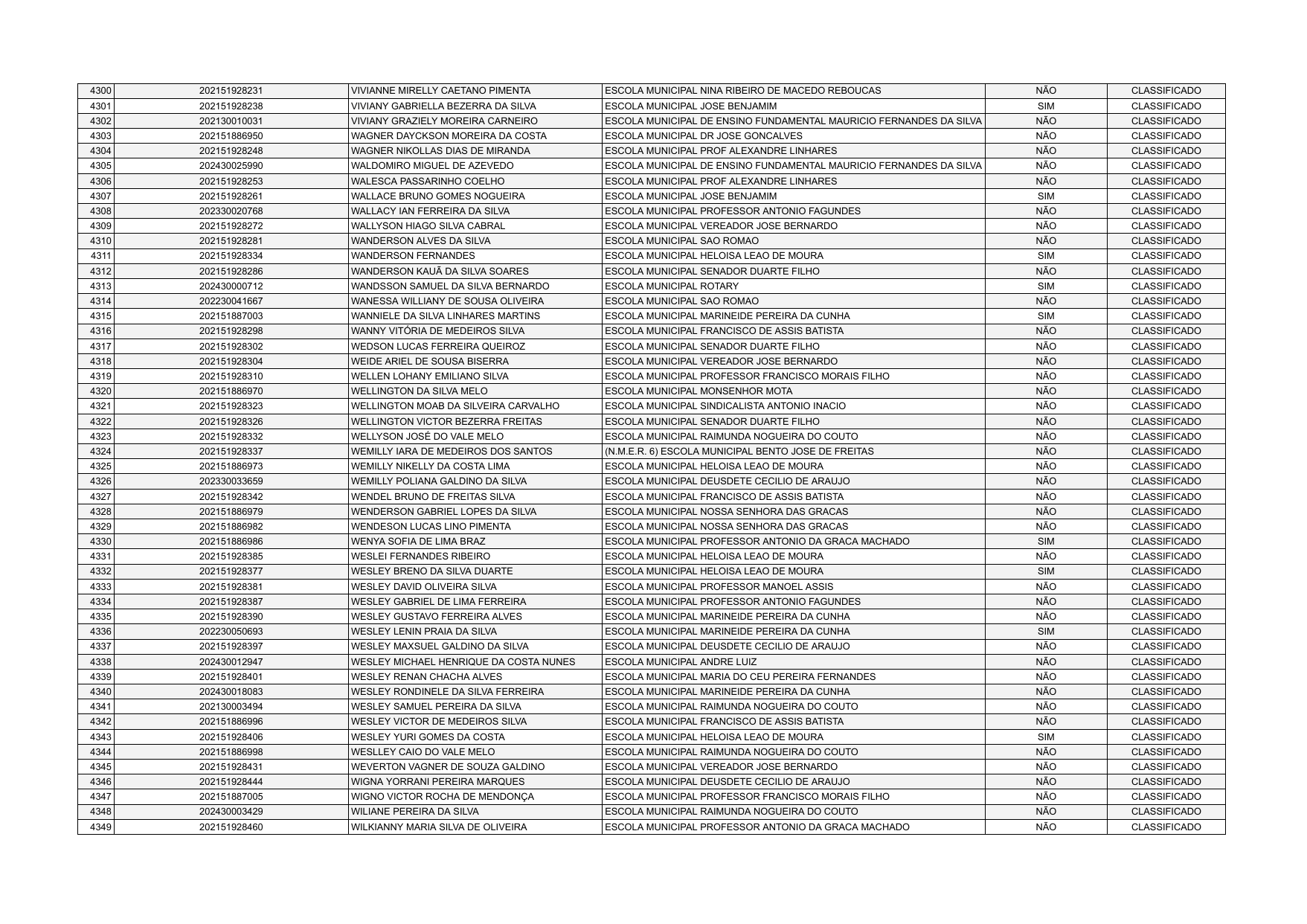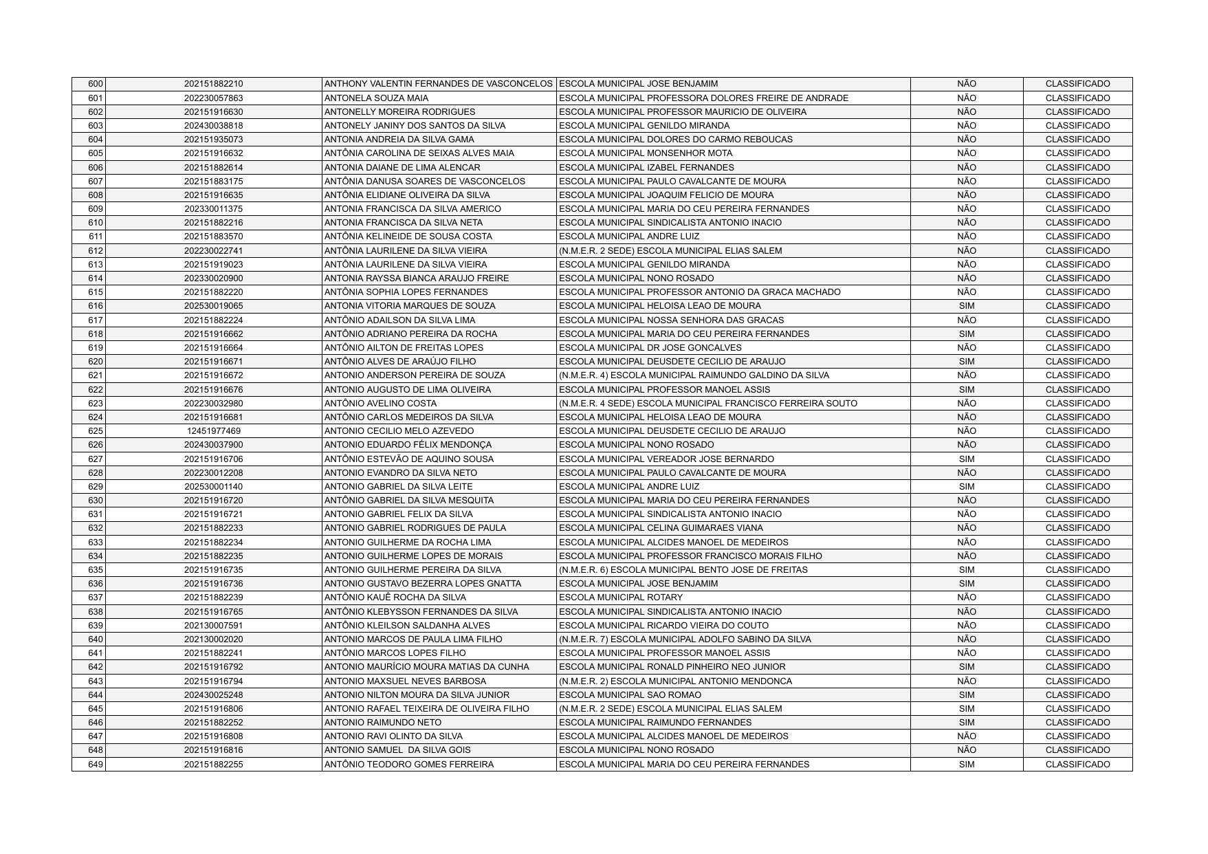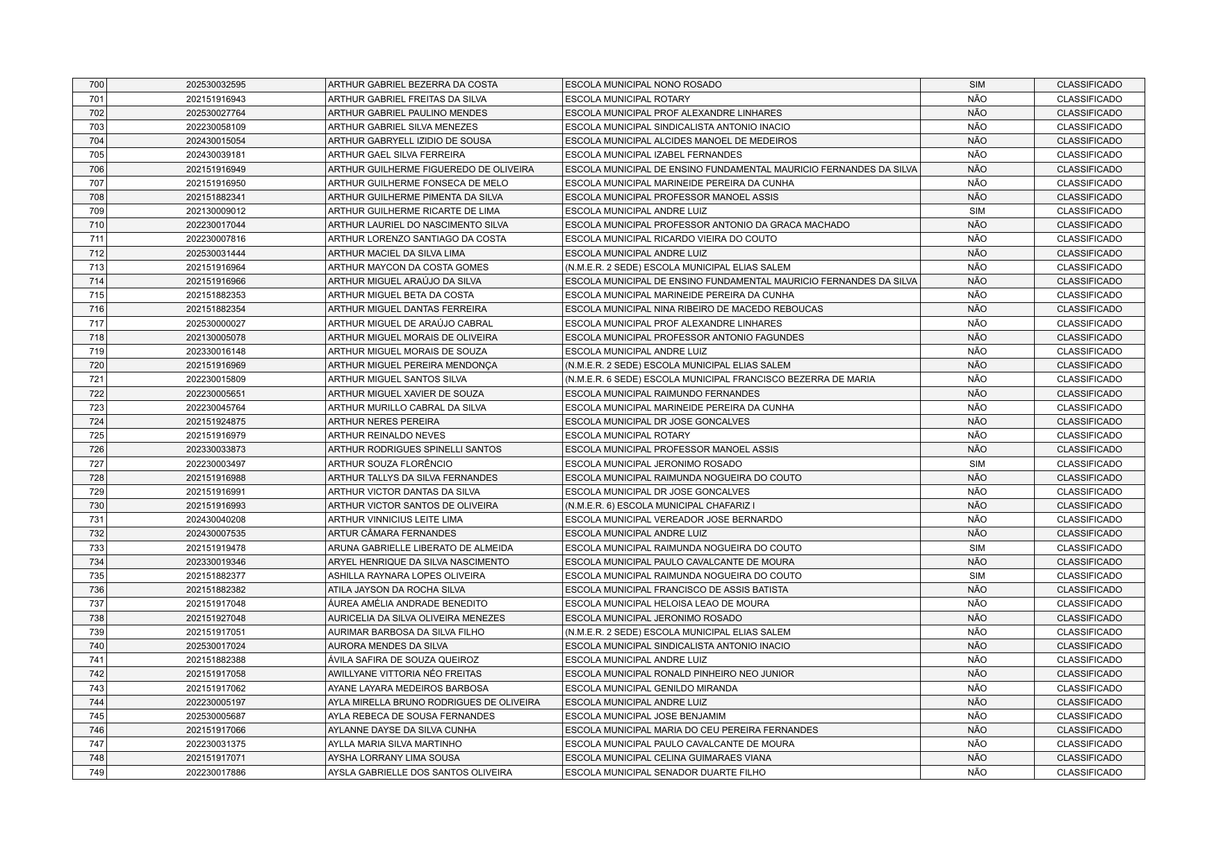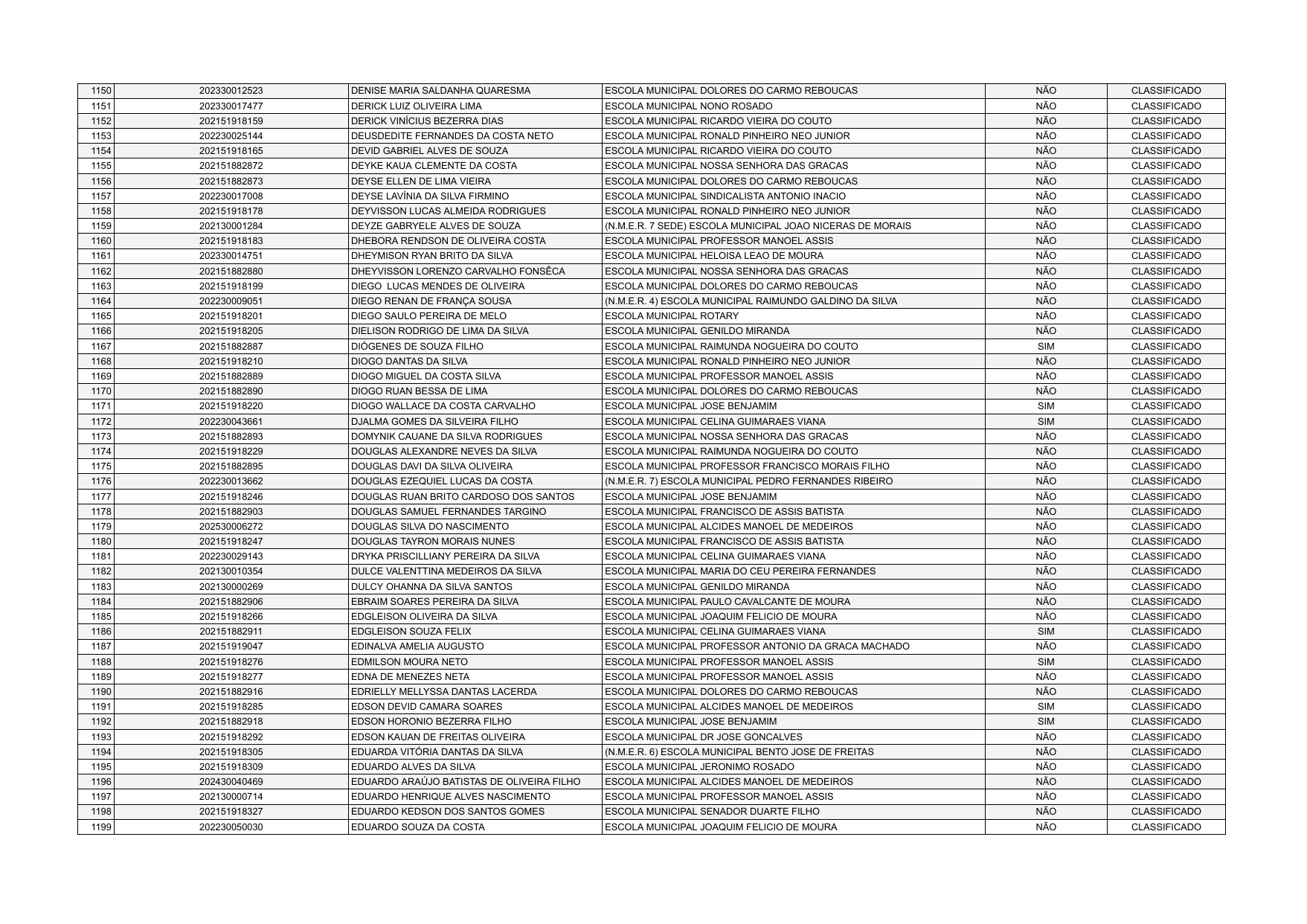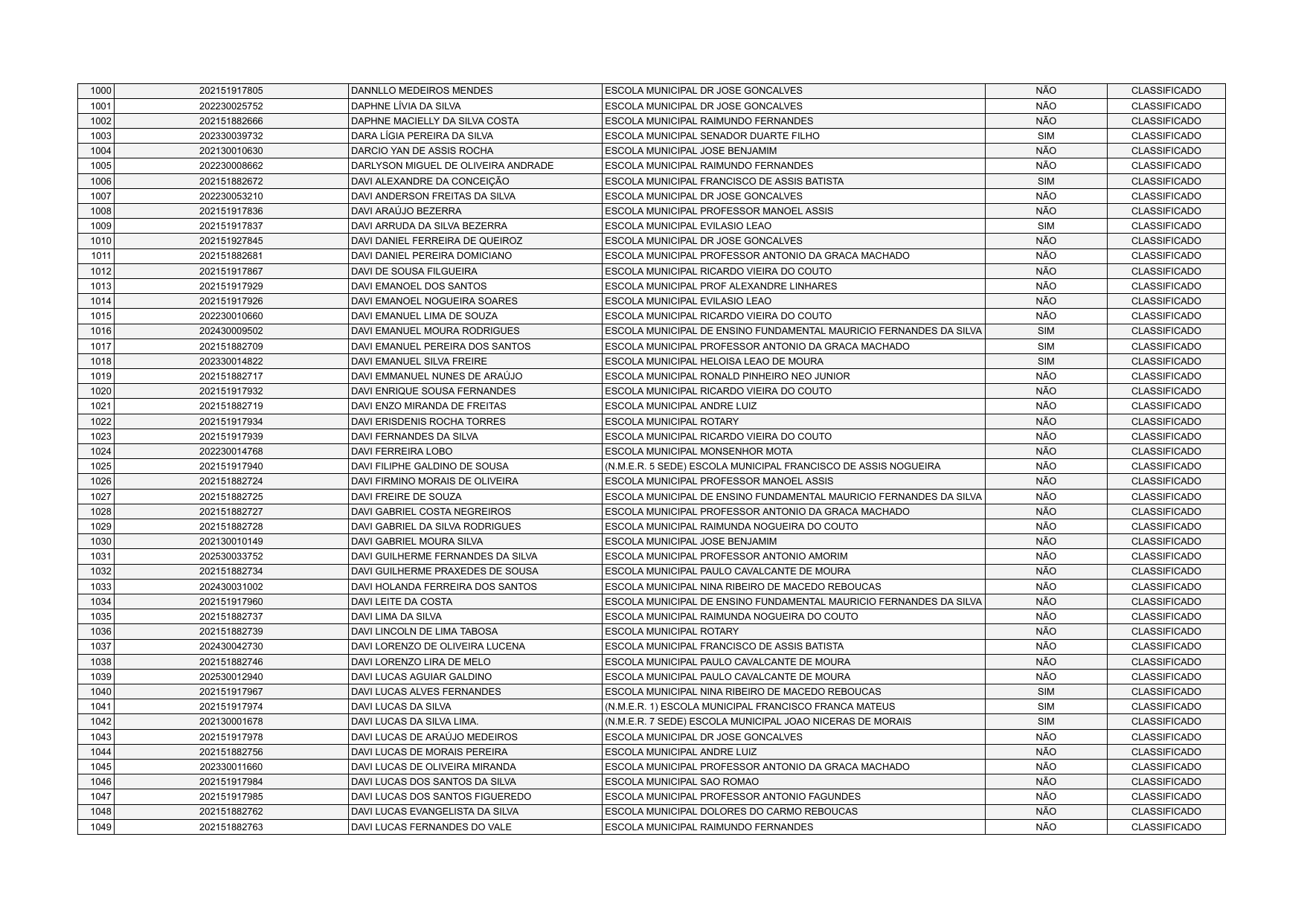 A Comissão Organizadora da 1º edição de seleção para o Programa de Apoio ao Estudante (PAE) da Secretaria Municipal de Educação, instituída pela Portaria nº 190/2025, publicada no Diário Oficial do Município, edição de nº 697, do dia 06 de novembro 2025, no uso de suas atribuições, vem publicar por incorreção o resultado preliminar, o que faz a seguir: