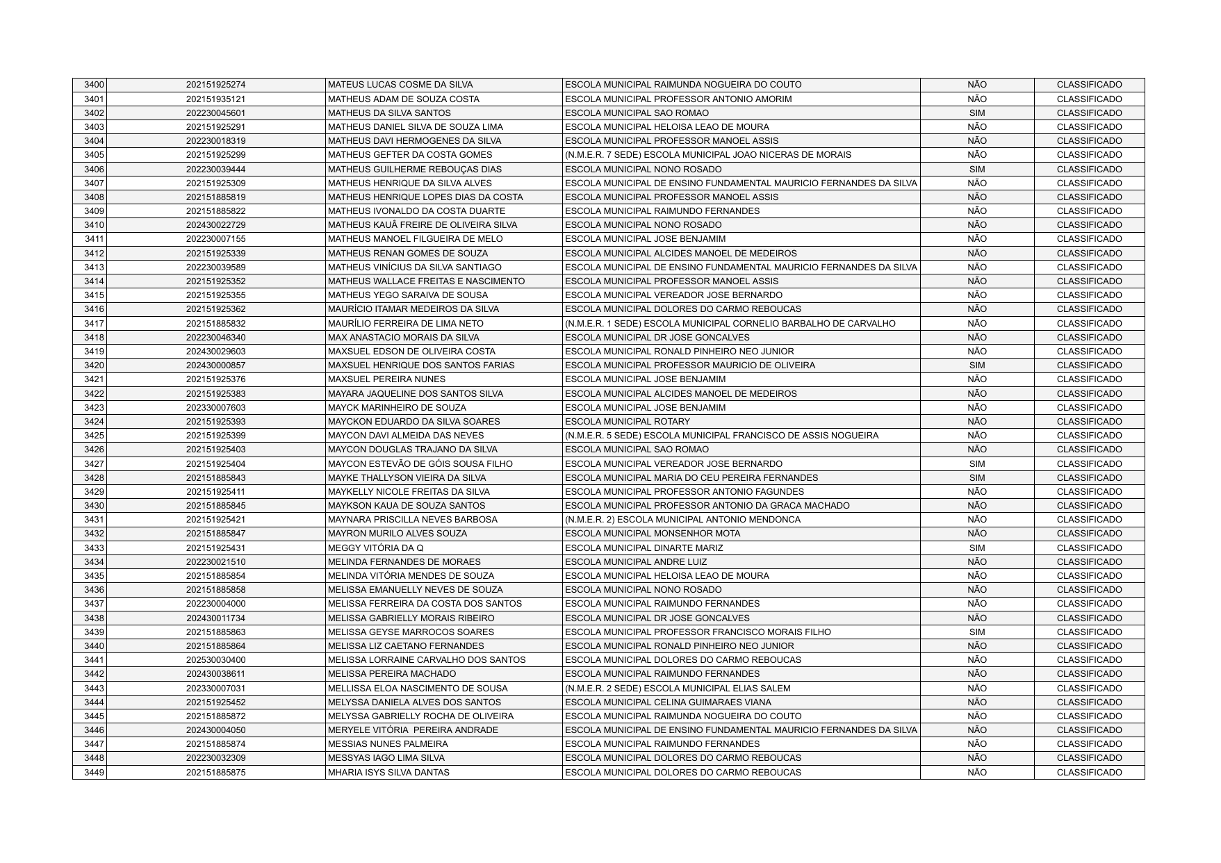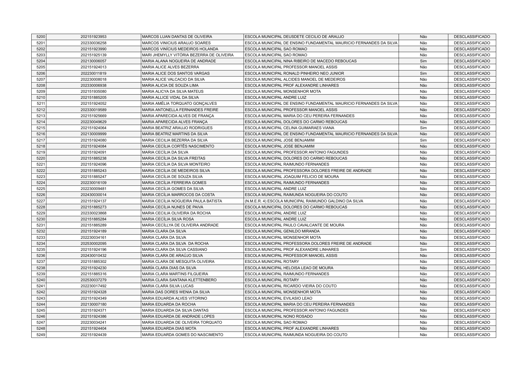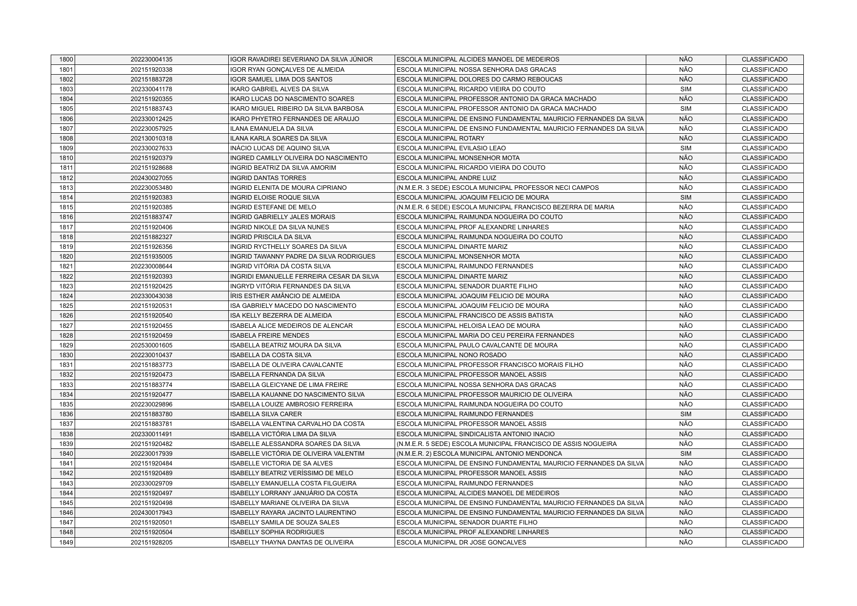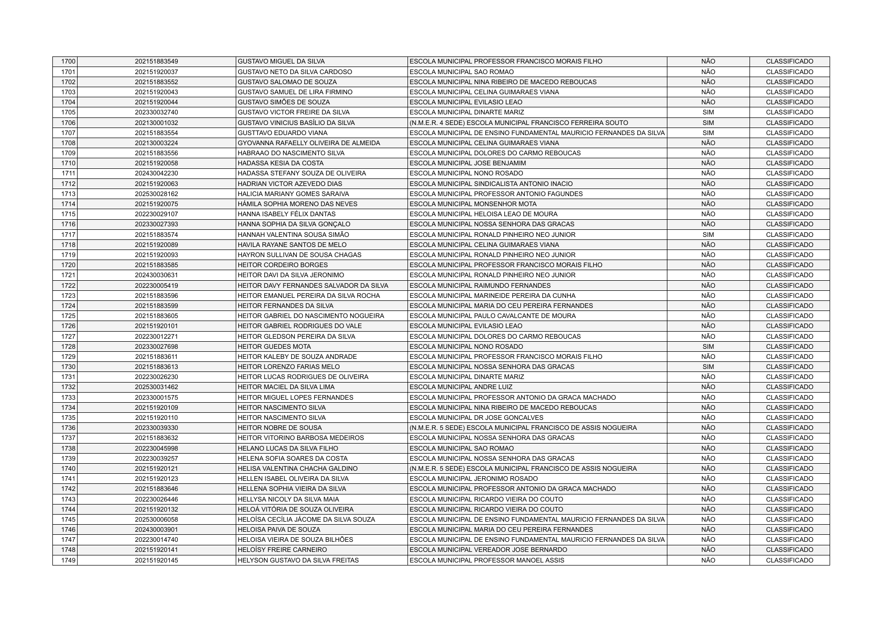 A Comissão Organizadora da 1º edição de seleção para o Programa de Apoio ao Estudante (PAE) da Secretaria Municipal de Educação, instituída pela Portaria nº 190/2025, publicada no Diário Oficial do Município, edição de nº 697, do dia 06 de novembro 2025, no uso de suas atribuições, vem publicar por incorreção o resultado preliminar, o que faz a seguir: