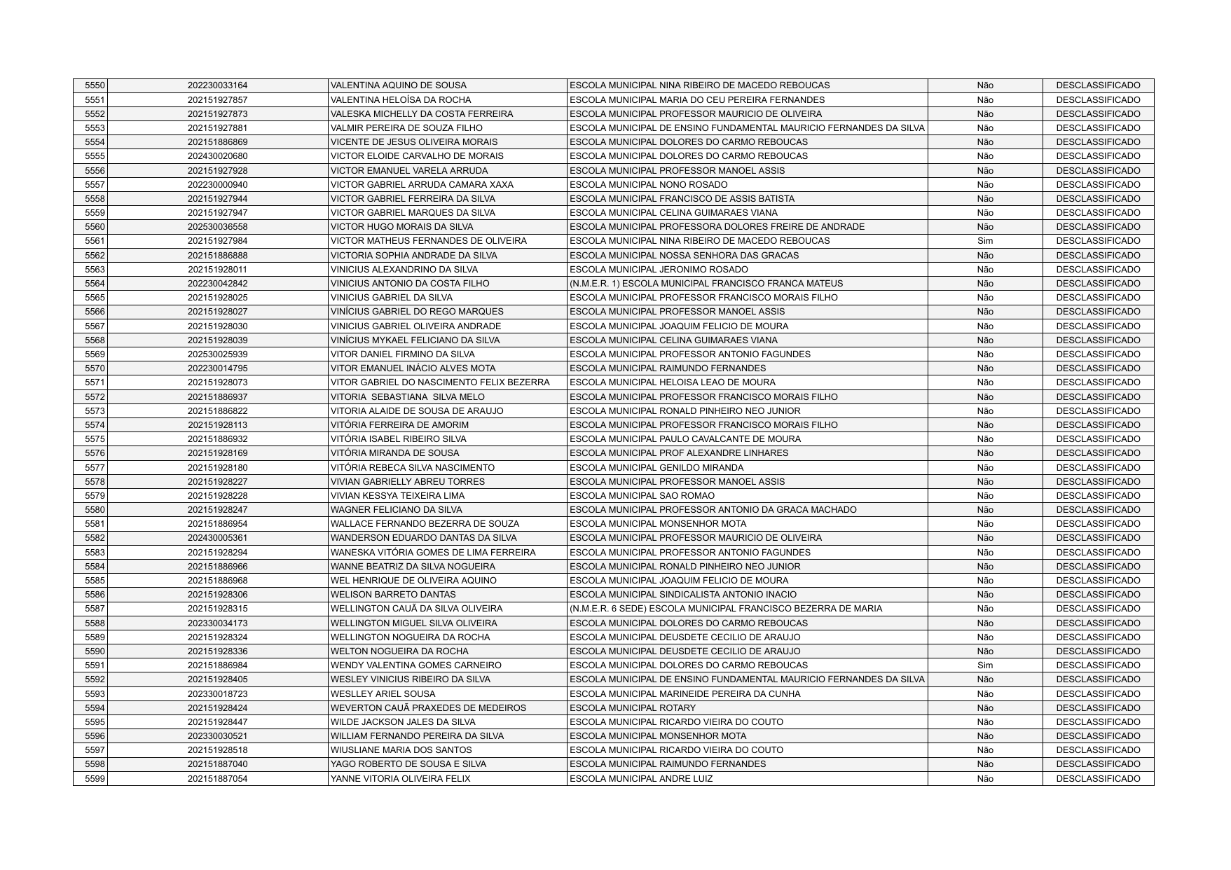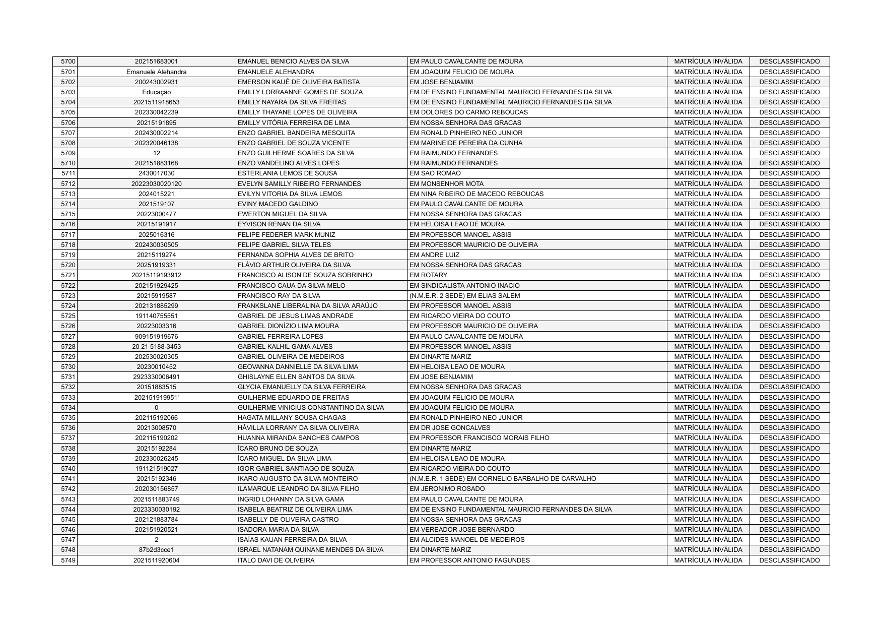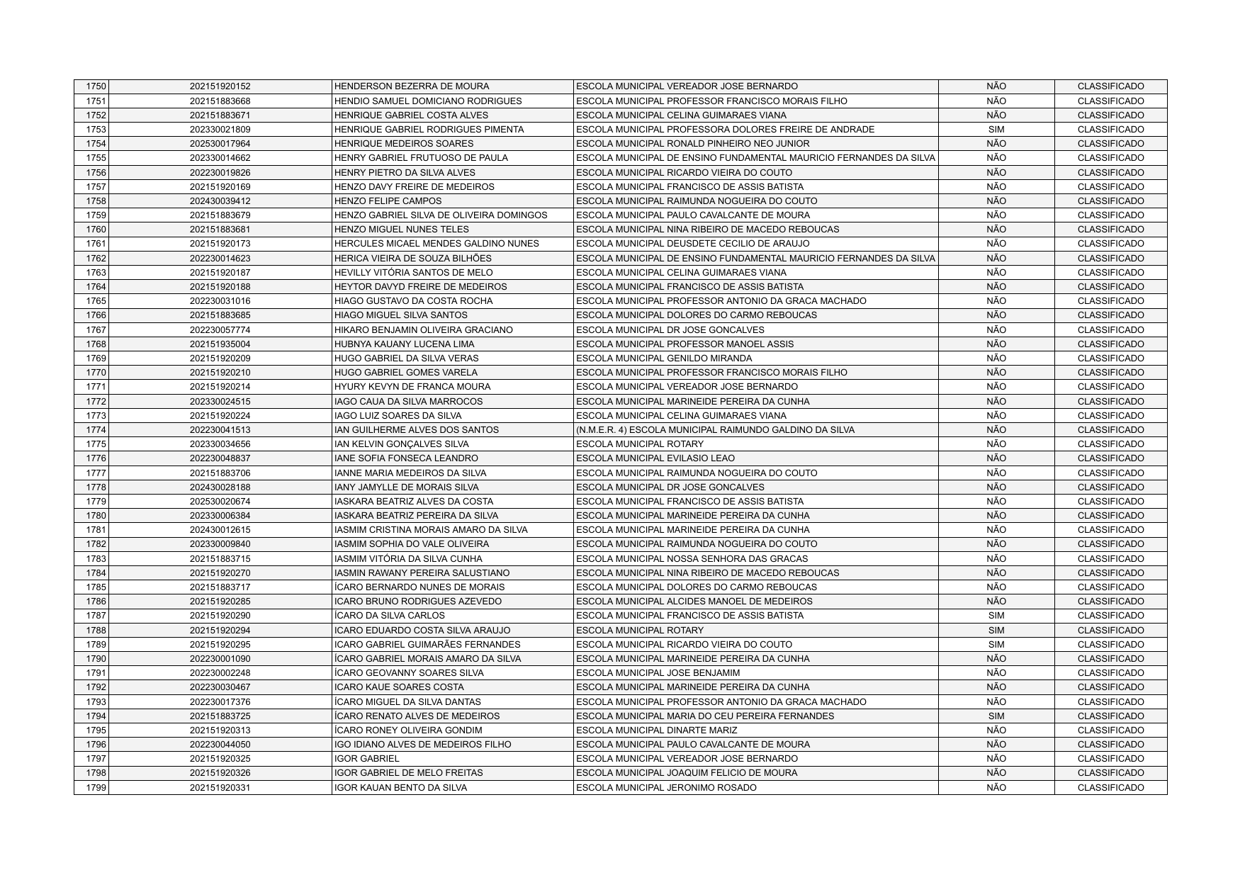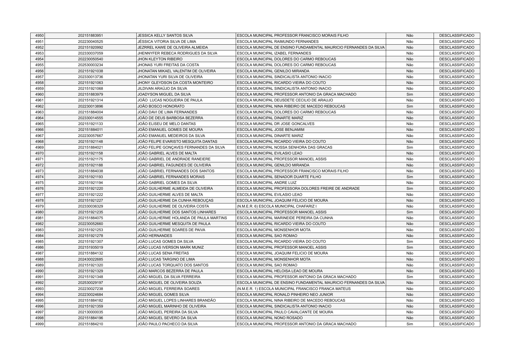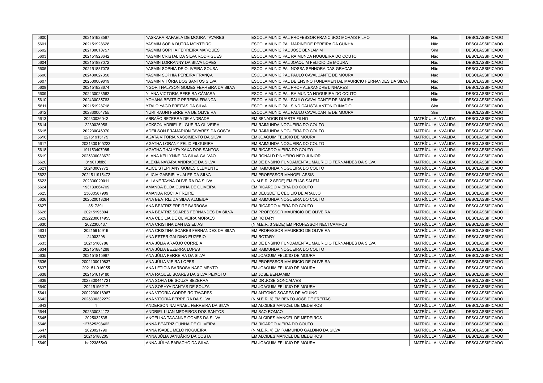 A Comissão Organizadora da 1º edição de seleção para o Programa de Apoio ao Estudante (PAE) da Secretaria Municipal de Educação, instituída pela Portaria nº 190/2025, publicada no Diário Oficial do Município, edição de nº 697, do dia 06 de novembro 2025, no uso de suas atribuições, vem publicar por incorreção o resultado preliminar, o que faz a seguir: