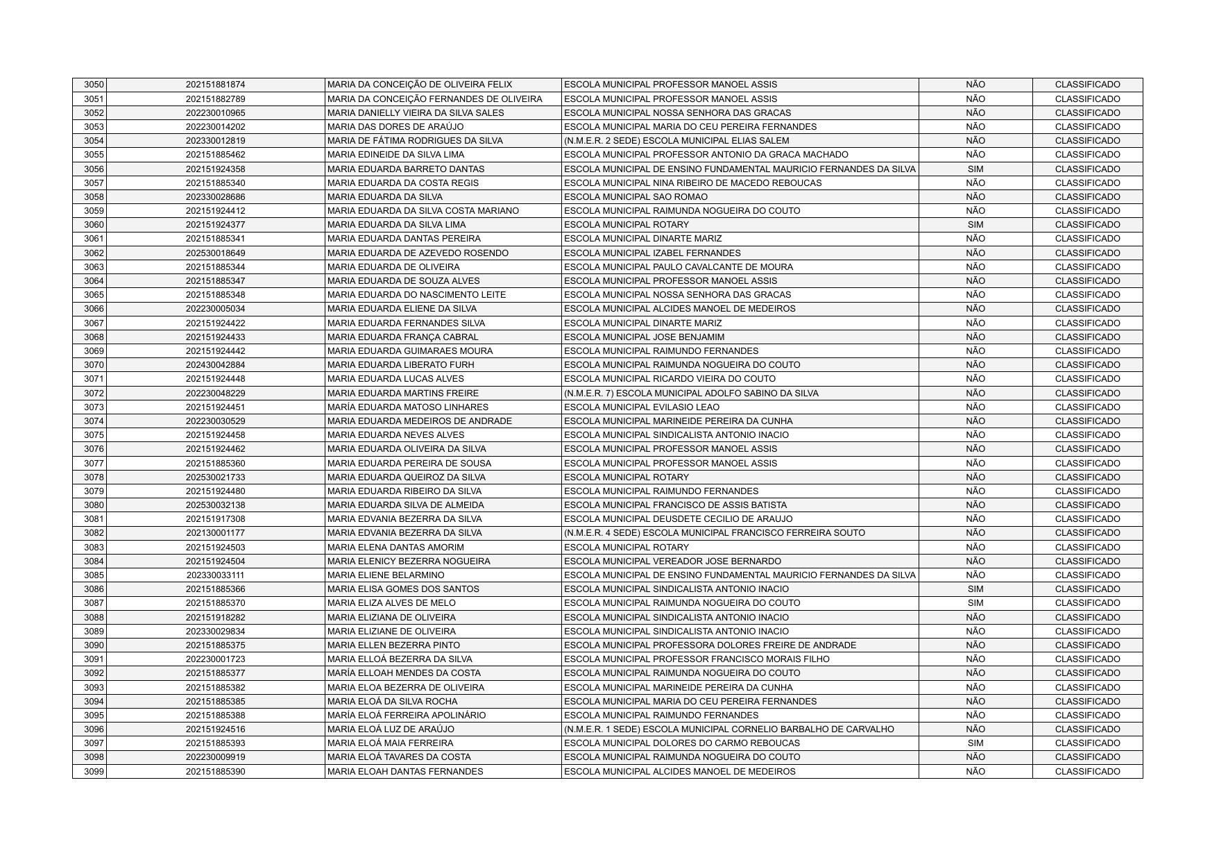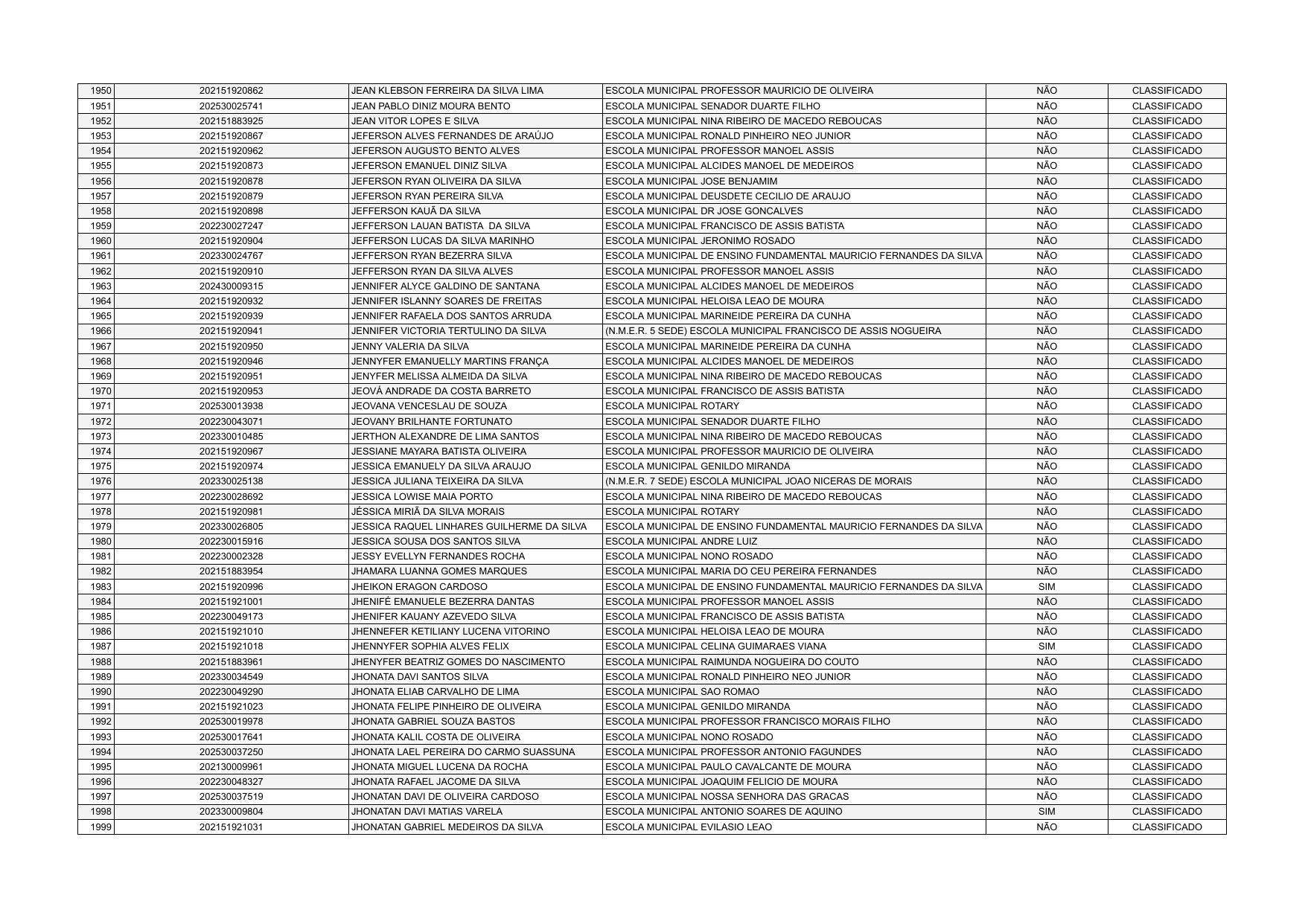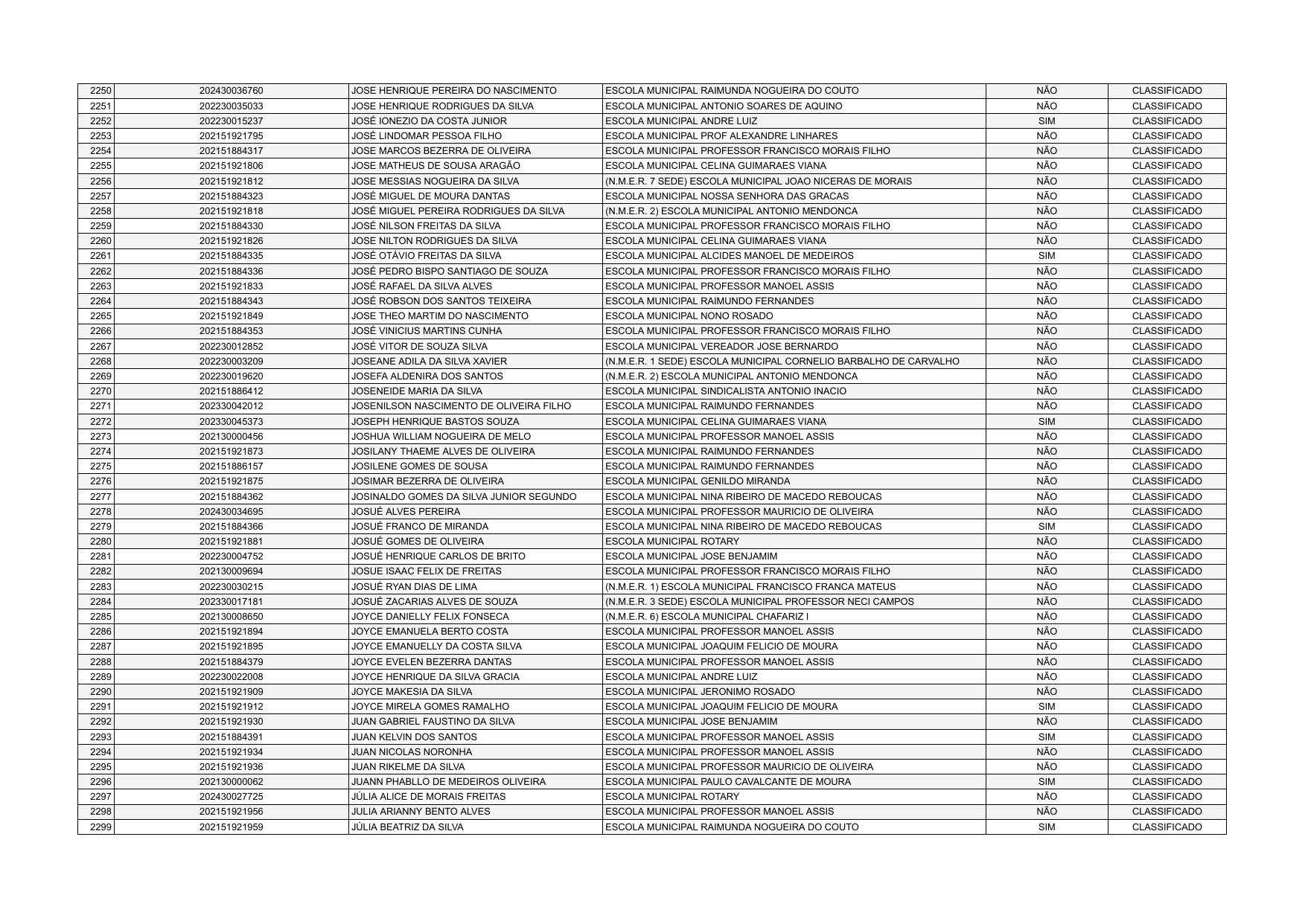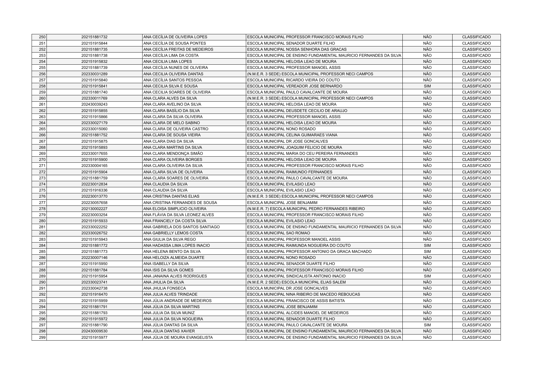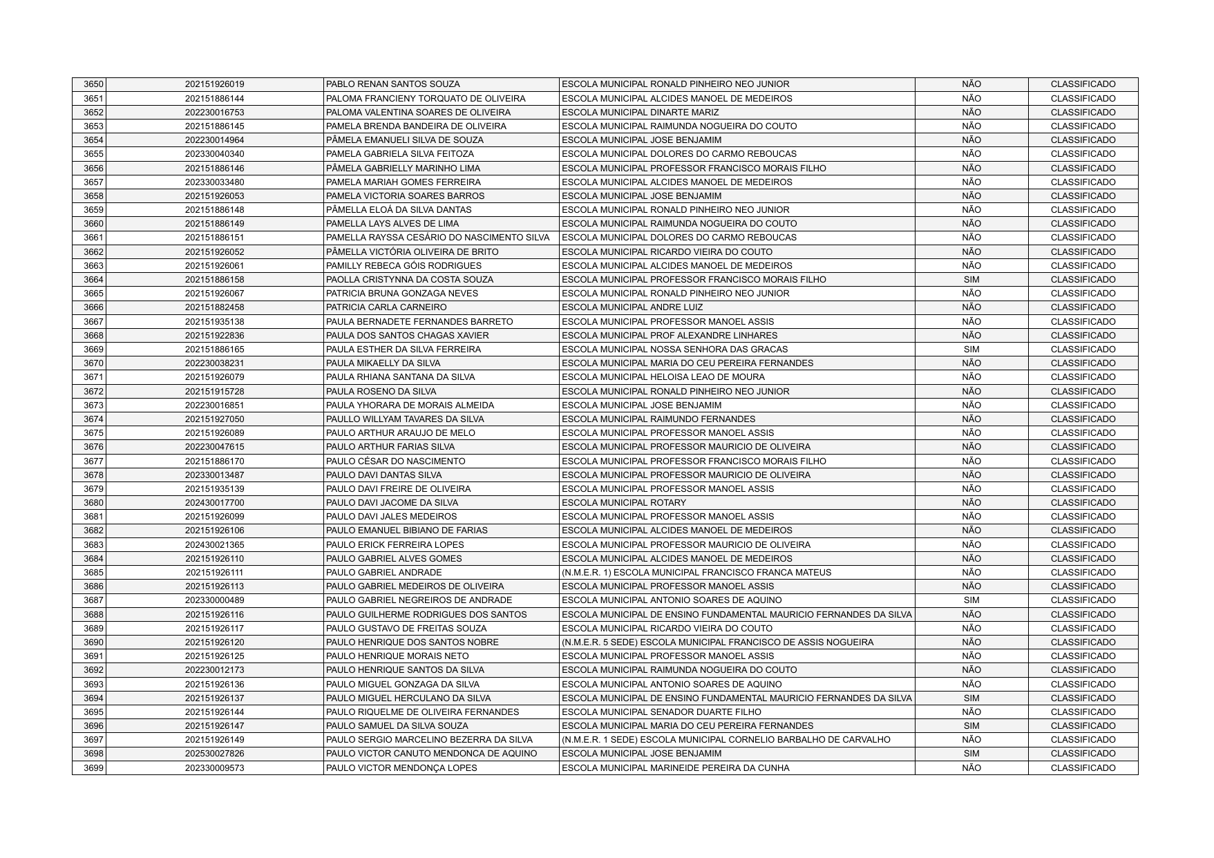 Comissão de Julgamento e Classificação: I- Carlos Emanuel Silva da Costa - Matrícula nº 508799/01 – Diretor Executivo de Administração; II - Laryssa Rayane de Oliveira Silva – Matricula nº 5109466/01 – Gerente Executiva de Orçamento e Contratações; III – Milena Aires de Brito Pinheiro Cajarana – Matrícula nº 0509981-1 - Coordenadora de Alimentação e Nutrição Escolar; IV – Suzanne Raissa Salvador Fernandes – Matrícula nº 5079764-1 –