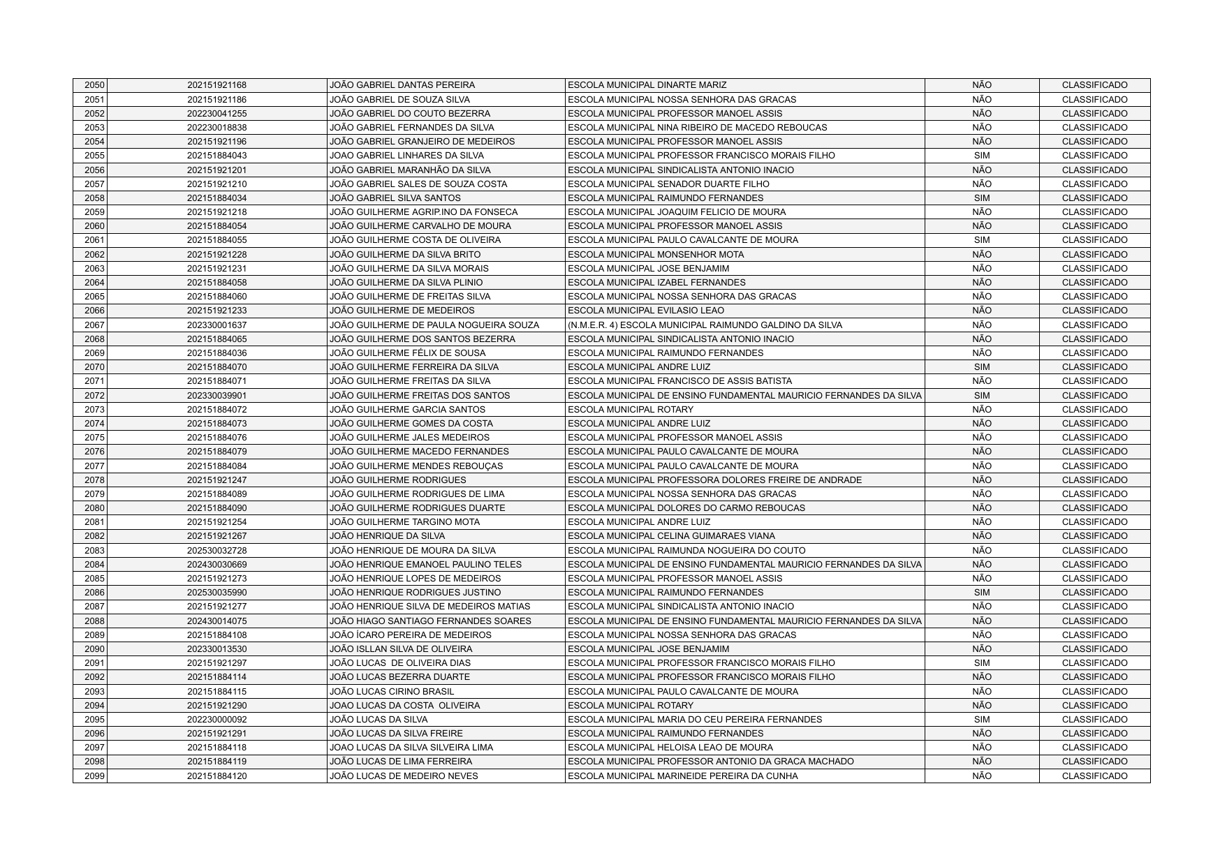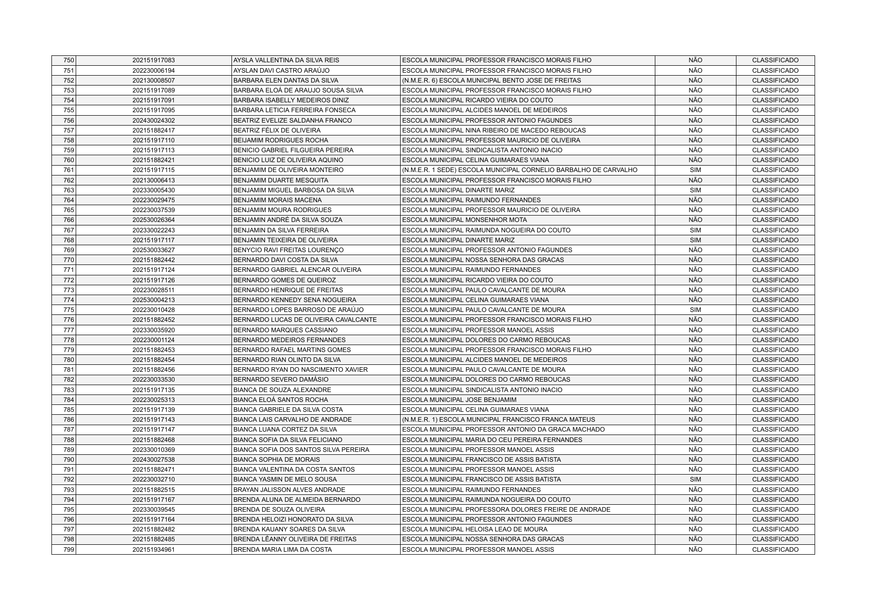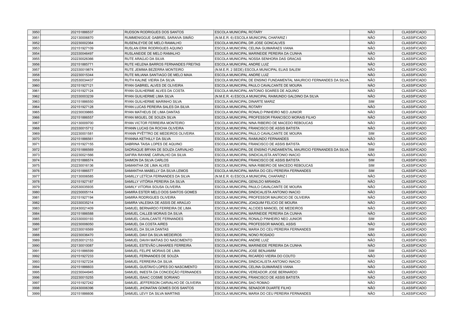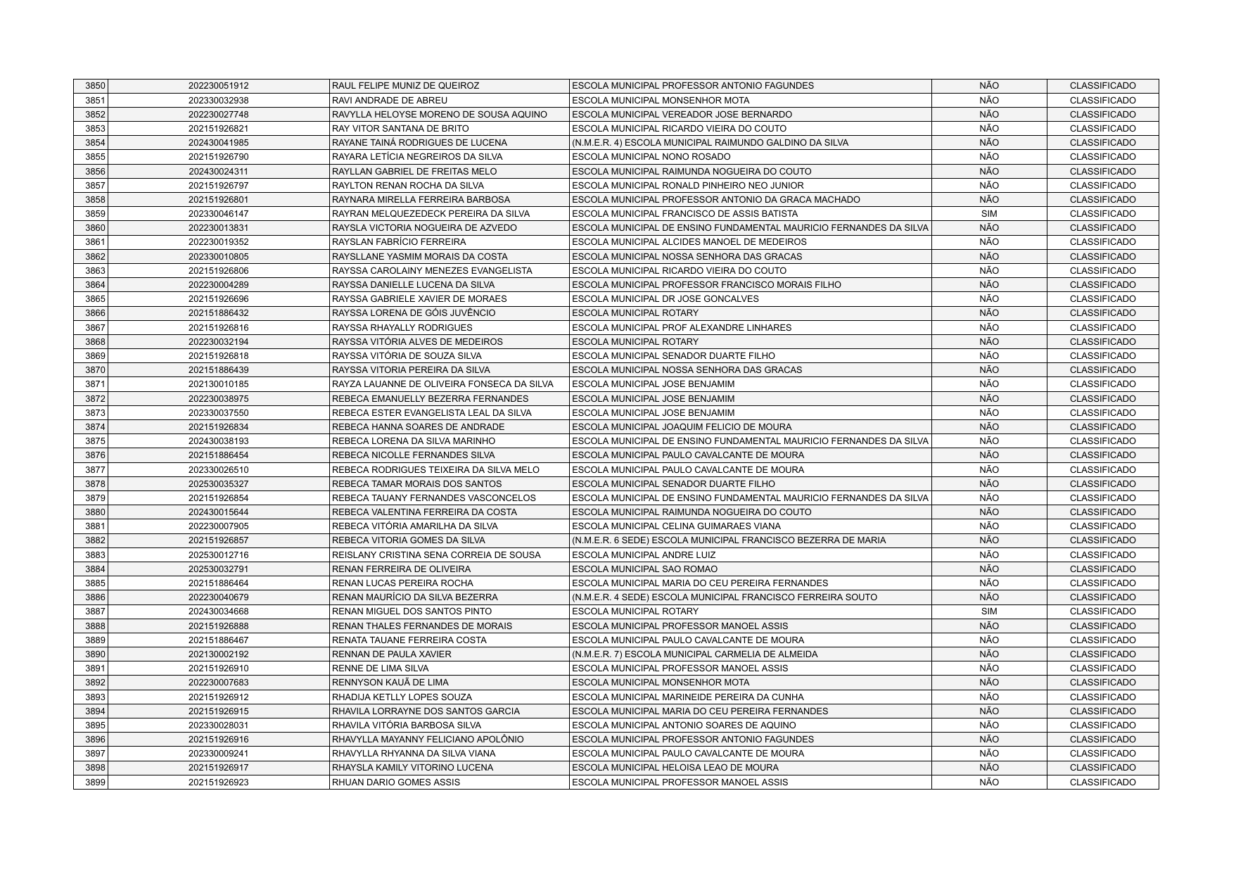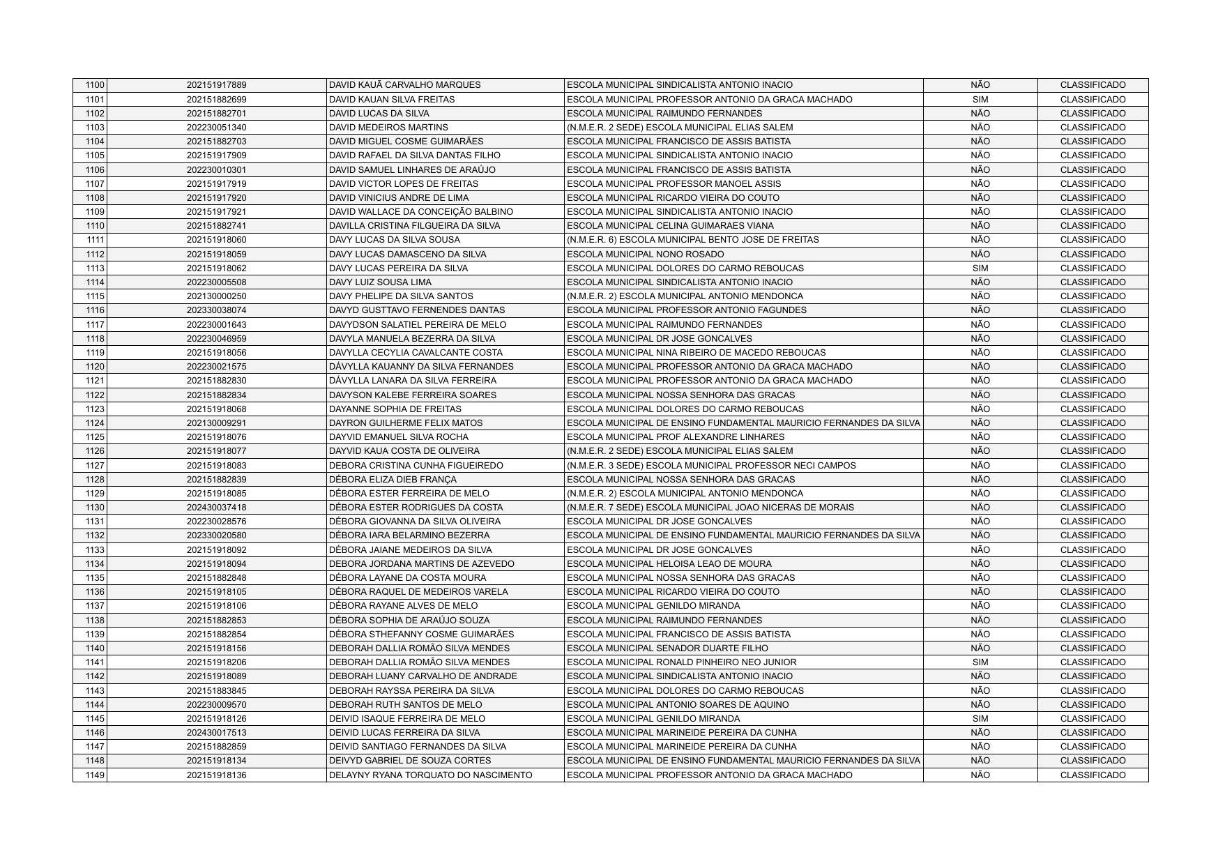 Comissão de Julgamento e Classificação: I- Carlos Emanuel Silva da Costa - Matrícula nº 508799/01 – Diretor Executivo de Administração; II - Laryssa Rayane de Oliveira Silva – Matricula nº 5109466/01 – Gerente Executiva de Orçamento e Contratações; III – Milena Aires de Brito Pinheiro Cajarana – Matrícula nº 0509981-1 - Coordenadora de Alimentação e Nutrição Escolar; IV – Suzanne Raissa Salvador Fernandes – Matrícula nº 5079764-1 –