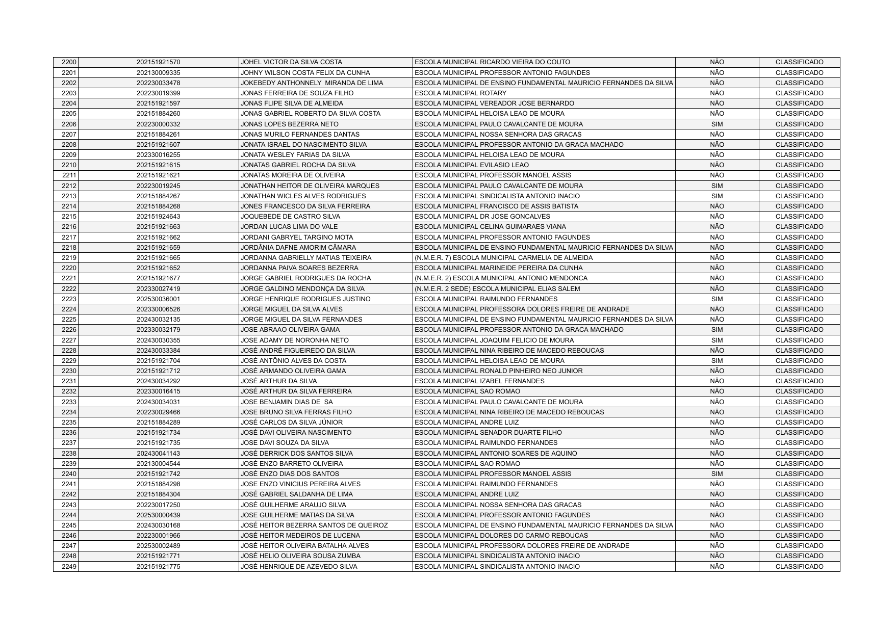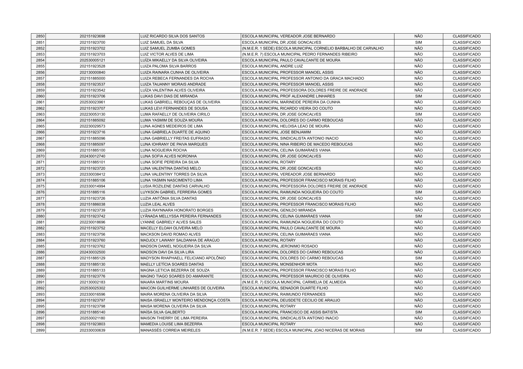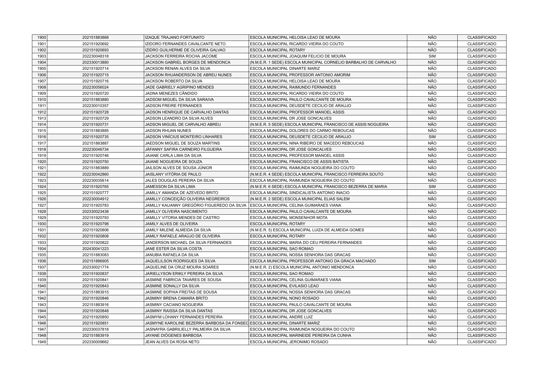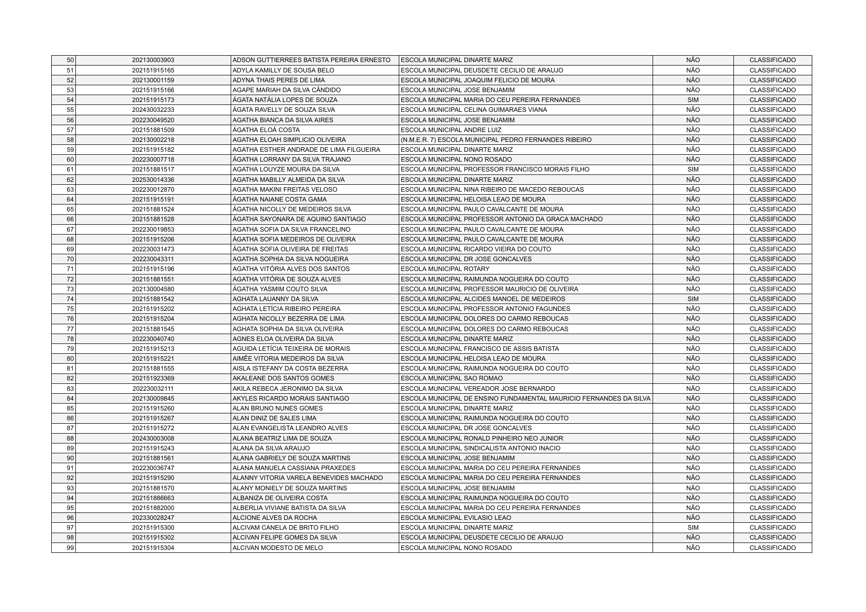 Comissão de Julgamento e Classificação: I- Carlos Emanuel Silva da Costa - Matrícula nº 508799/01 – Diretor Executivo de Administração; II - Laryssa Rayane de Oliveira Silva – Matricula nº 5109466/01 – Gerente Executiva de Orçamento e Contratações; III – Milena Aires de Brito Pinheiro Cajarana – Matrícula nº 0509981-1 - Coordenadora de Alimentação e Nutrição Escolar; IV – Suzanne Raissa Salvador Fernandes – Matrícula nº 5079764-1 –