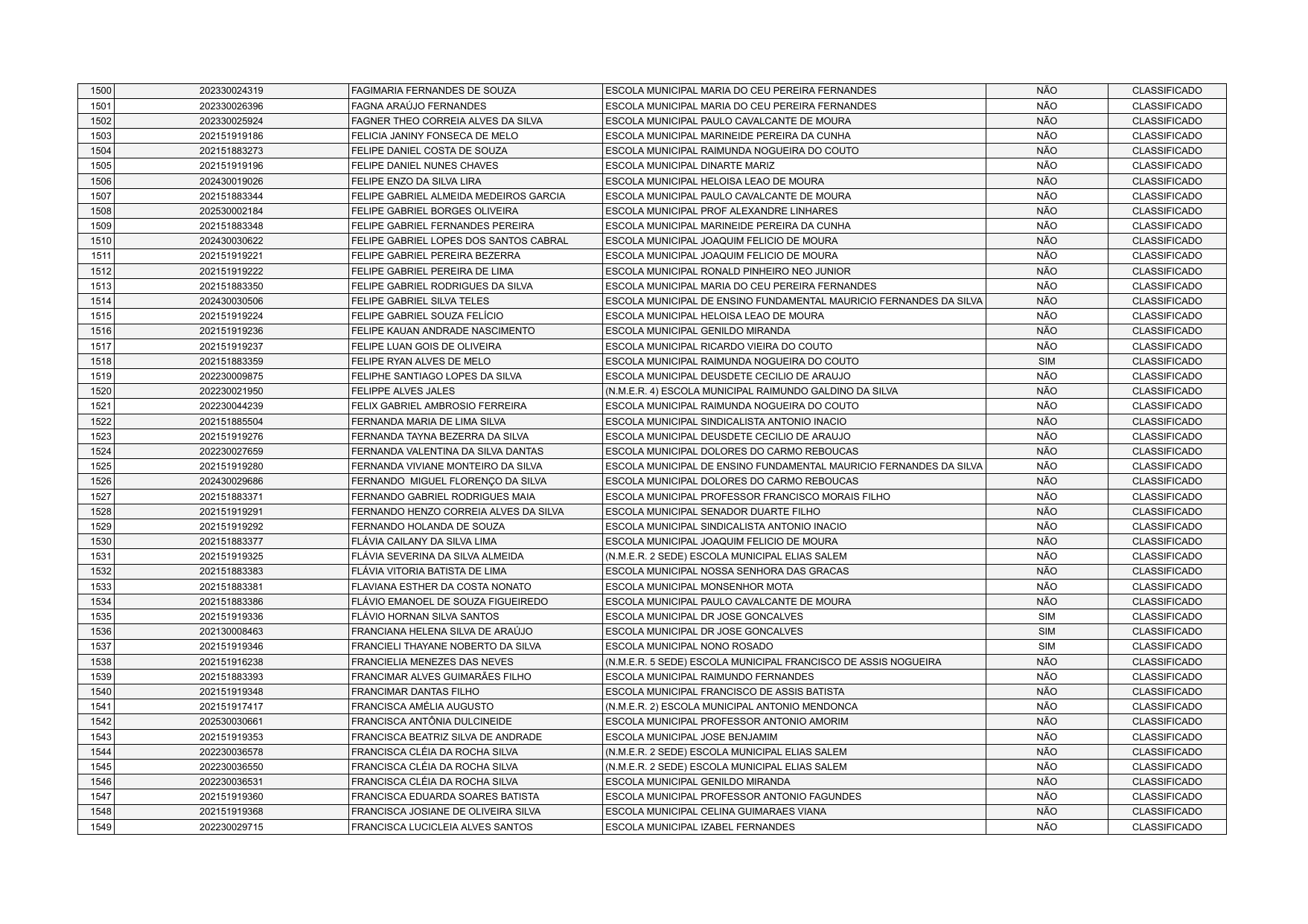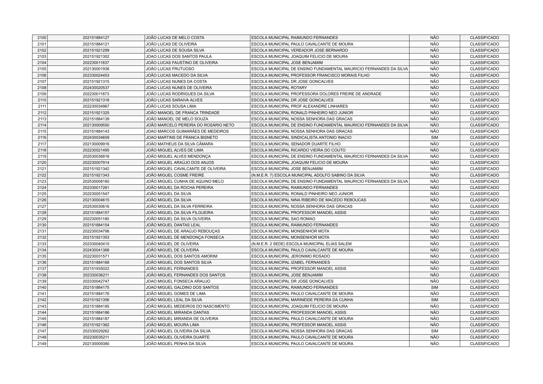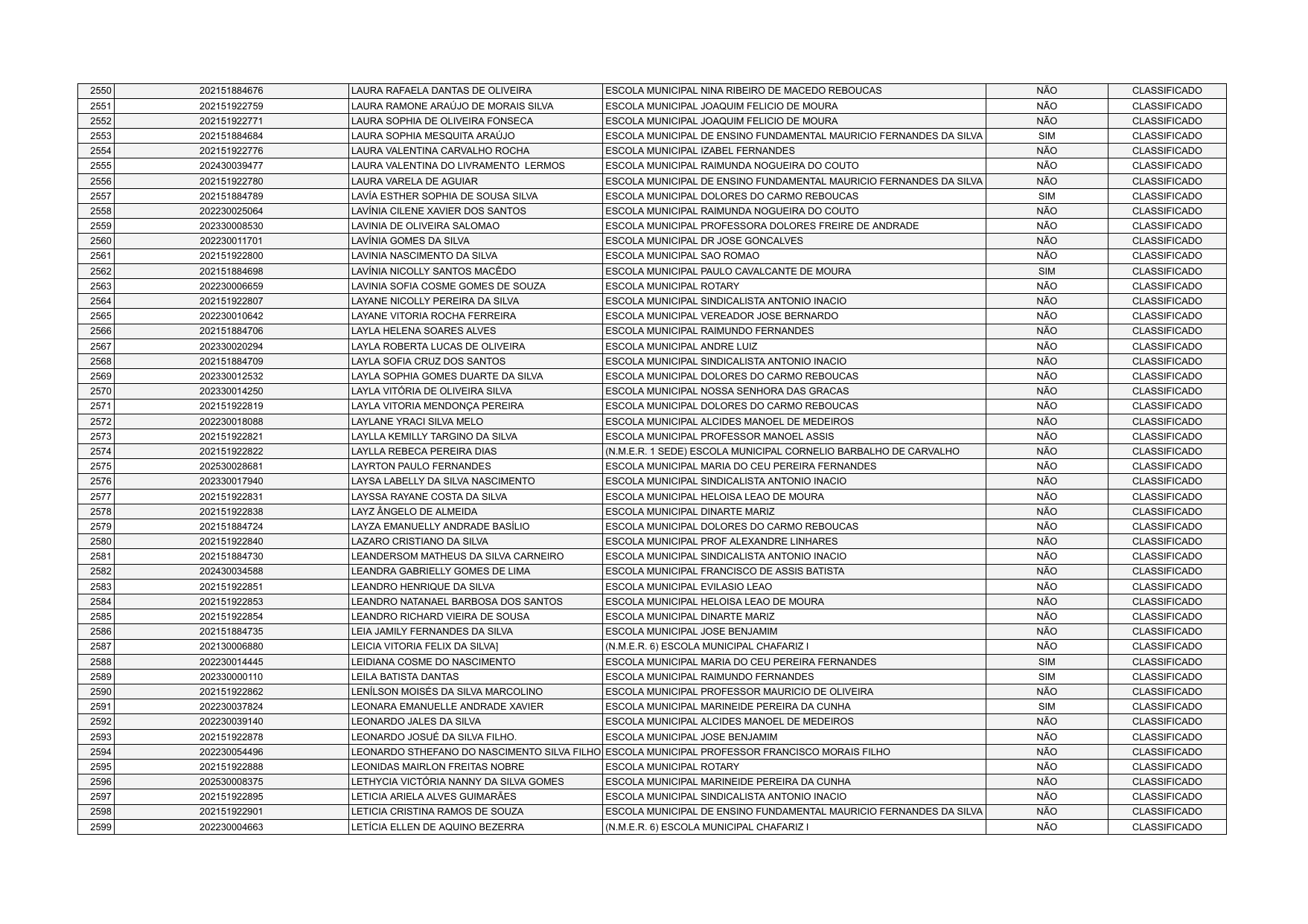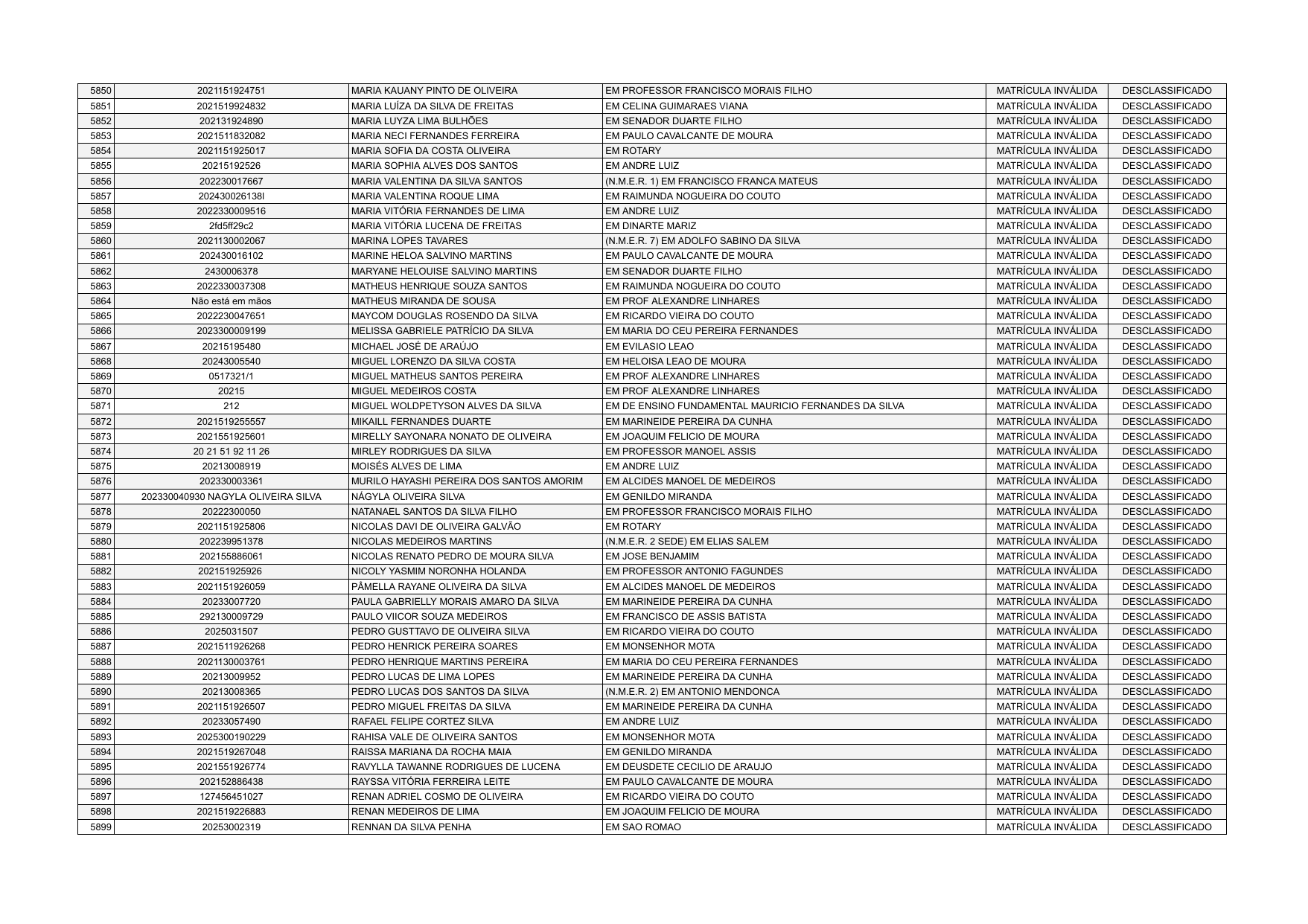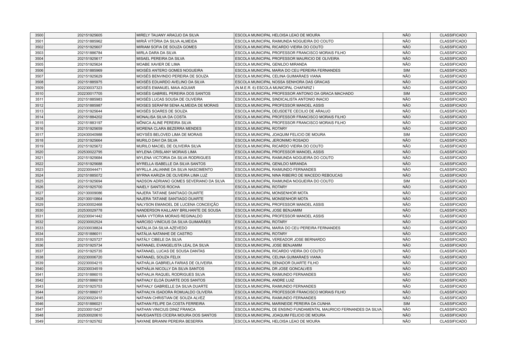 Comissão de Julgamento e Classificação: I- Carlos Emanuel Silva da Costa - Matrícula nº 508799/01 – Diretor Executivo de Administração; II - Laryssa Rayane de Oliveira Silva – Matricula nº 5109466/01 – Gerente Executiva de Orçamento e Contratações; III – Milena Aires de Brito Pinheiro Cajarana – Matrícula nº 0509981-1 - Coordenadora de Alimentação e Nutrição Escolar; IV – Suzanne Raissa Salvador Fernandes – Matrícula nº 5079764-1 –
