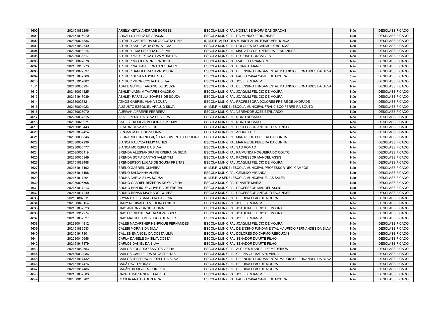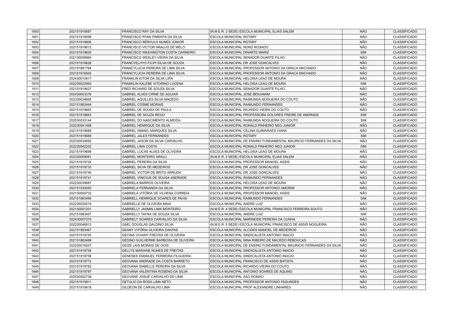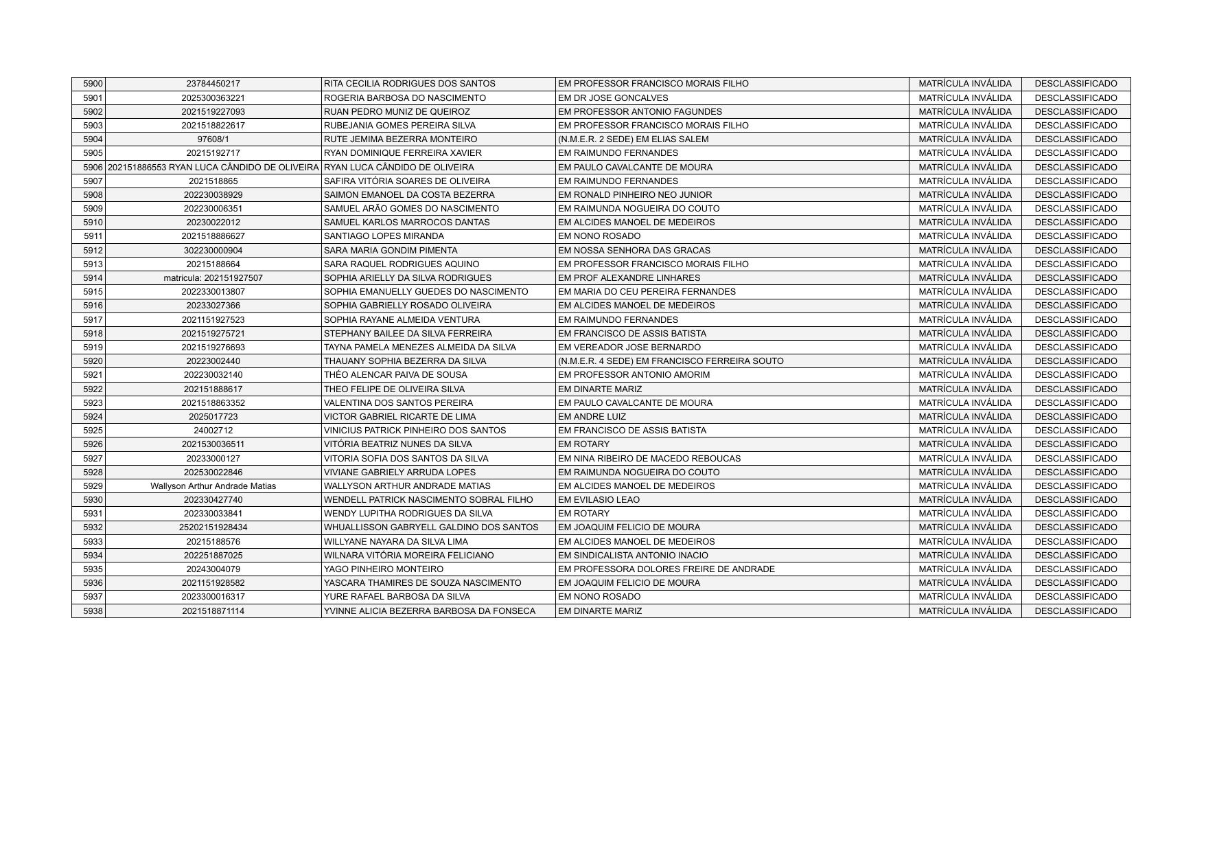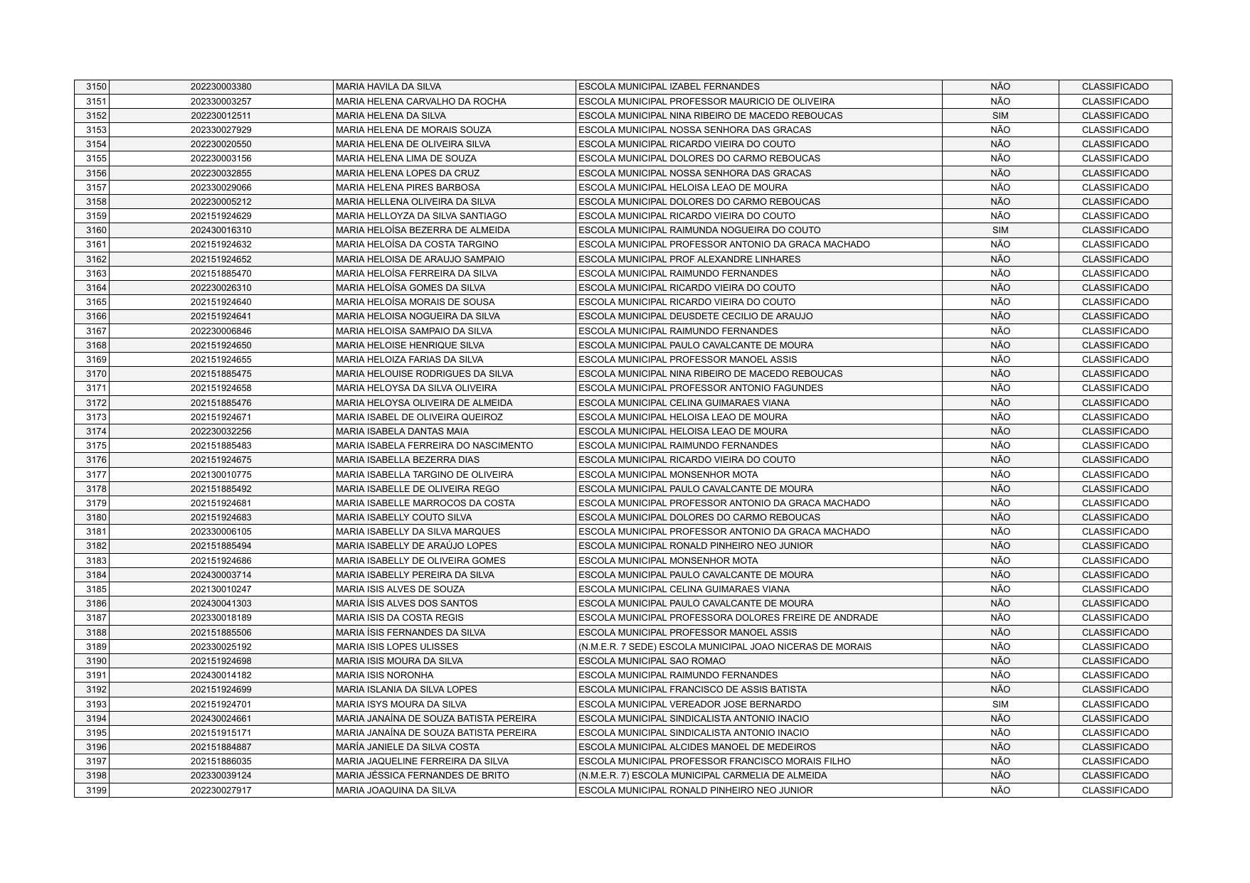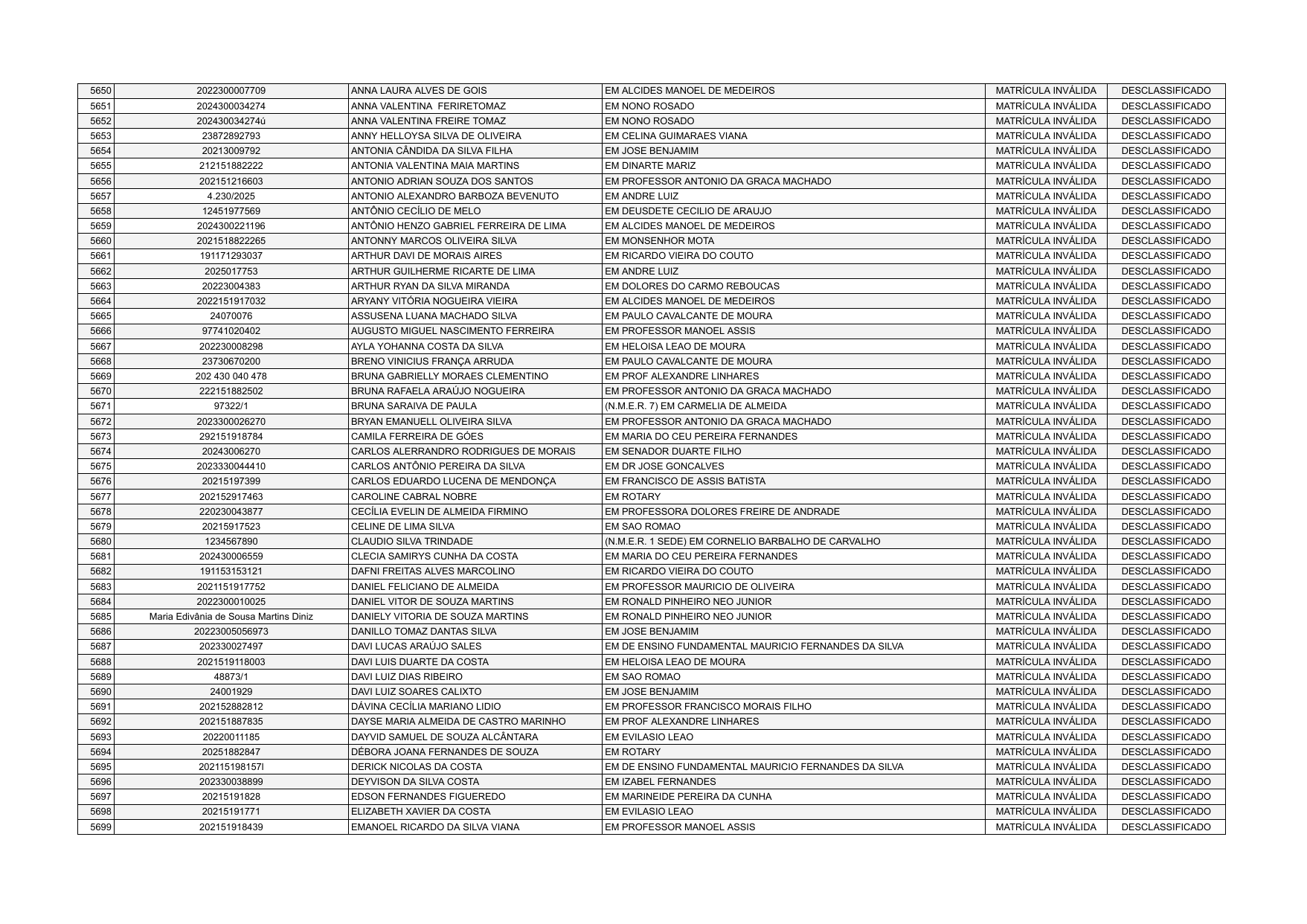 Comissão de Julgamento e Classificação: I- Carlos Emanuel Silva da Costa - Matrícula nº 508799/01 – Diretor Executivo de Administração; II - Laryssa Rayane de Oliveira Silva – Matricula nº 5109466/01 – Gerente Executiva de Orçamento e Contratações; III – Milena Aires de Brito Pinheiro Cajarana – Matrícula nº 0509981-1 - Coordenadora de Alimentação e Nutrição Escolar; IV – Suzanne Raissa Salvador Fernandes – Matrícula nº 5079764-1 –