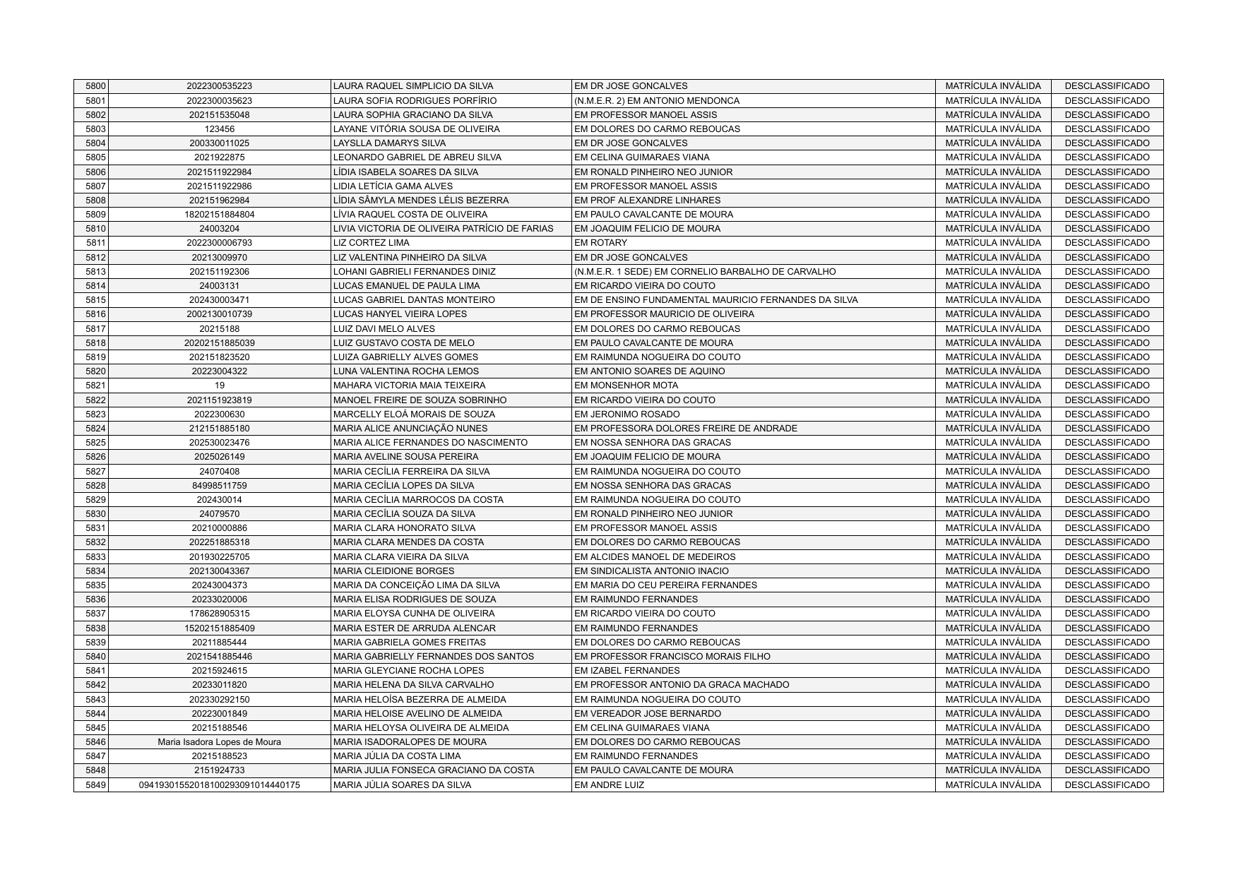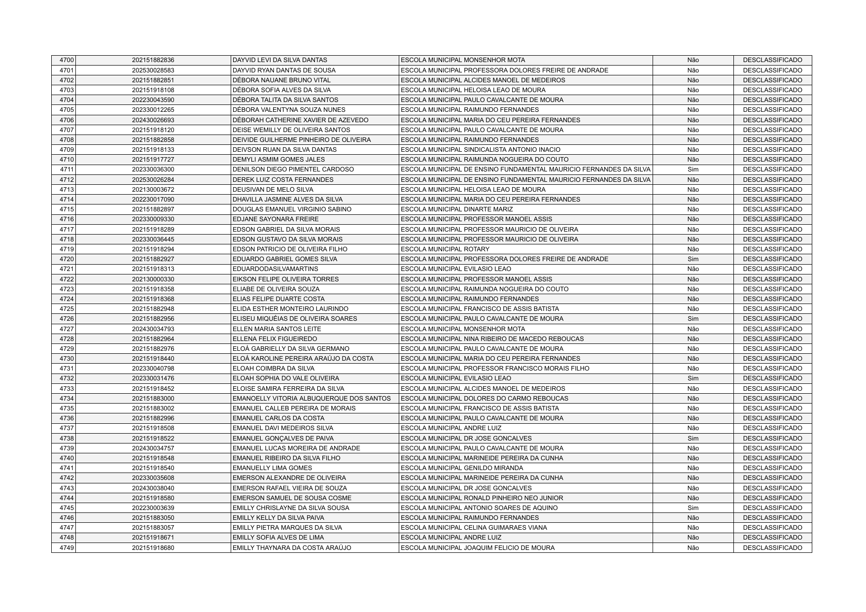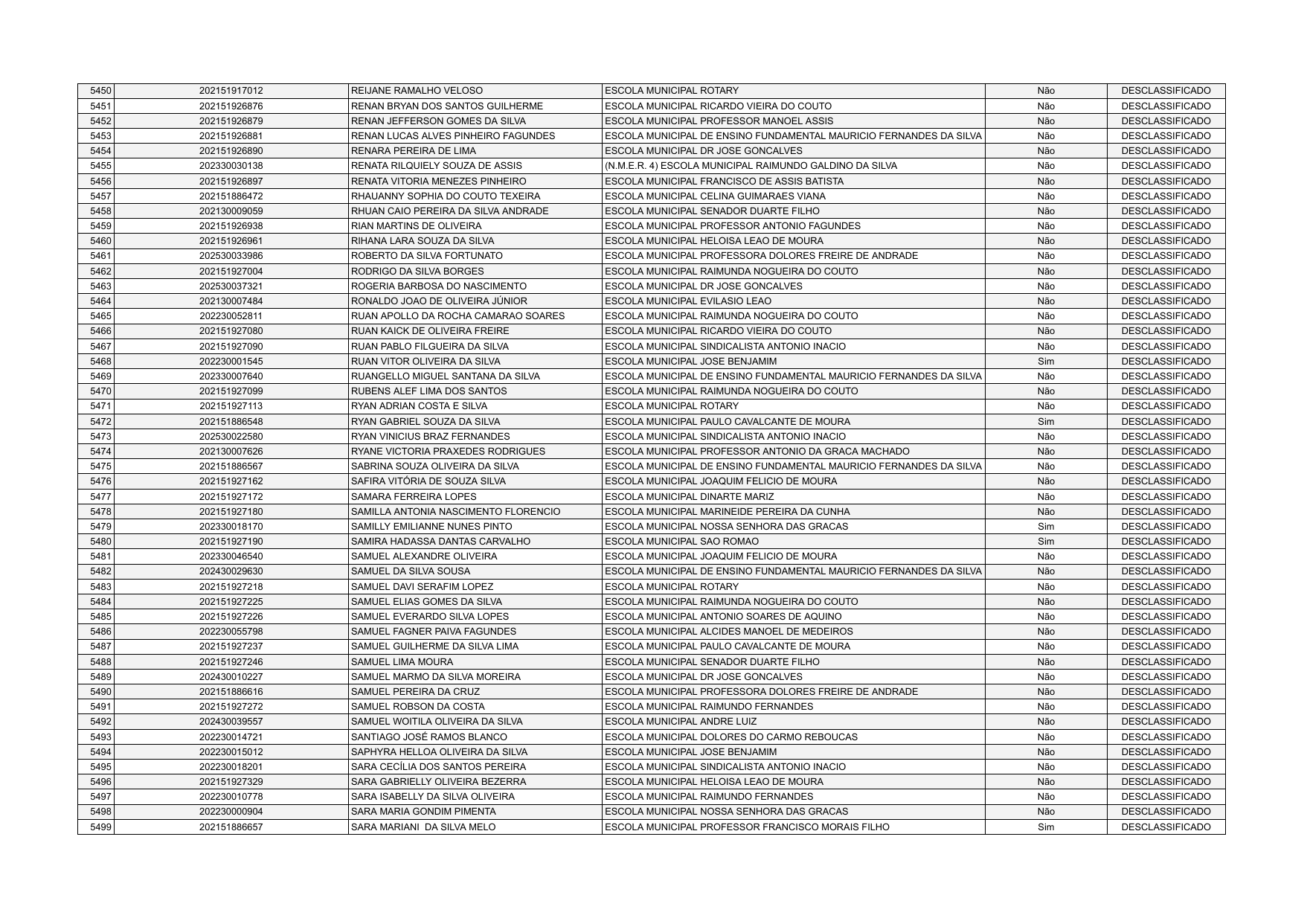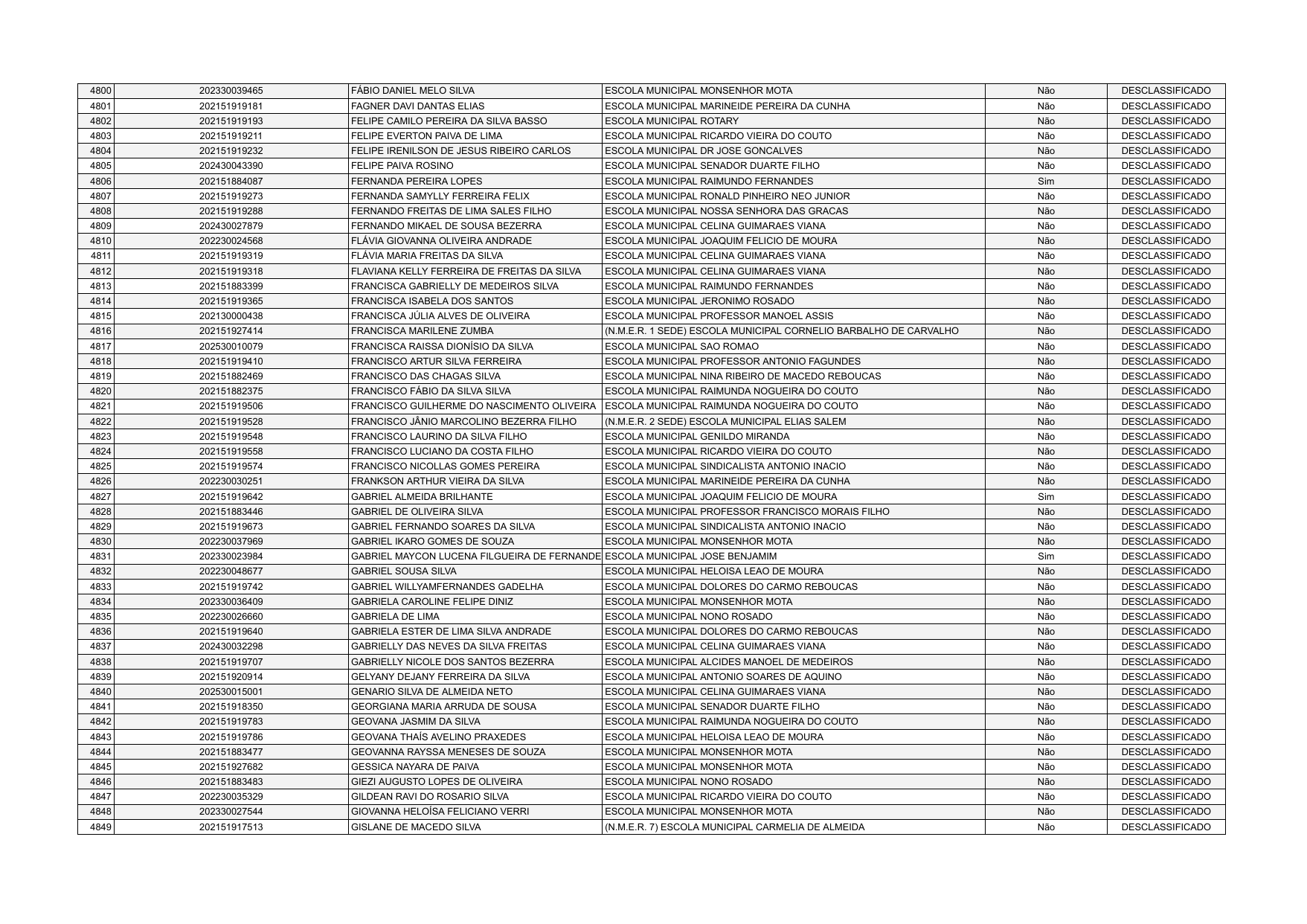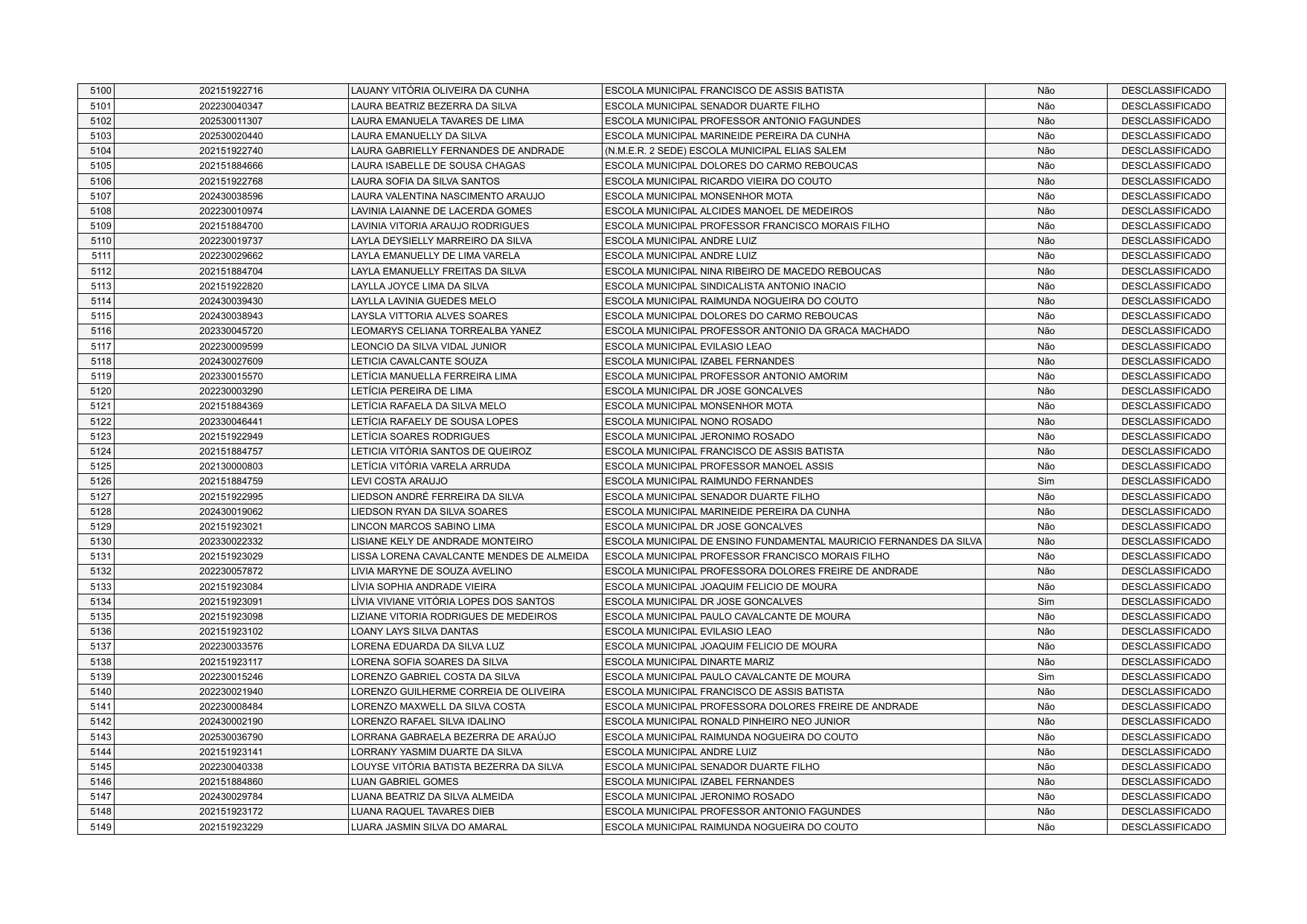 Comissão de Julgamento e Classificação: I- Carlos Emanuel Silva da Costa - Matrícula nº 508799/01 – Diretor Executivo de Administração; II - Laryssa Rayane de Oliveira Silva – Matricula nº 5109466/01 – Gerente Executiva de Orçamento e Contratações; III – Milena Aires de Brito Pinheiro Cajarana – Matrícula nº 0509981-1 - Coordenadora de Alimentação e Nutrição Escolar; IV – Suzanne Raissa Salvador Fernandes – Matrícula nº 5079764-1 –