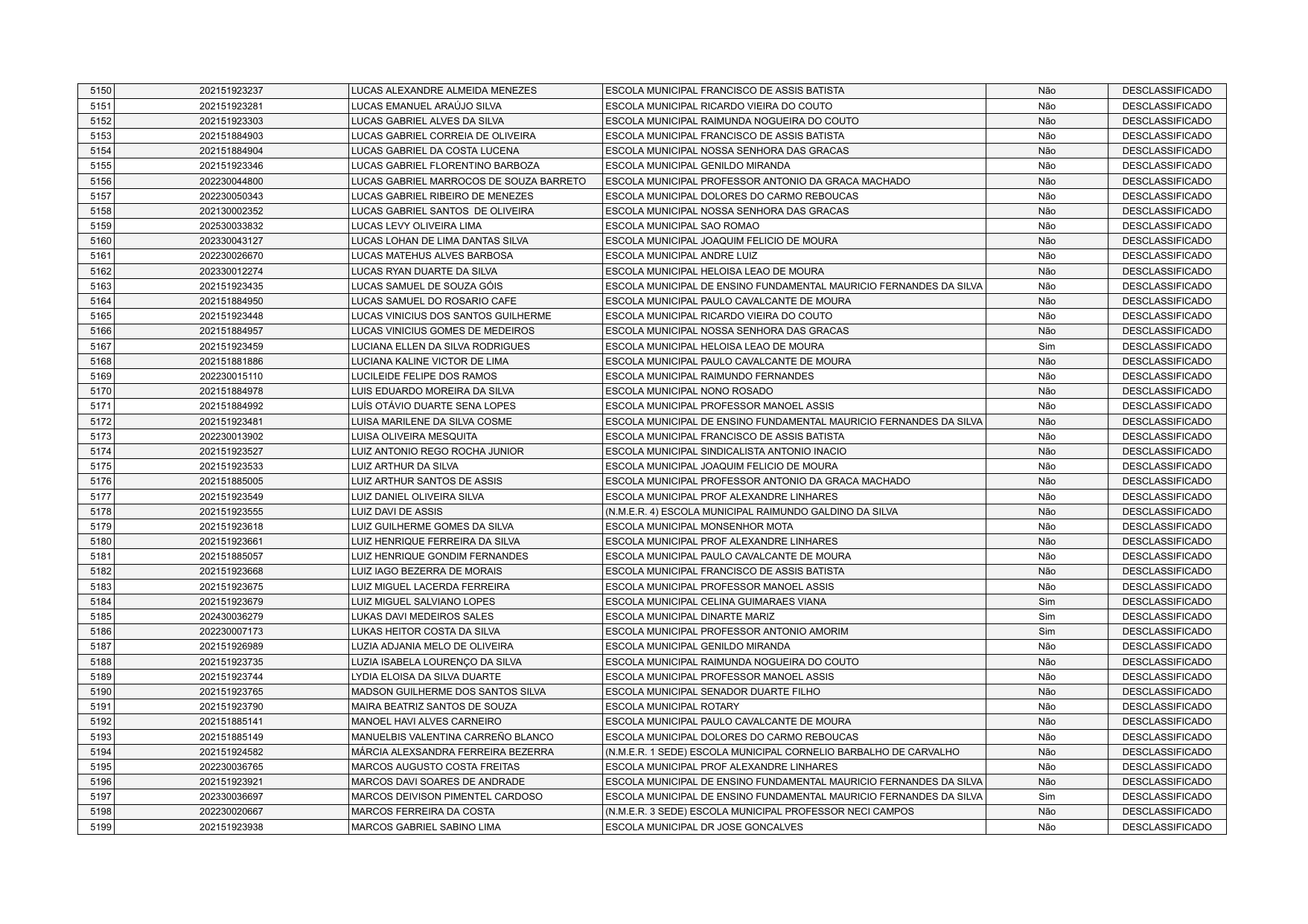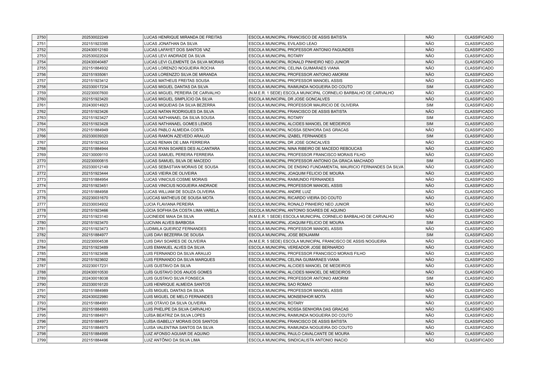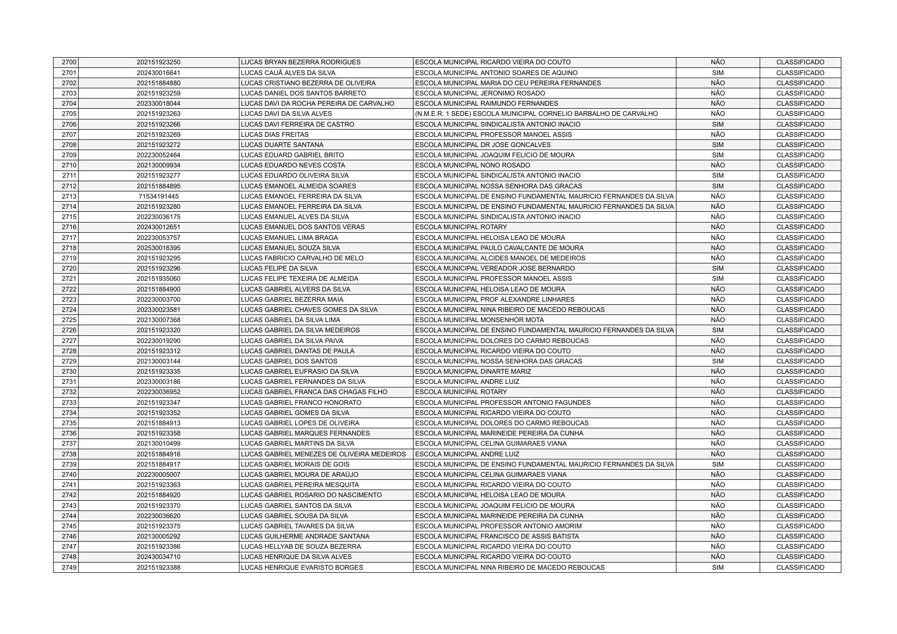 e) Lucas Mateus Fernandes da Silva, representante da Secretaria Municipal de Assistência Social e Cidadania.