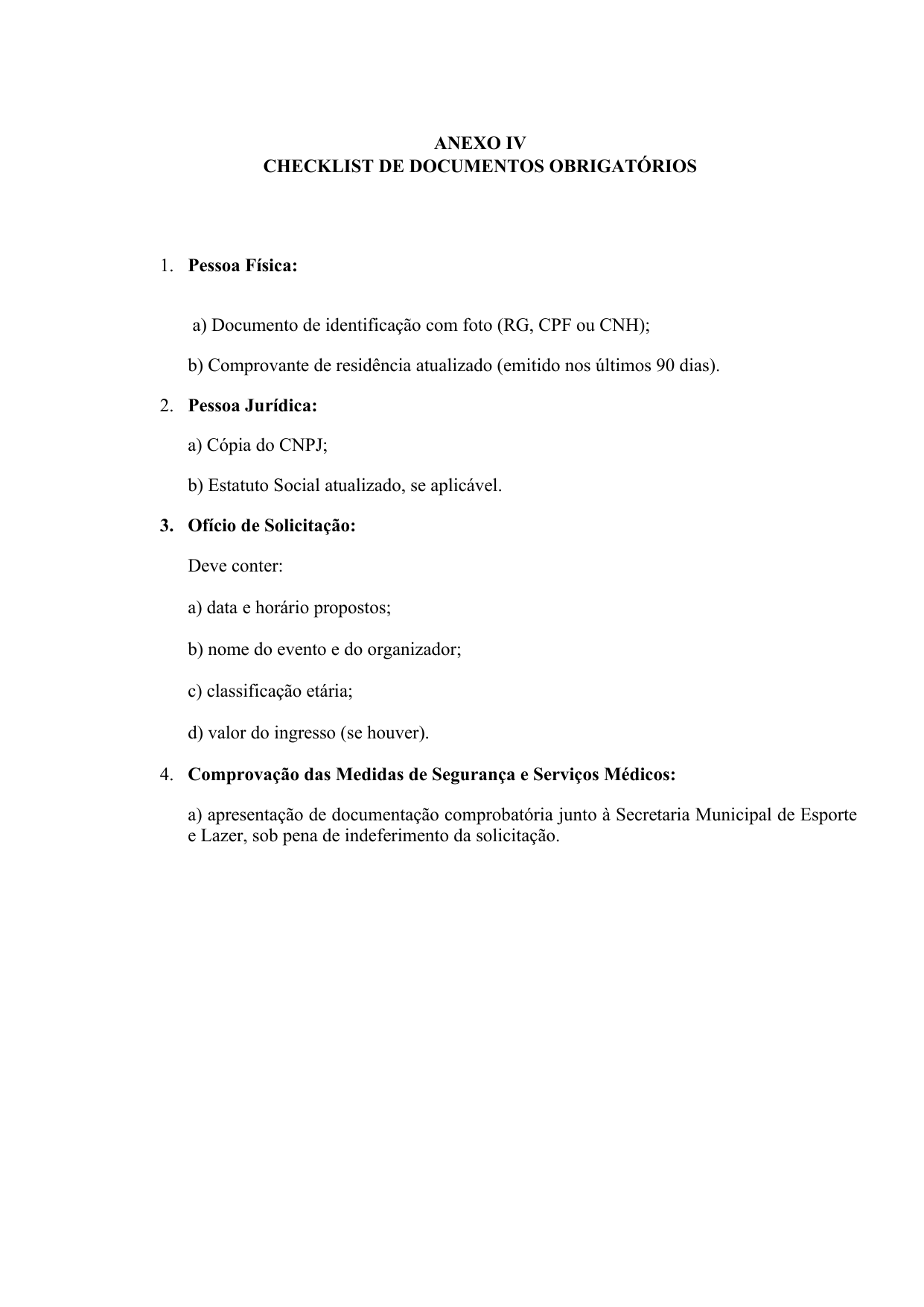 IV - Outros Eventos em geral: mínimo de 30 (trinta) dias.