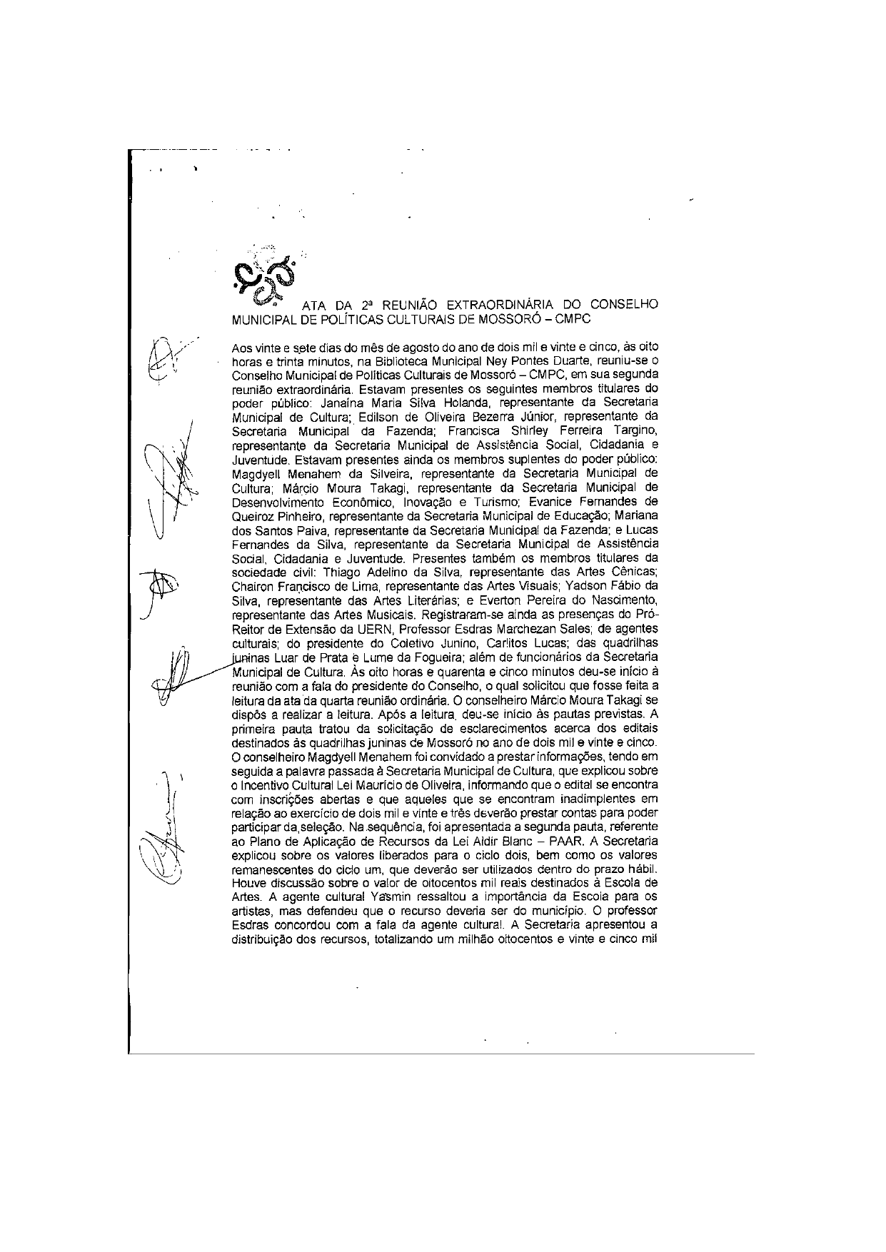 O Conselho Municipal de Políticas Culturais de Mossoró – CMPCM, no uso de suas atribuições legais, especialmente as previstas na legislação municipal que regulamenta o Sistema Municipal de Cultura, e