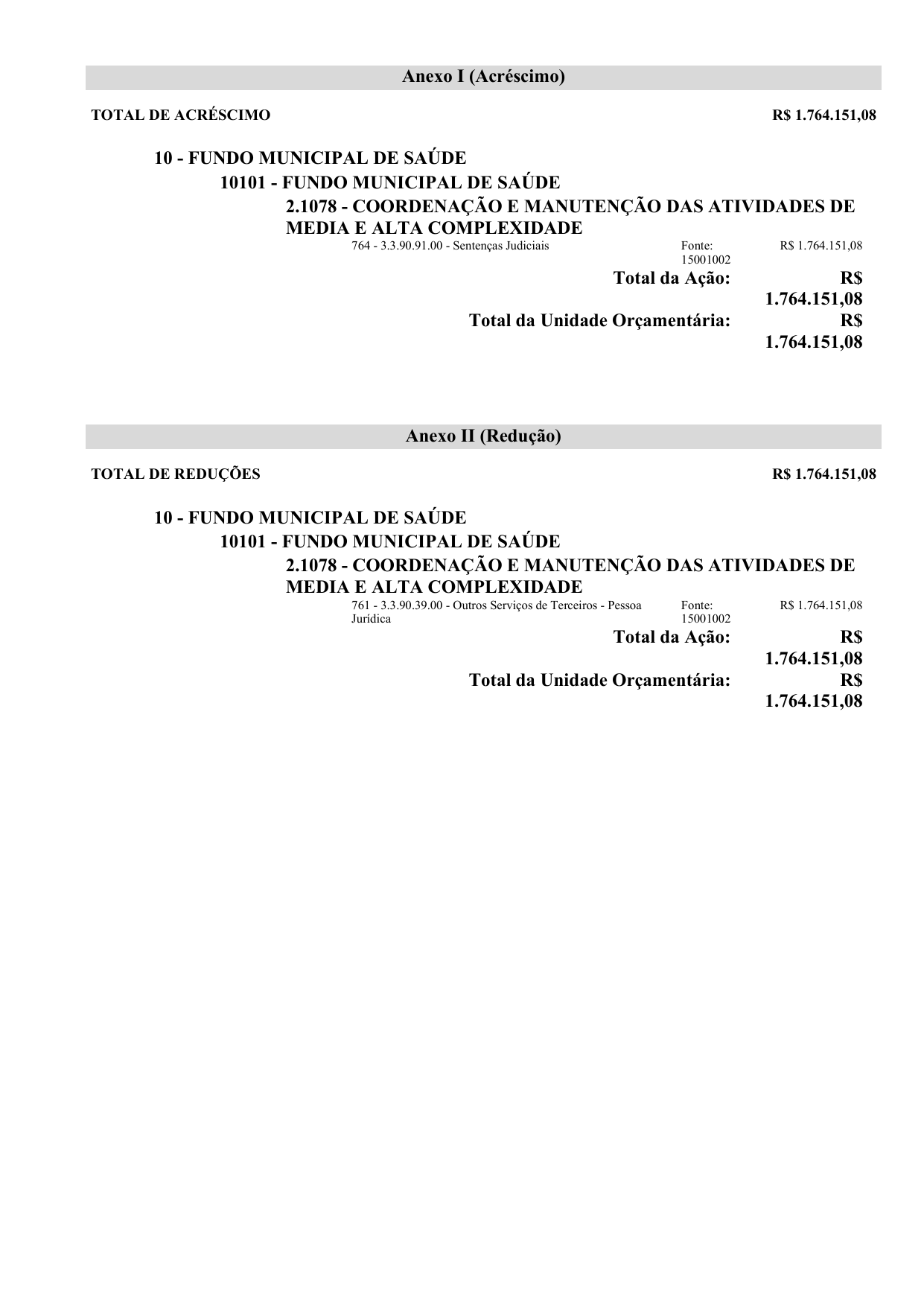 Art. 1º Alterar o valor de R$ 1.764.151,08 (um milhão e setecentos e sessenta e quatro mil e cento e cinquenta e um reais e oito centavos) constante no QDD - Quadro de Detalhamento das Despesas aprovado desta prefeitura, para reforço da dotação orçamentária especificada no Anexo I desta Portaria.