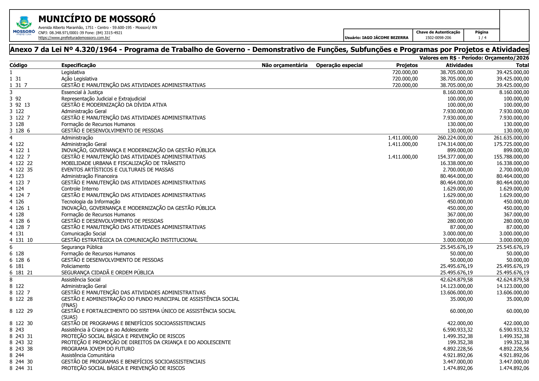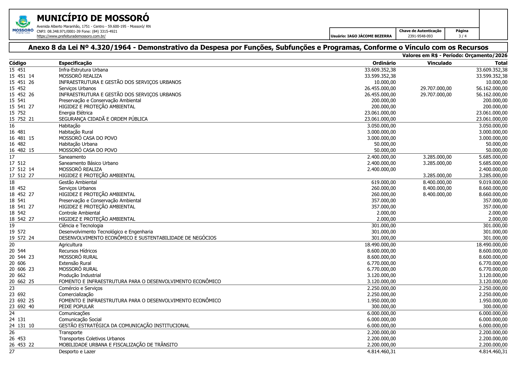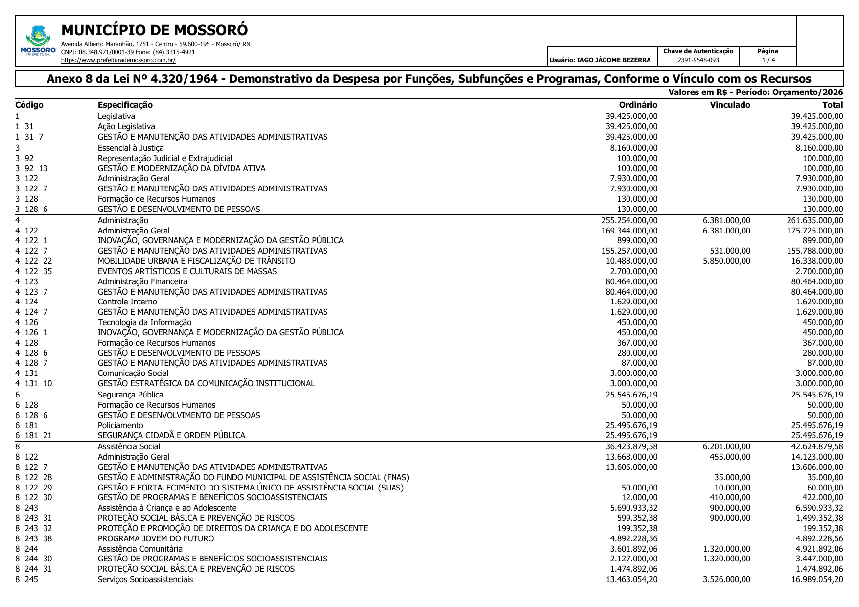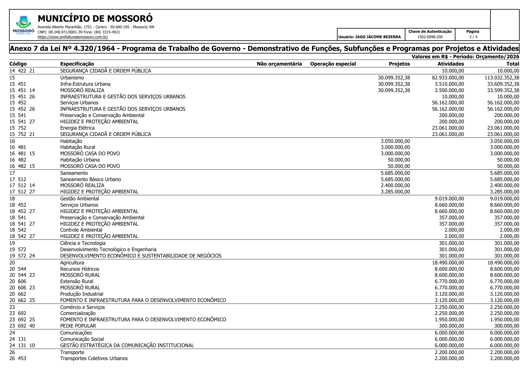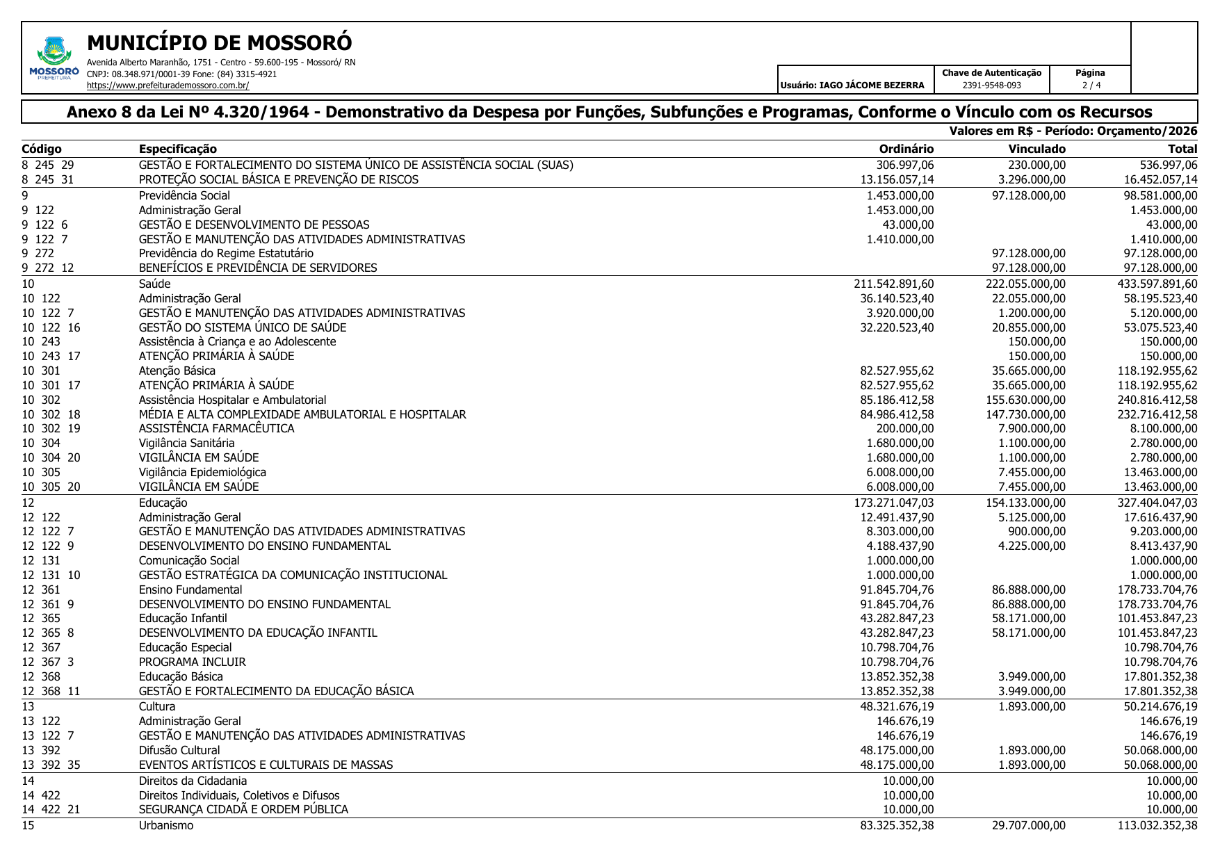 Estima as receitas e fixa as despesas do Município de Mossoró para o exercício financeiro de 2026 e dá outras providências