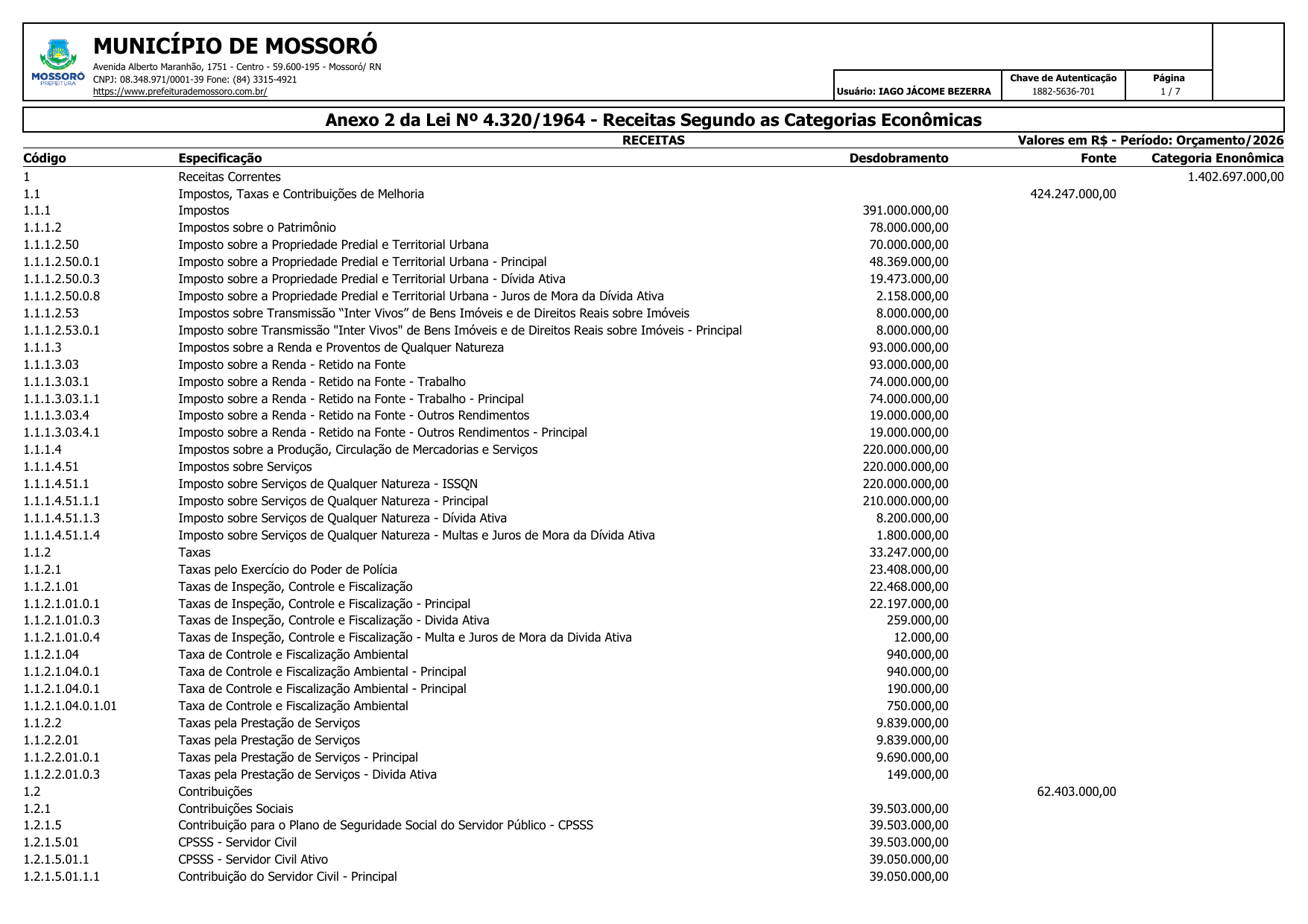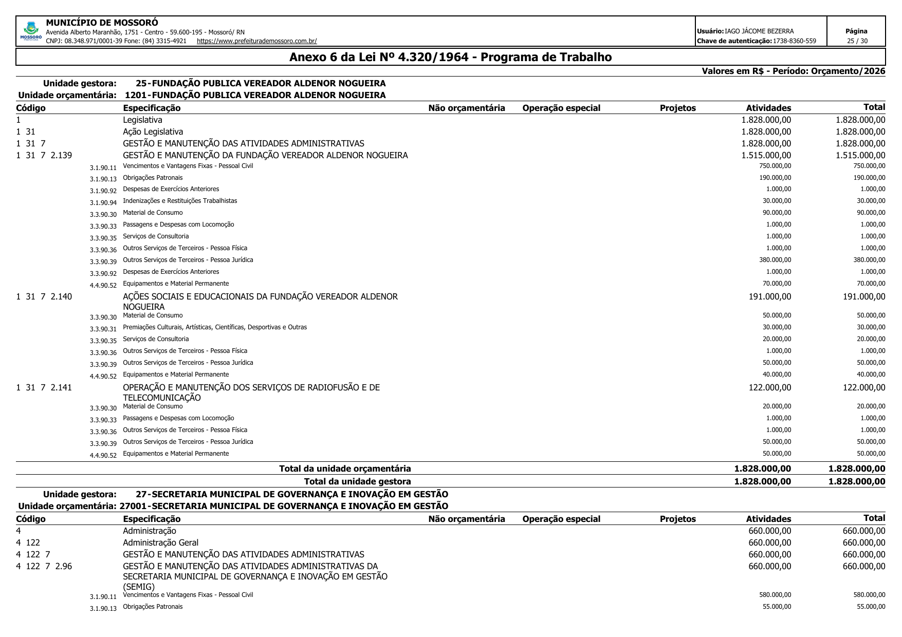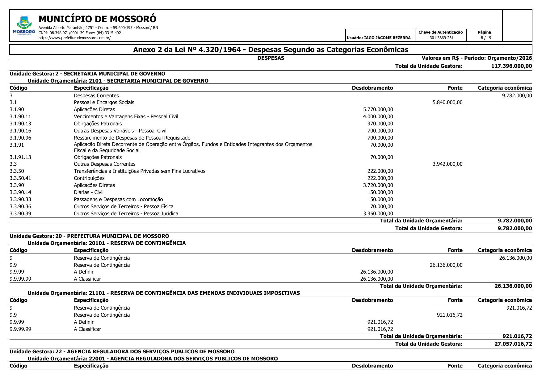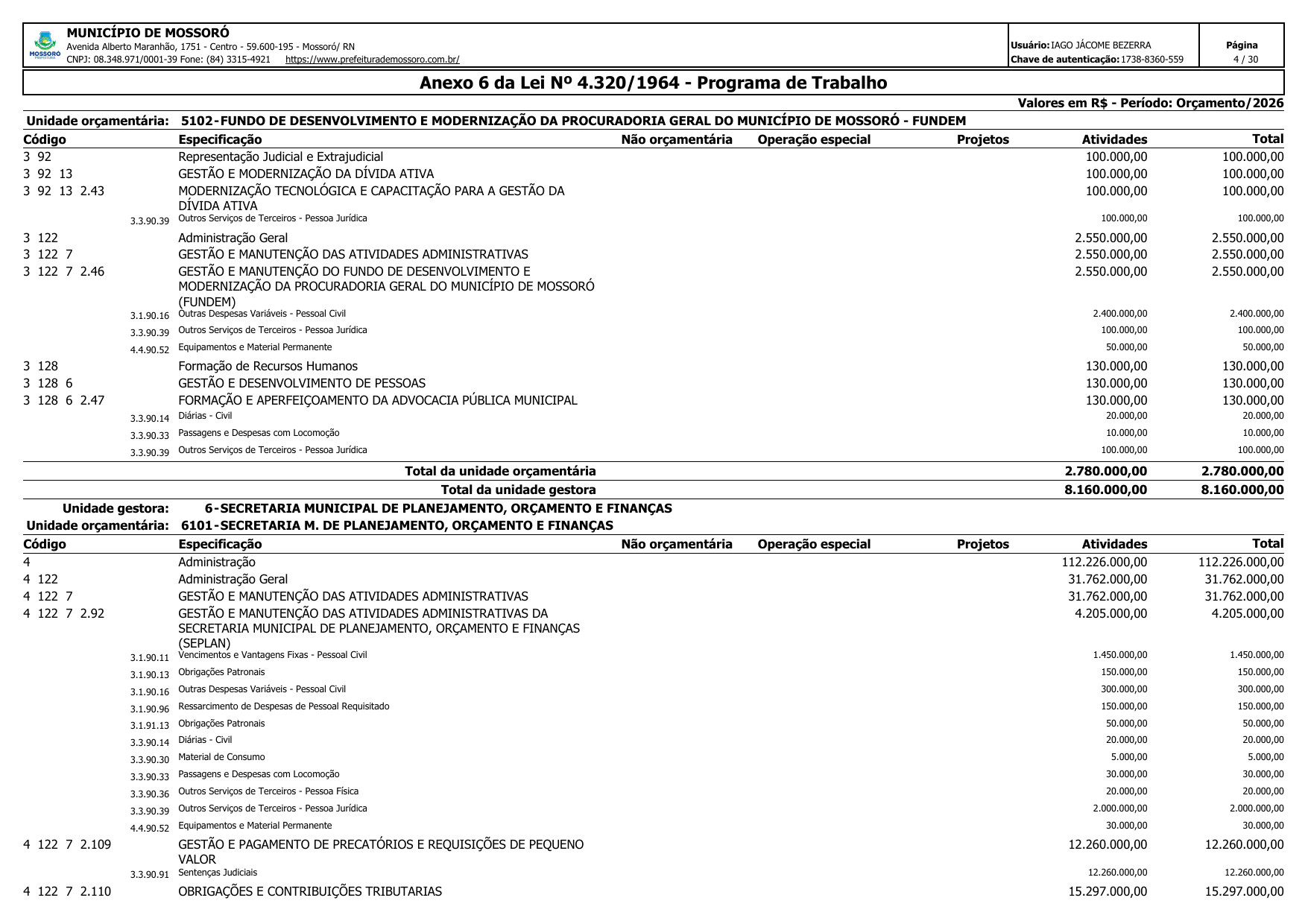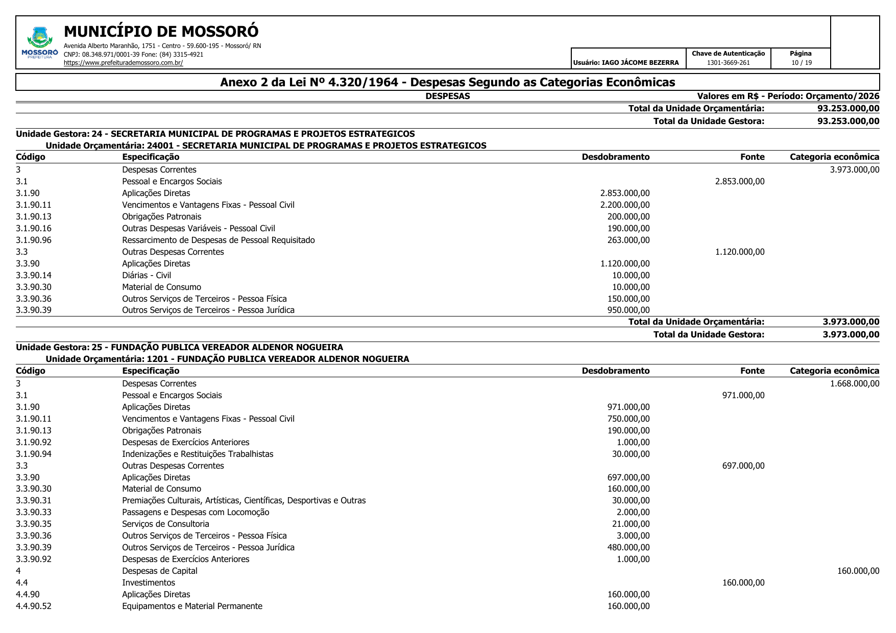 Estima as receitas e fixa as despesas do Município de Mossoró para o exercício financeiro de 2026 e dá outras providências