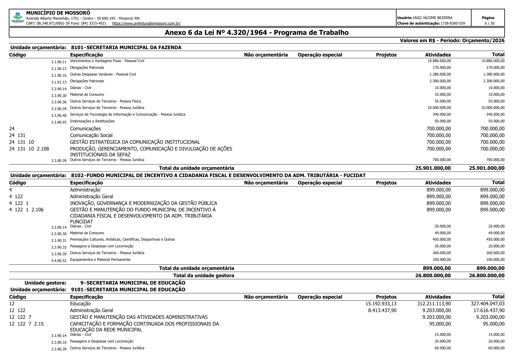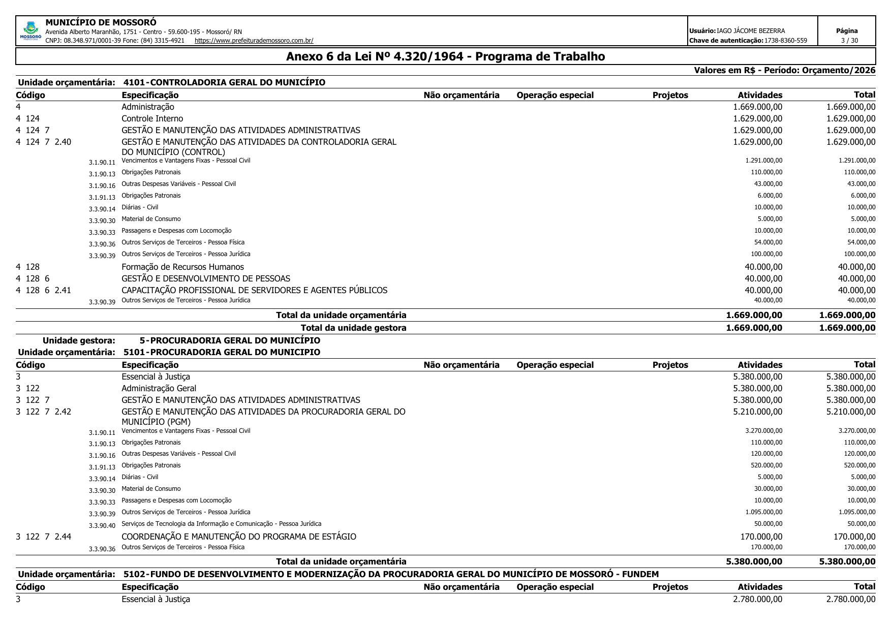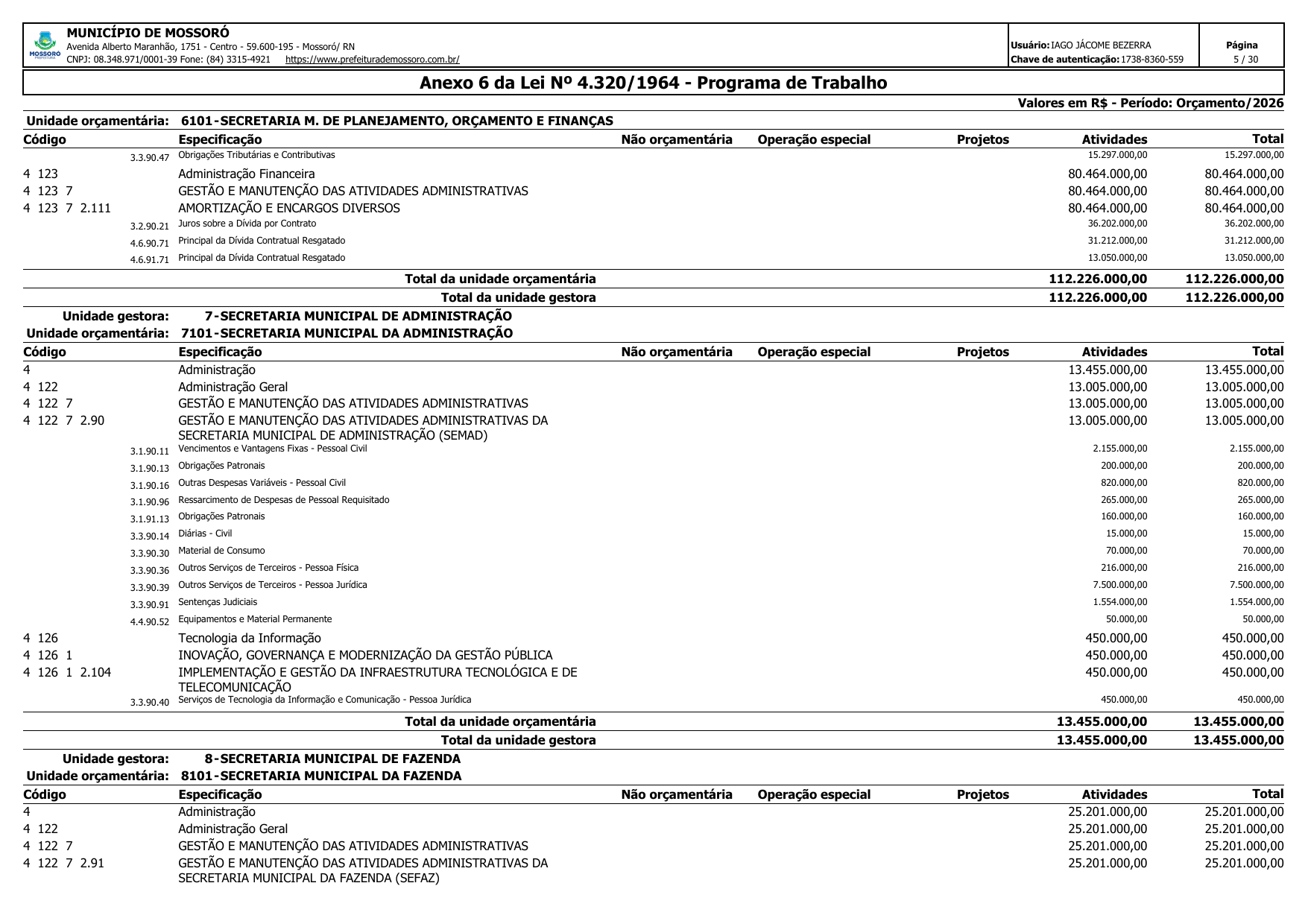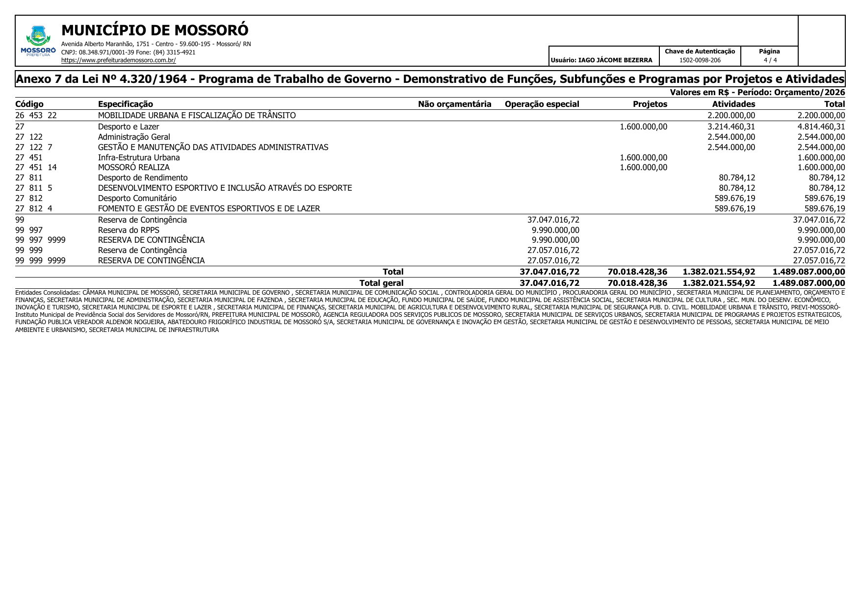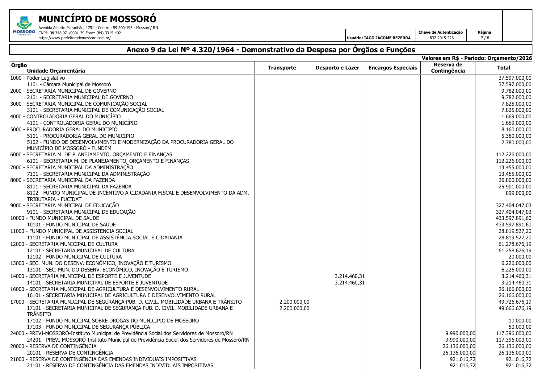 Estima as receitas e fixa as despesas do Município de Mossoró para o exercício financeiro de 2026 e dá outras providências