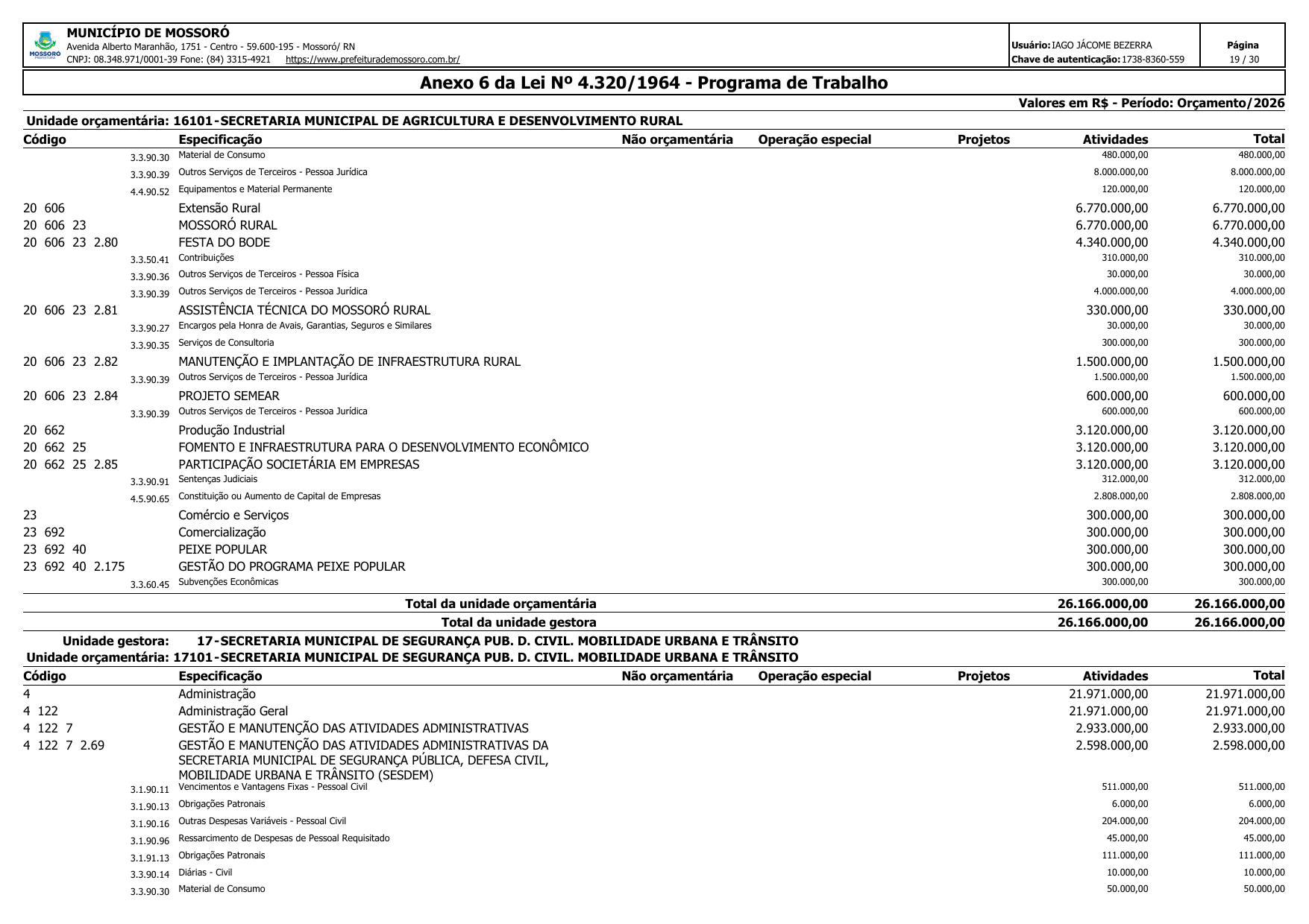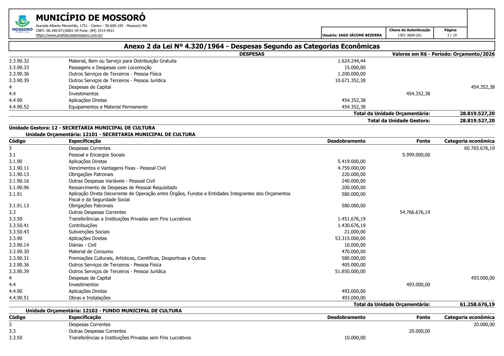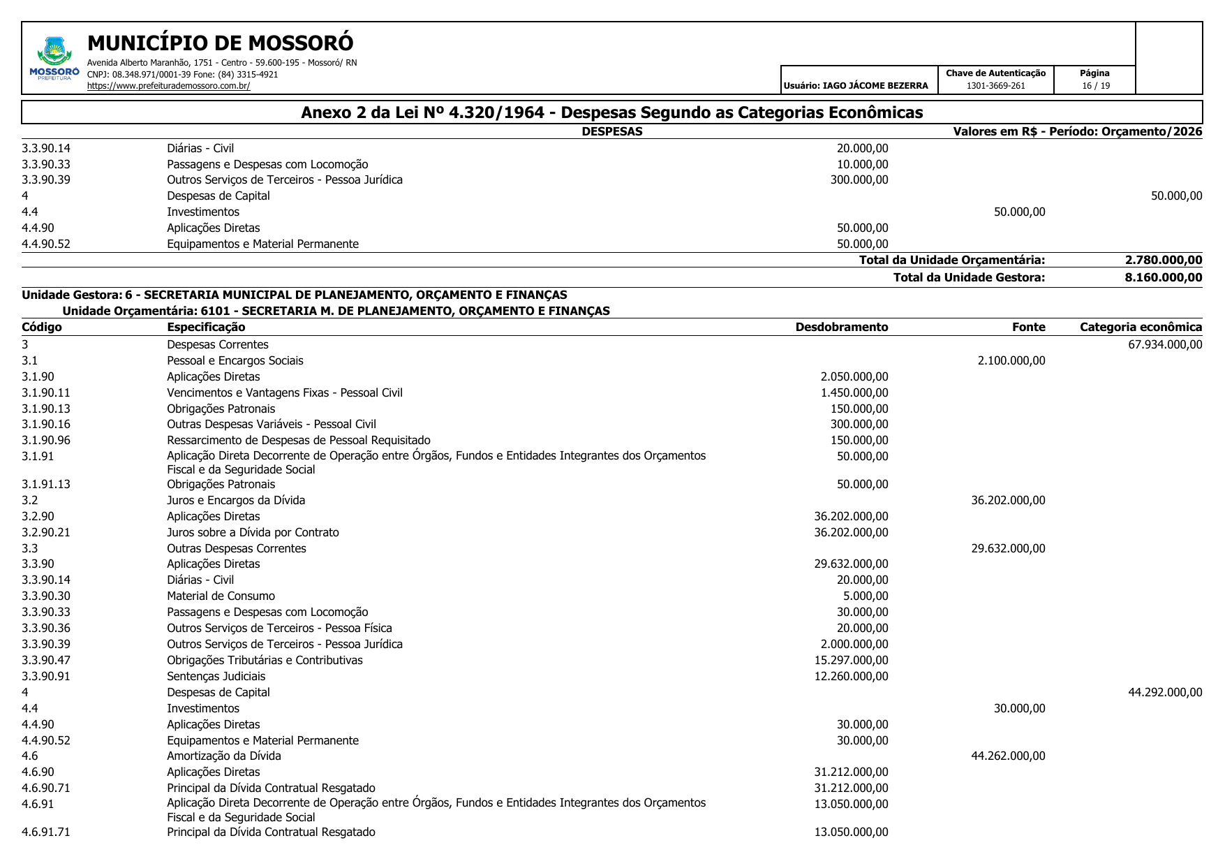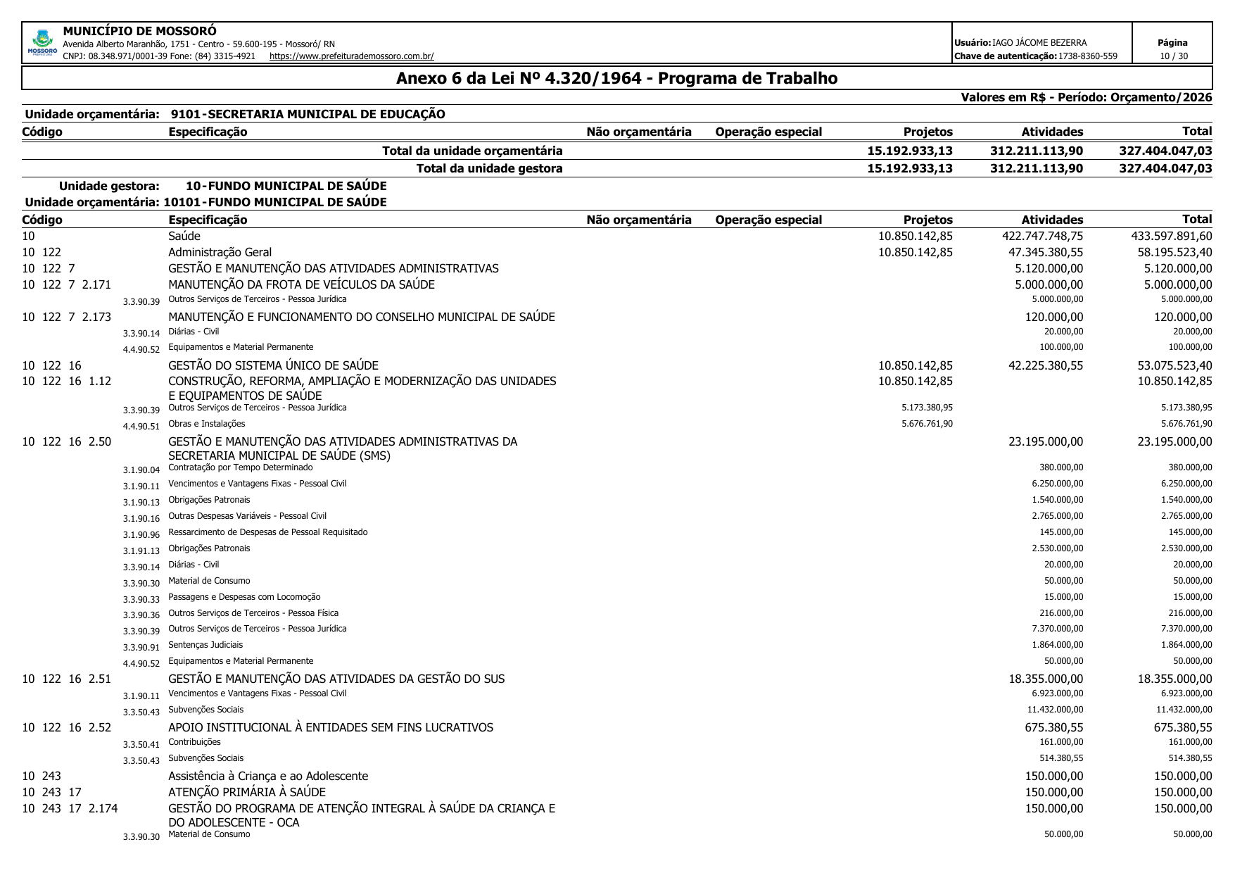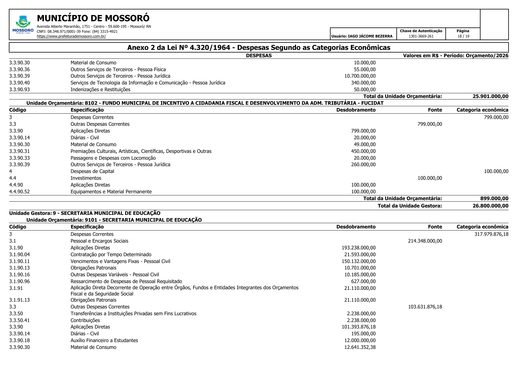 Estima as receitas e fixa as despesas do Município de Mossoró para o exercício financeiro de 2026 e dá outras providências