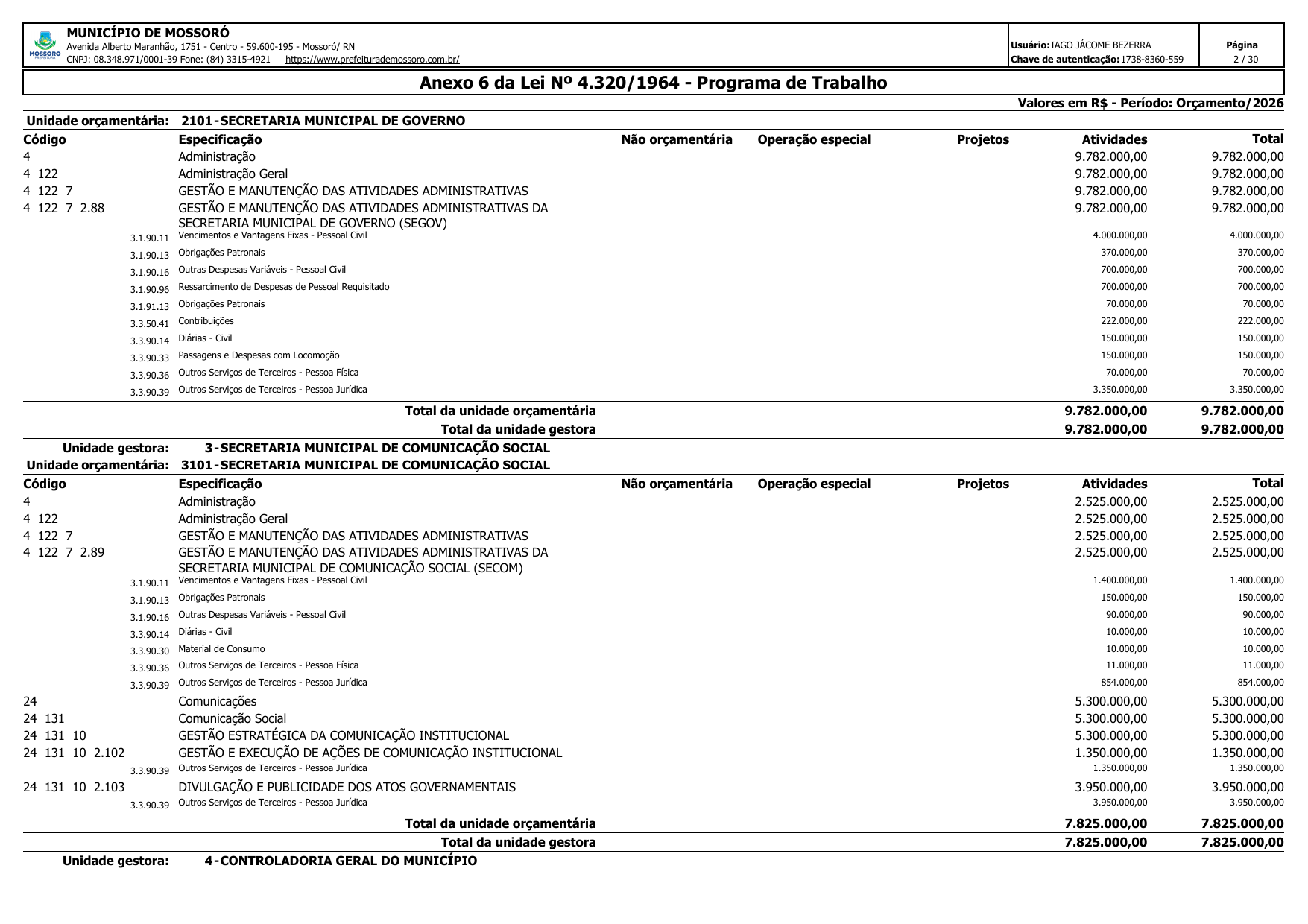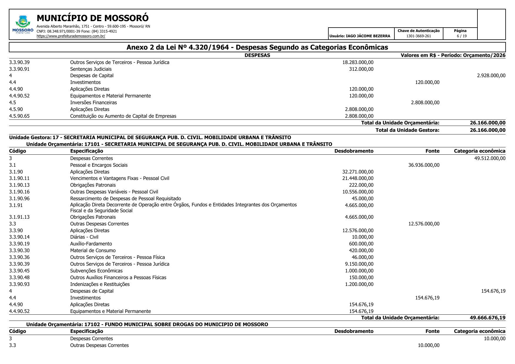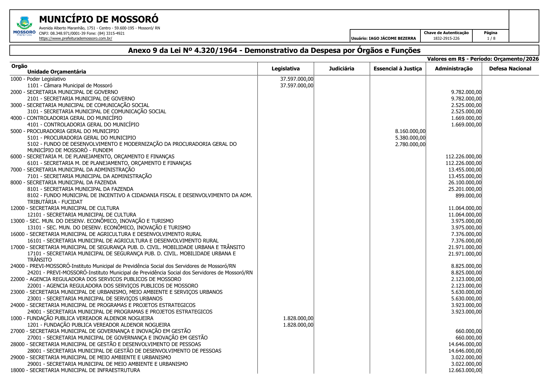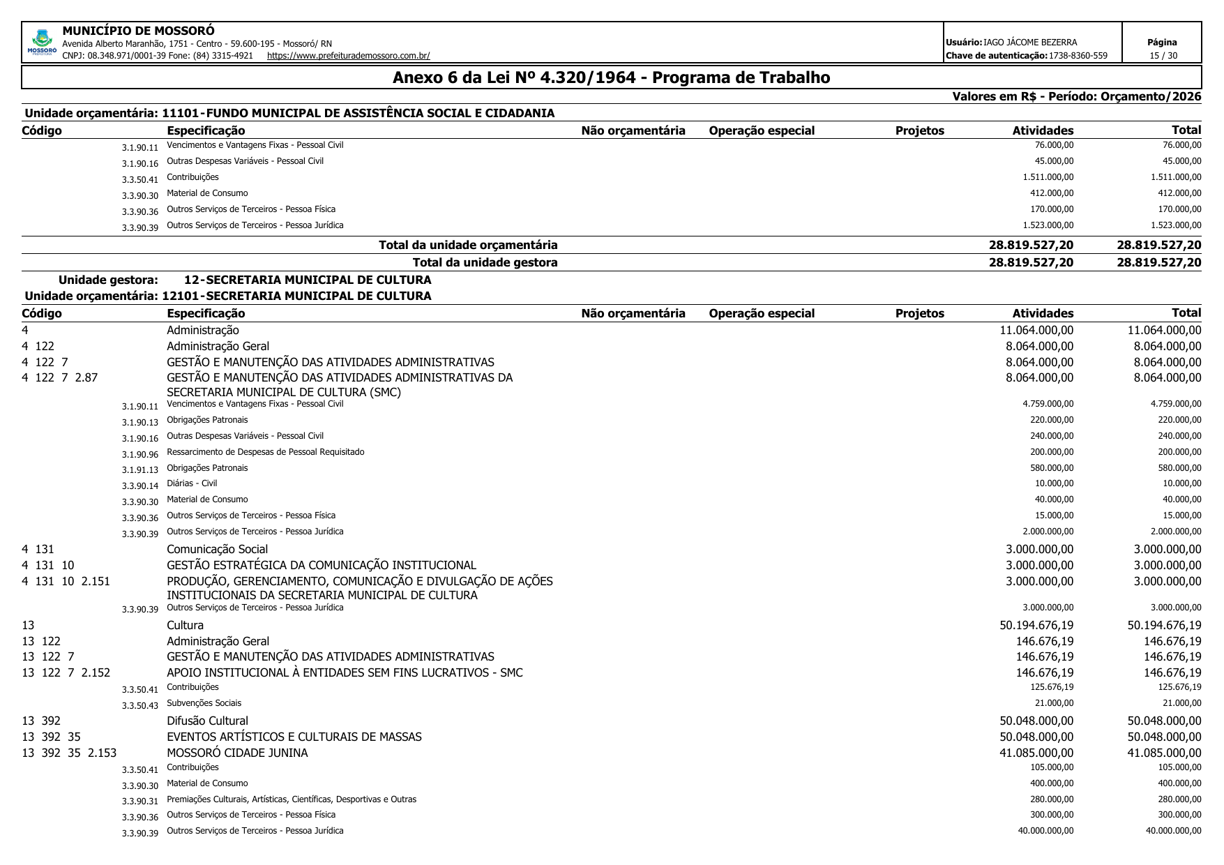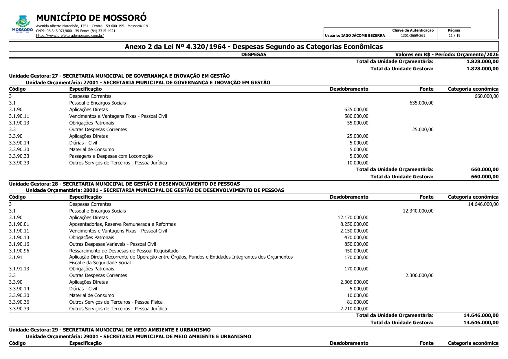 Estima as receitas e fixa as despesas do Município de Mossoró para o exercício financeiro de 2026 e dá outras providências