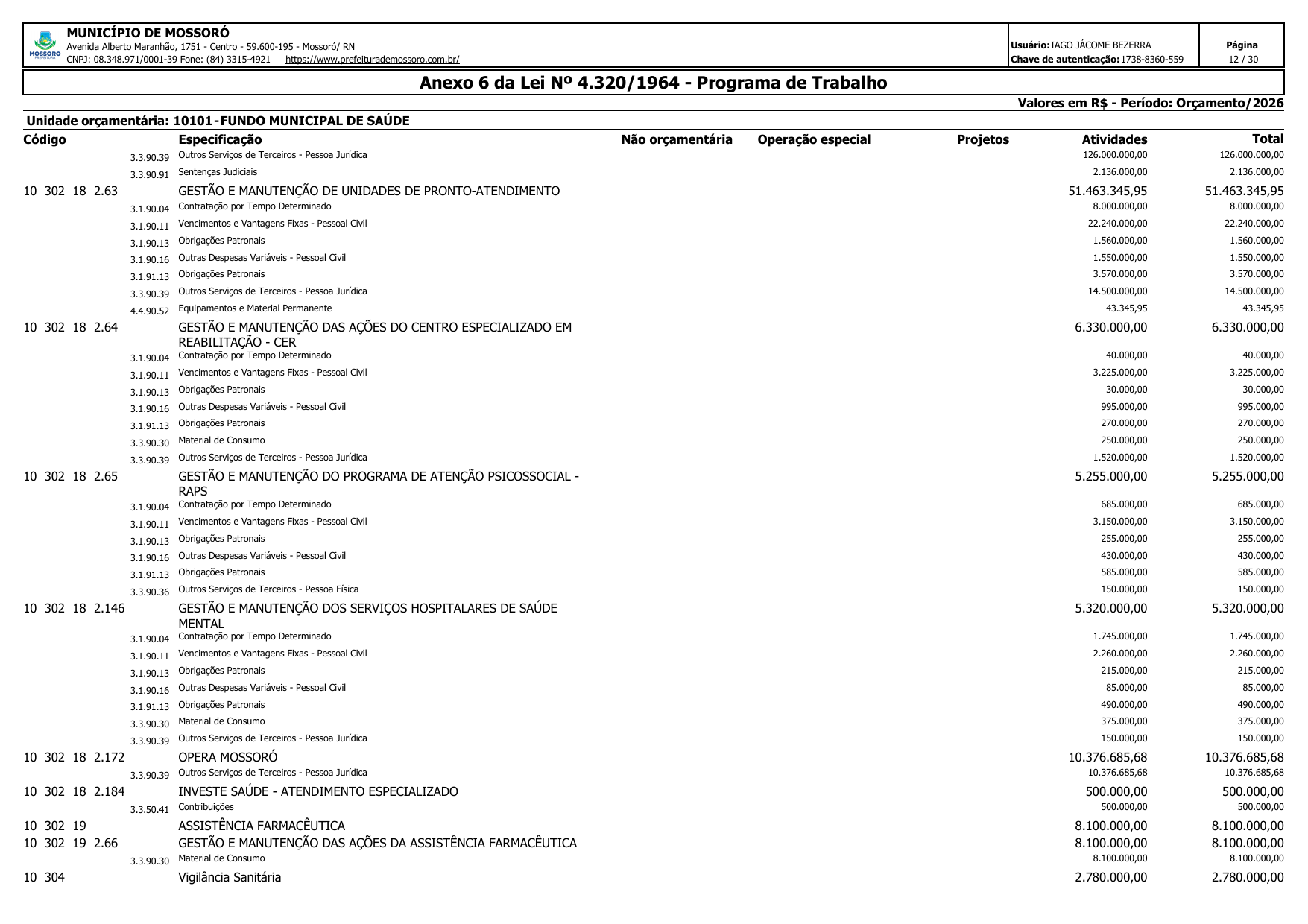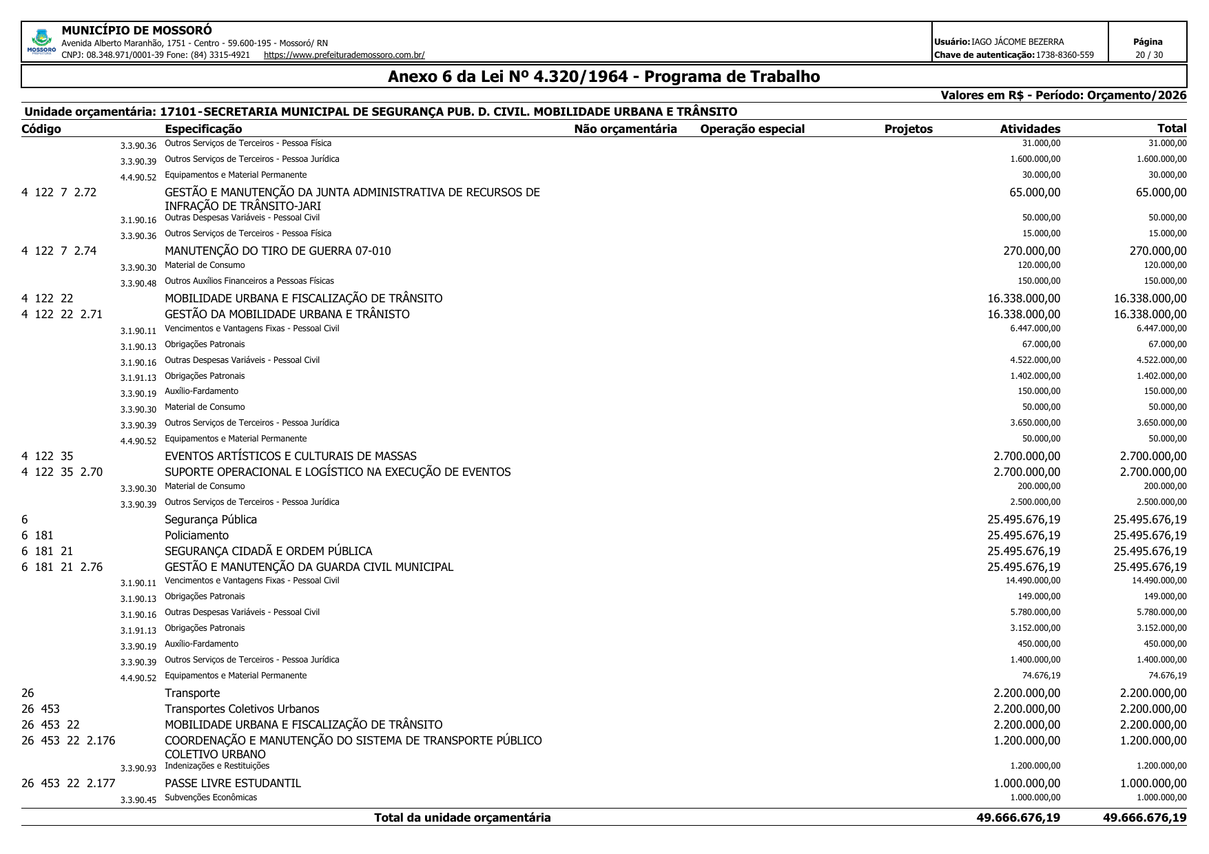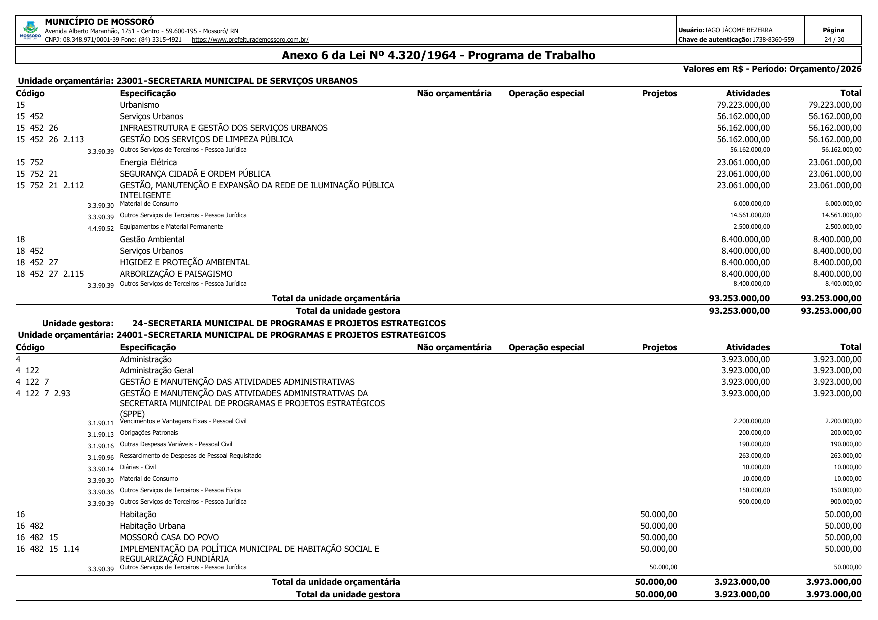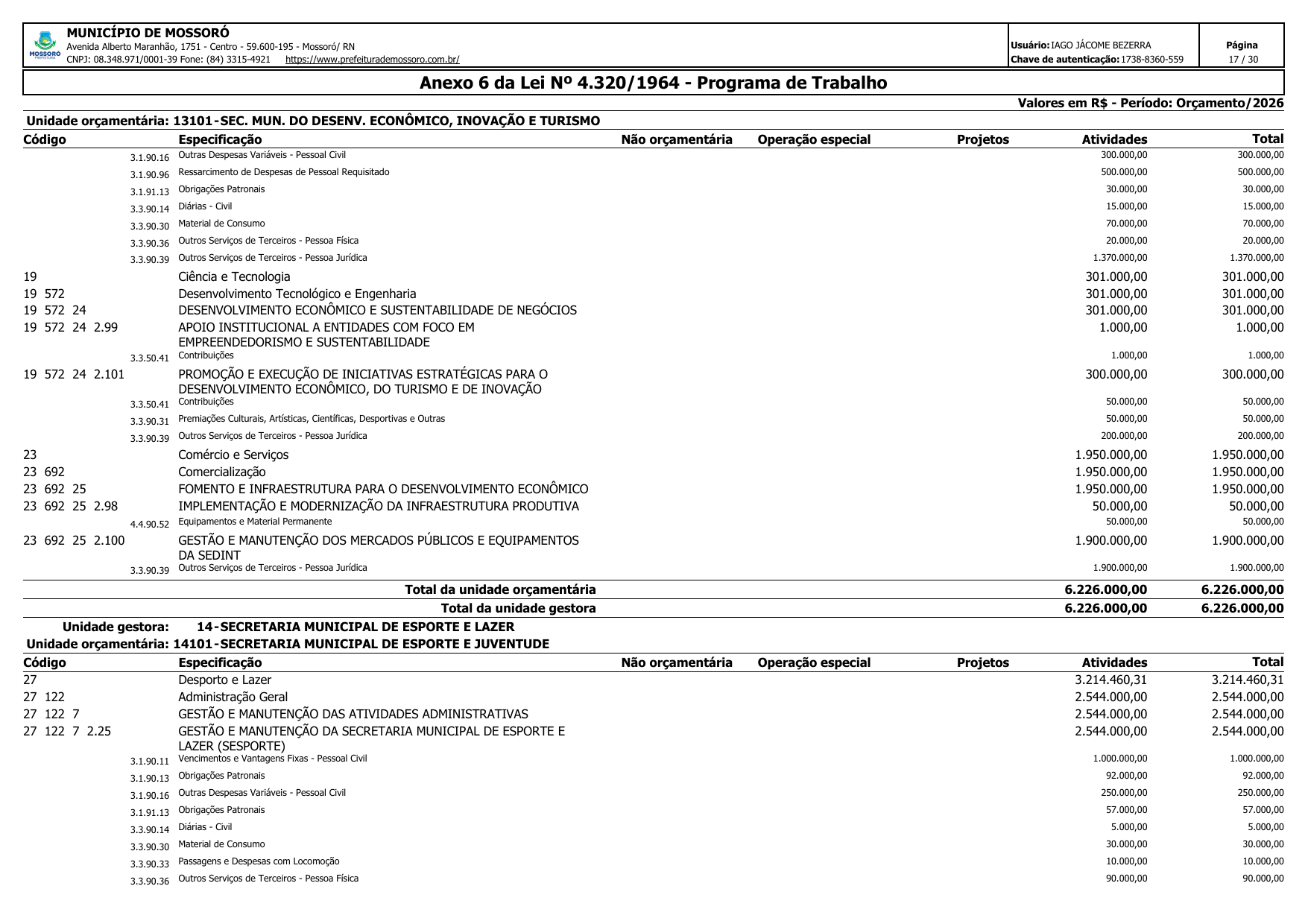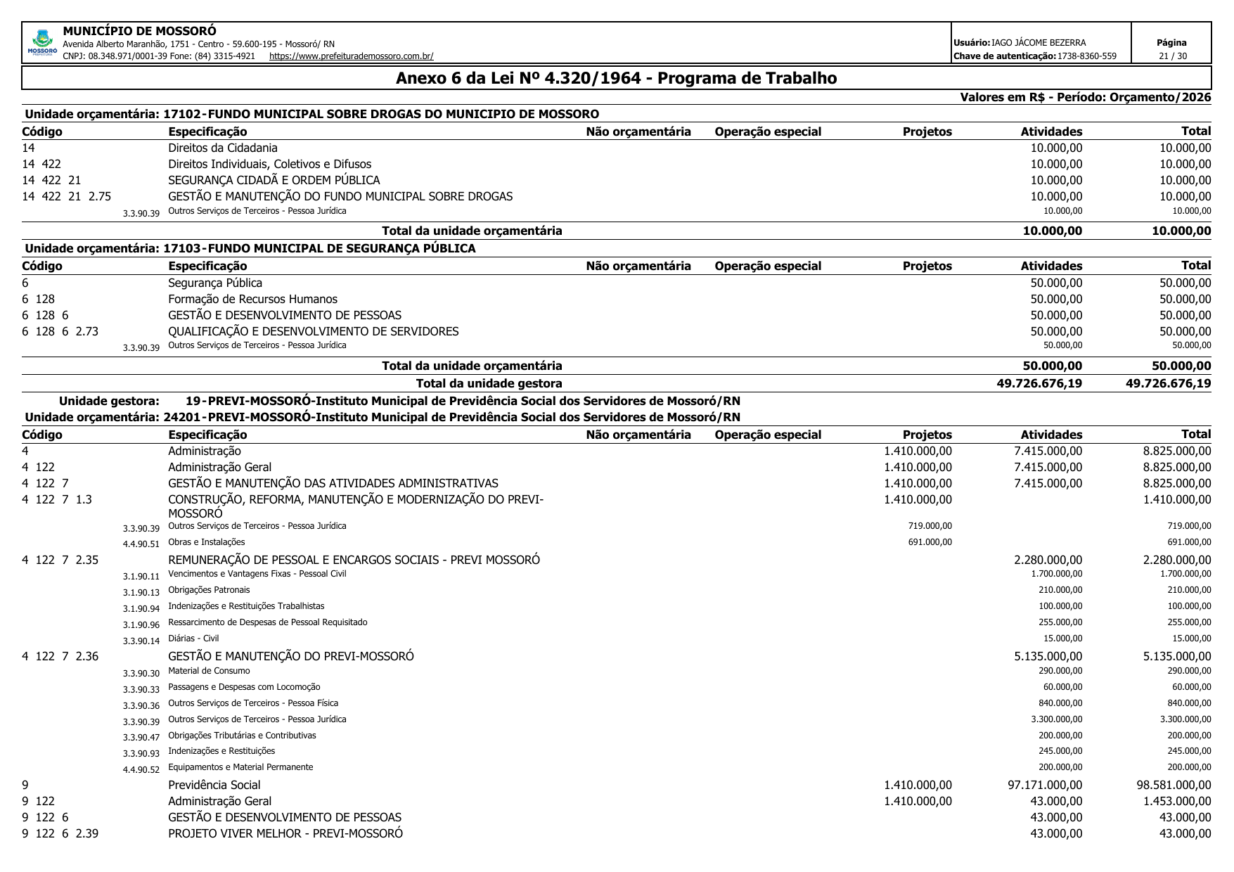 Estima as receitas e fixa as despesas do Município de Mossoró para o exercício financeiro de 2026 e dá outras providências
