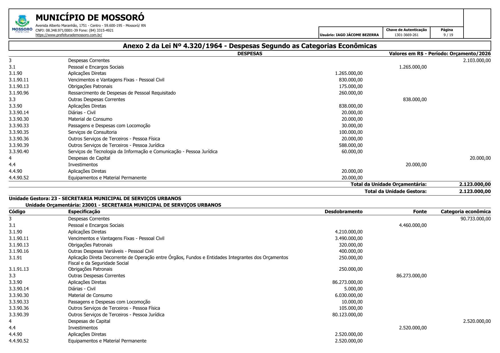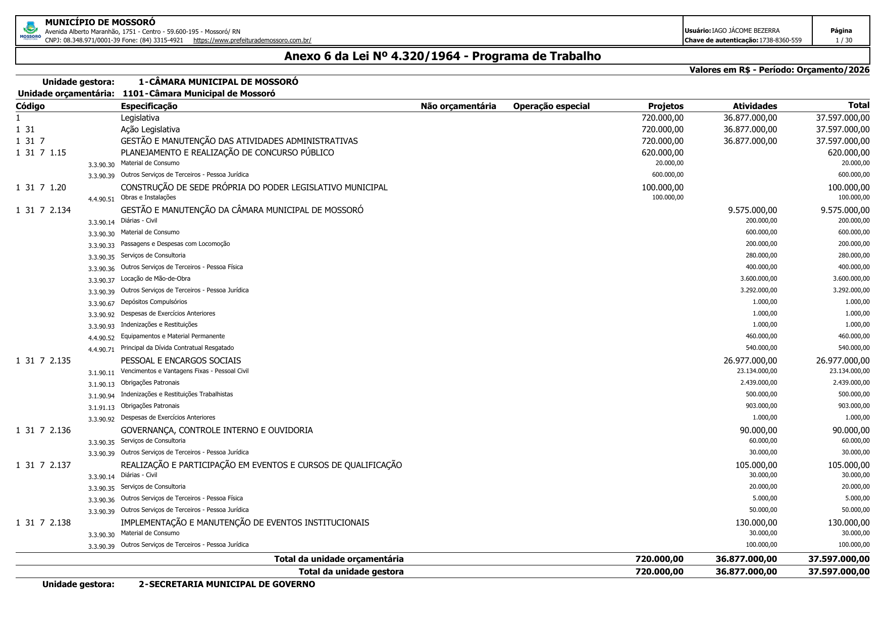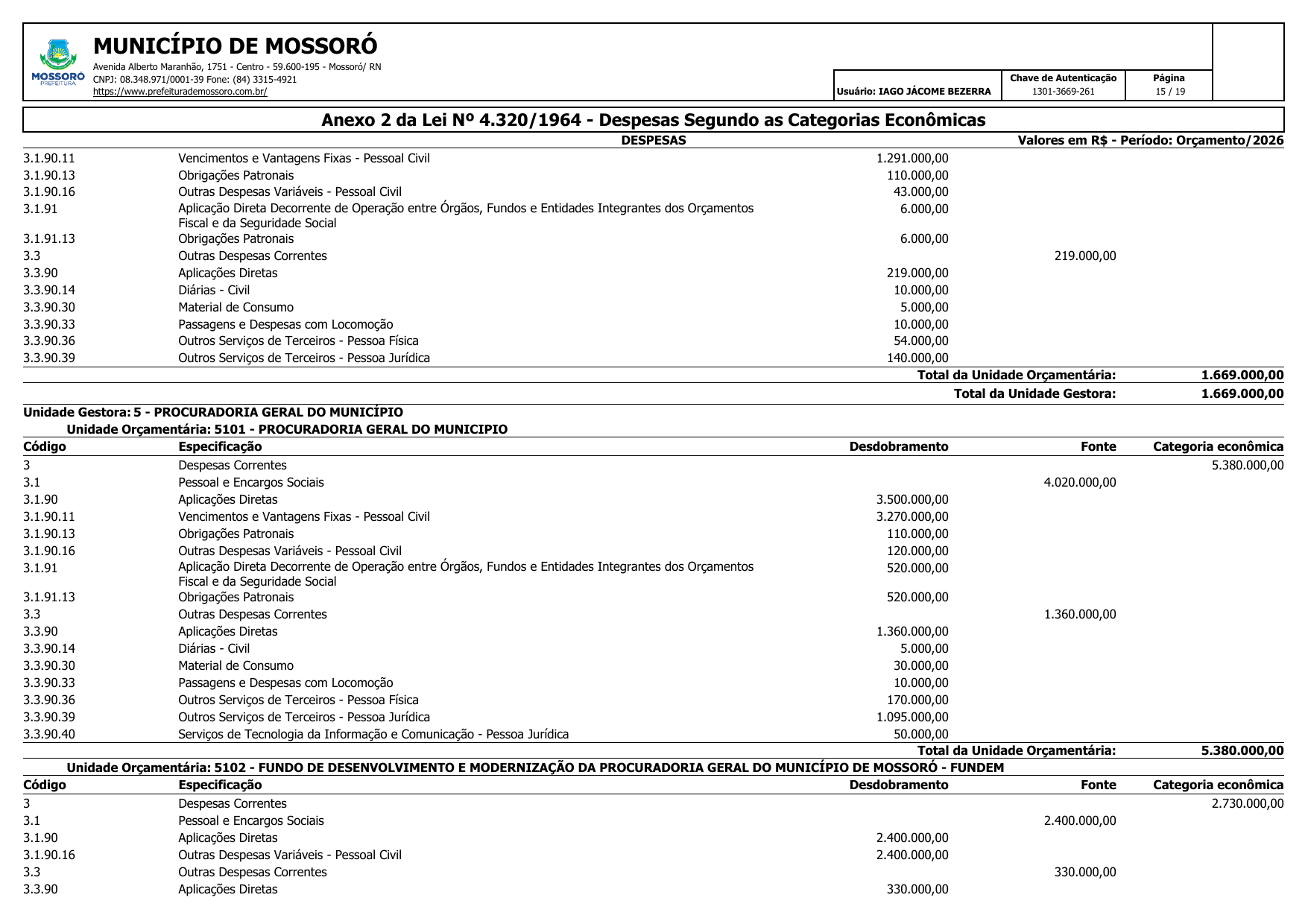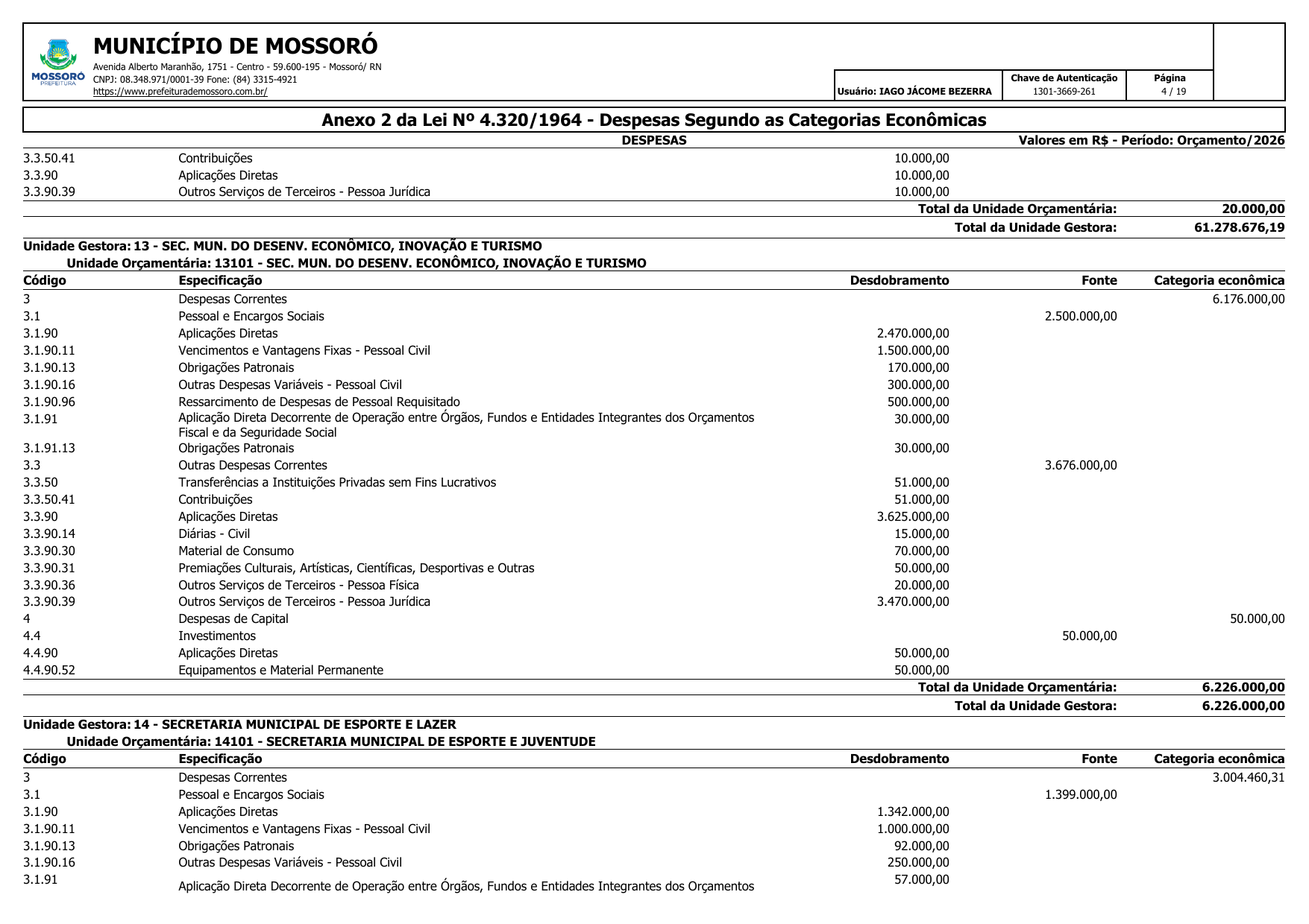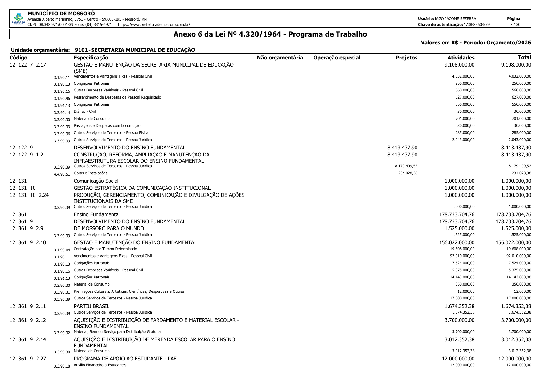 Estima as receitas e fixa as despesas do Município de Mossoró para o exercício financeiro de 2026 e dá outras providências
