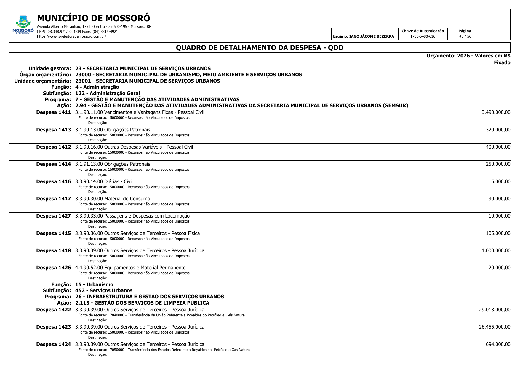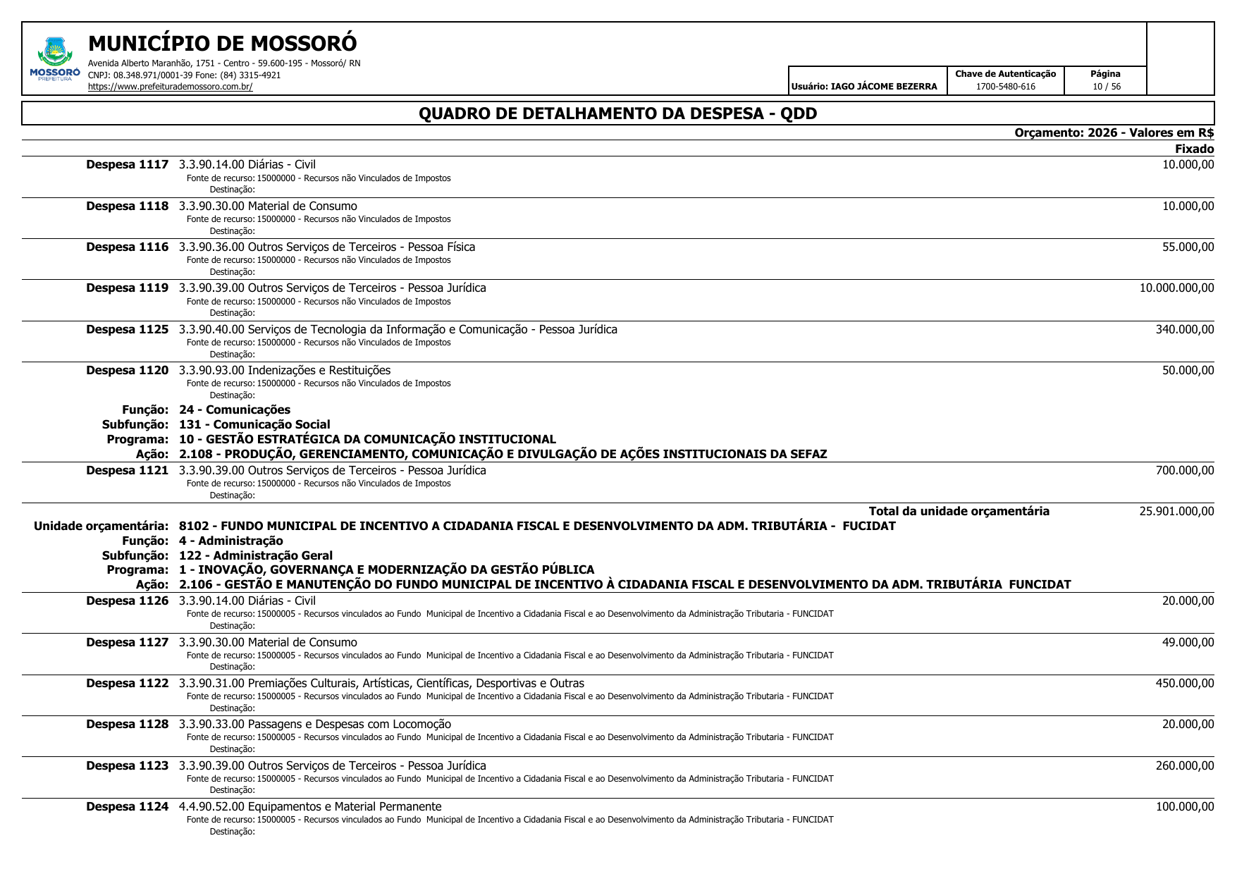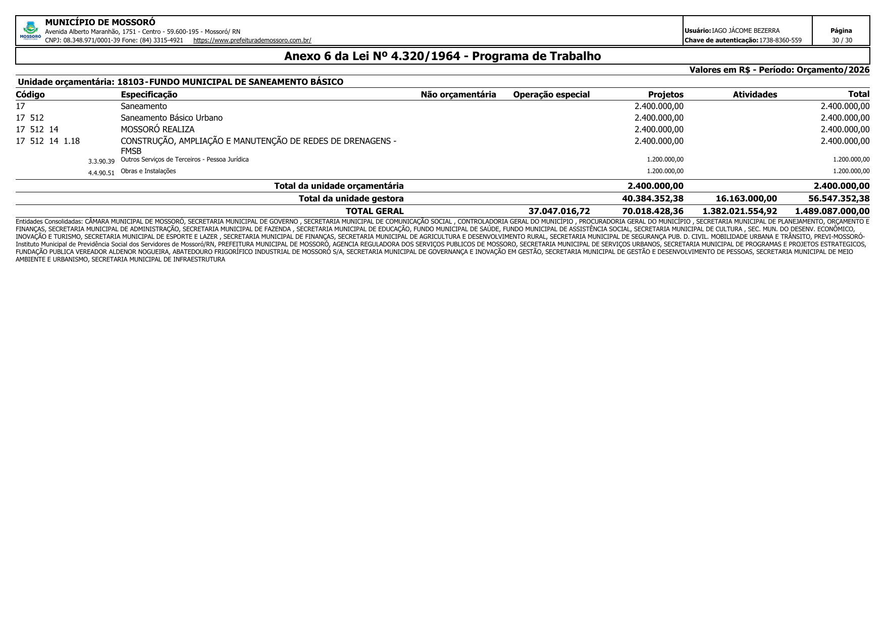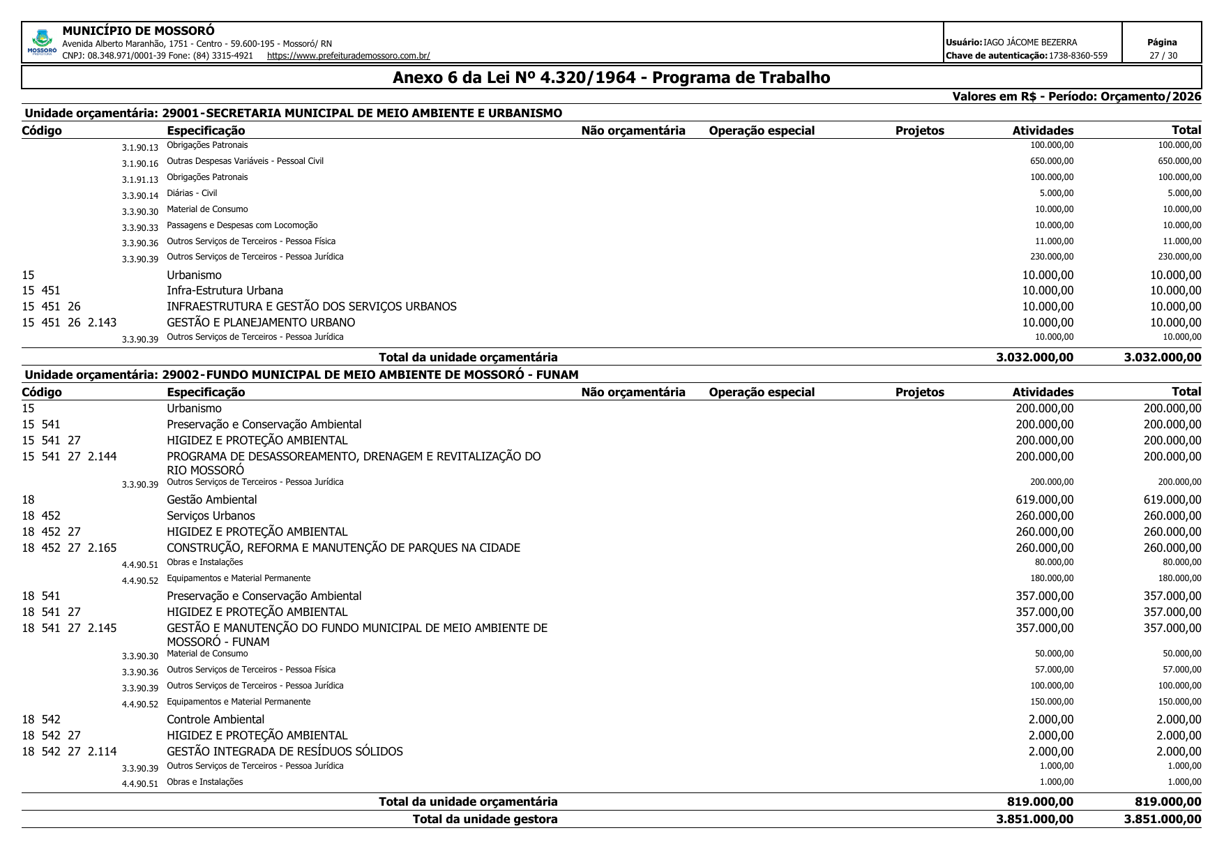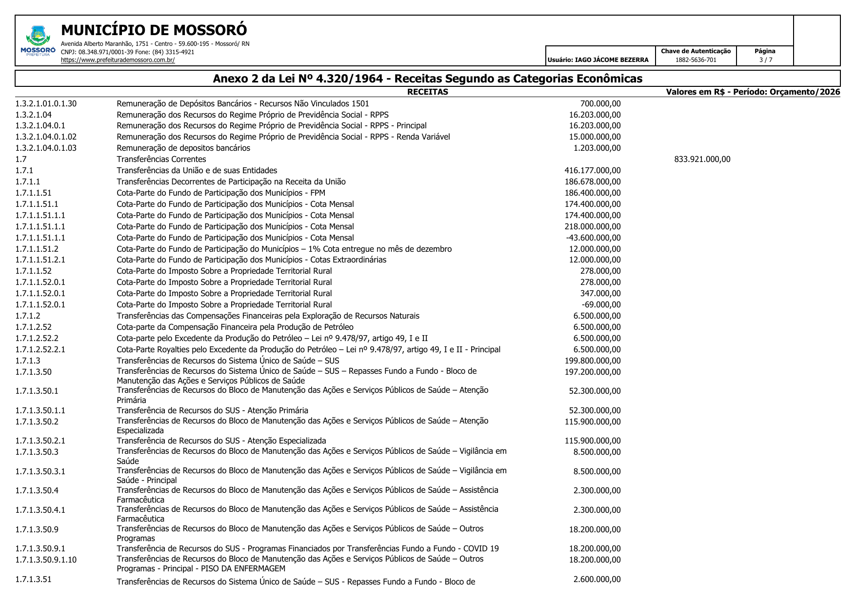 Estima as receitas e fixa as despesas do Município de Mossoró para o exercício financeiro de 2026 e dá outras providências