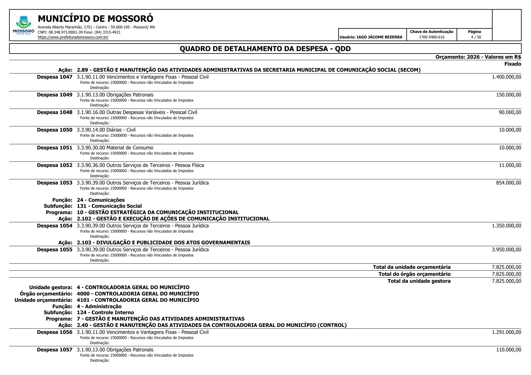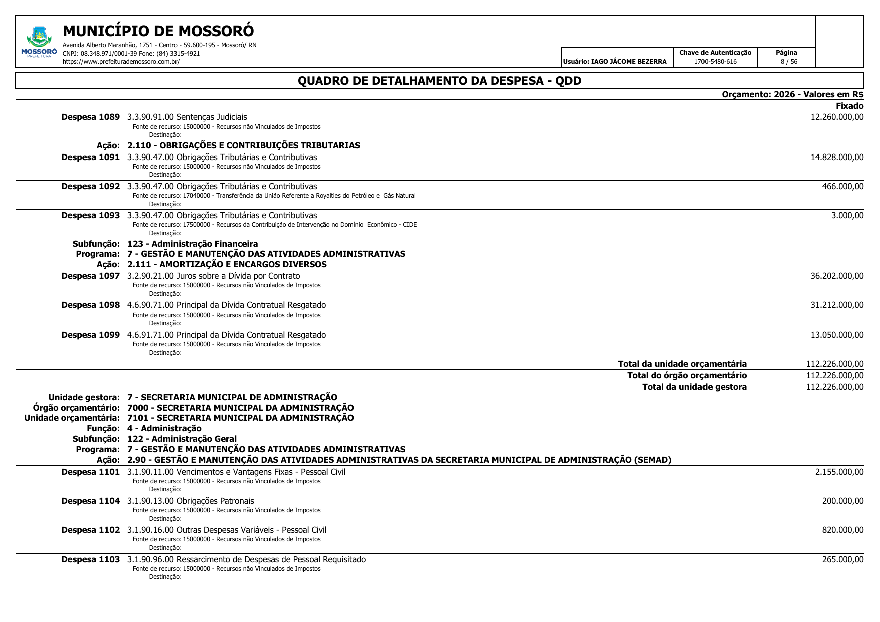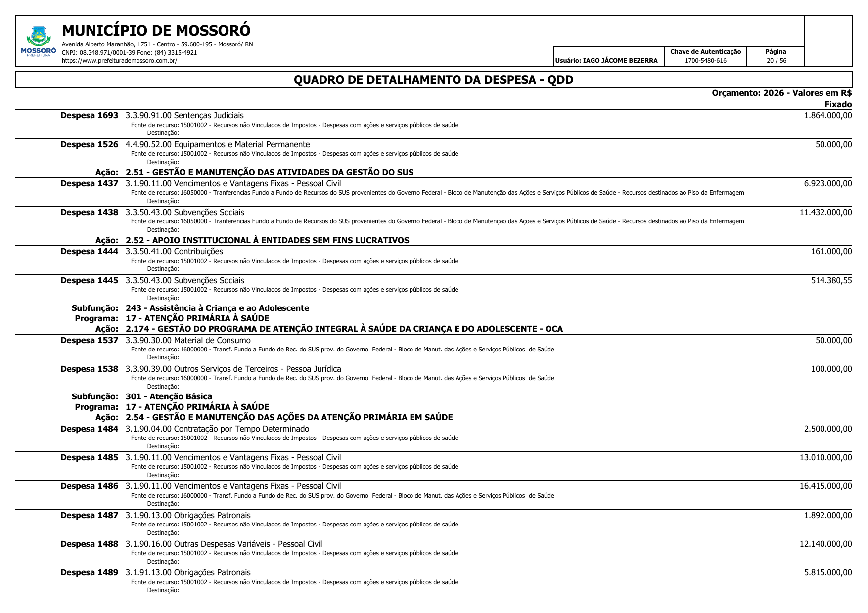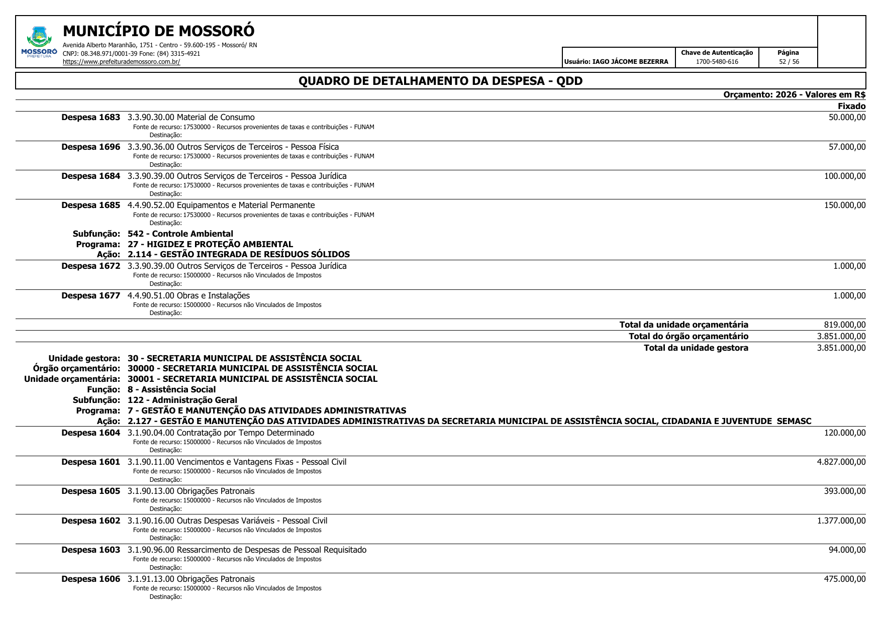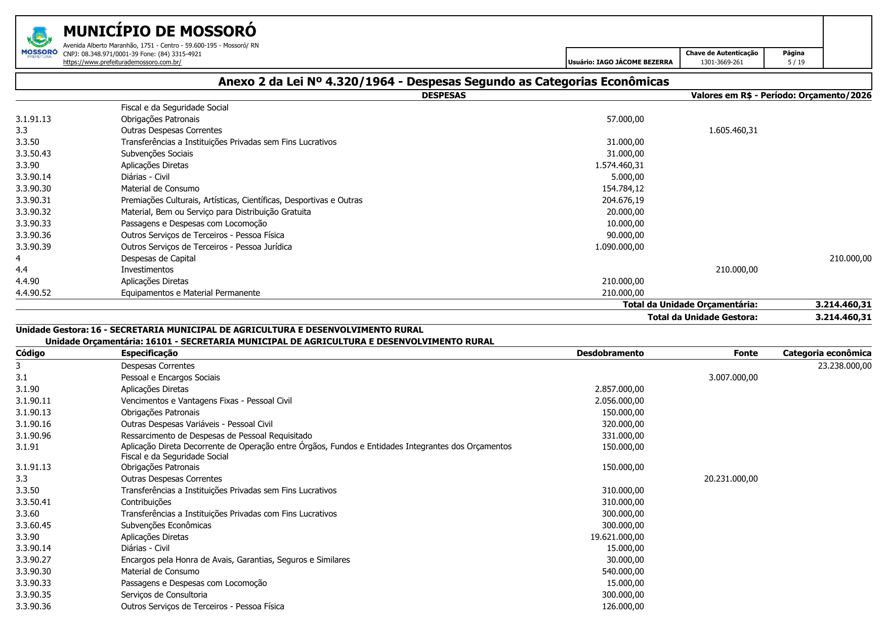 Estima as receitas e fixa as despesas do Município de Mossoró para o exercício financeiro de 2026 e dá outras providências