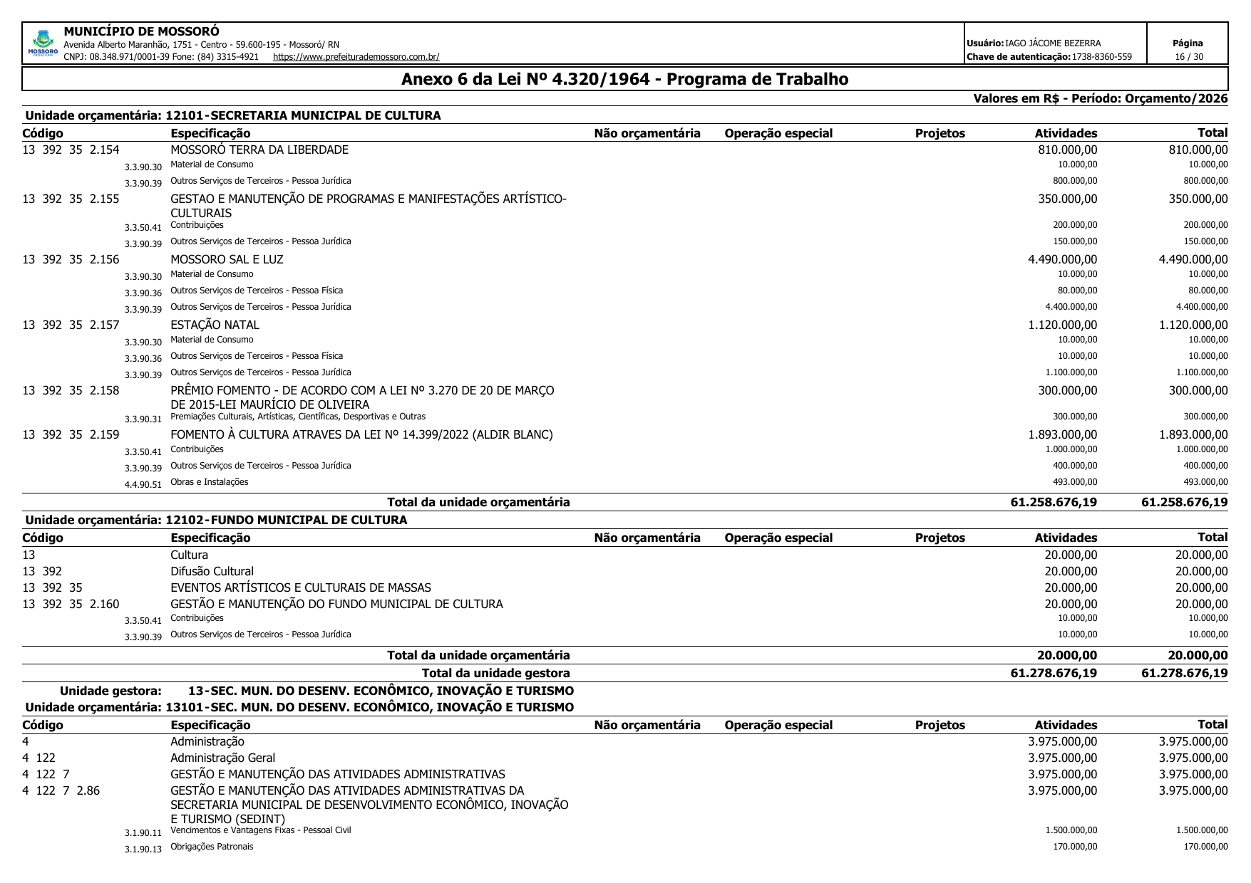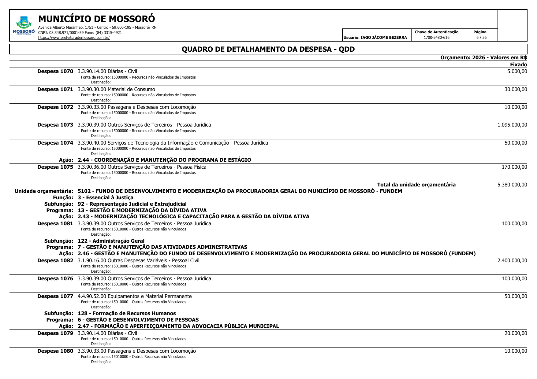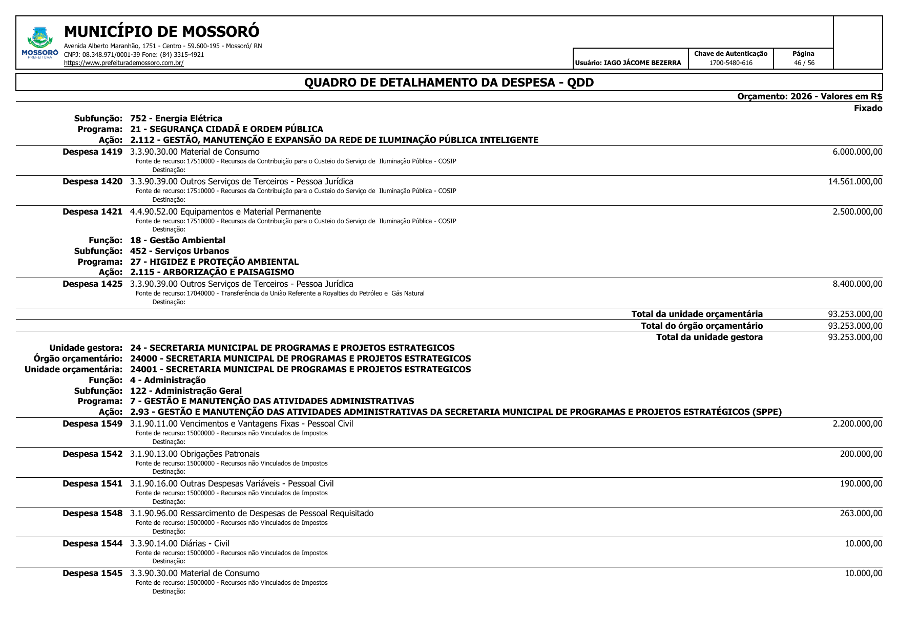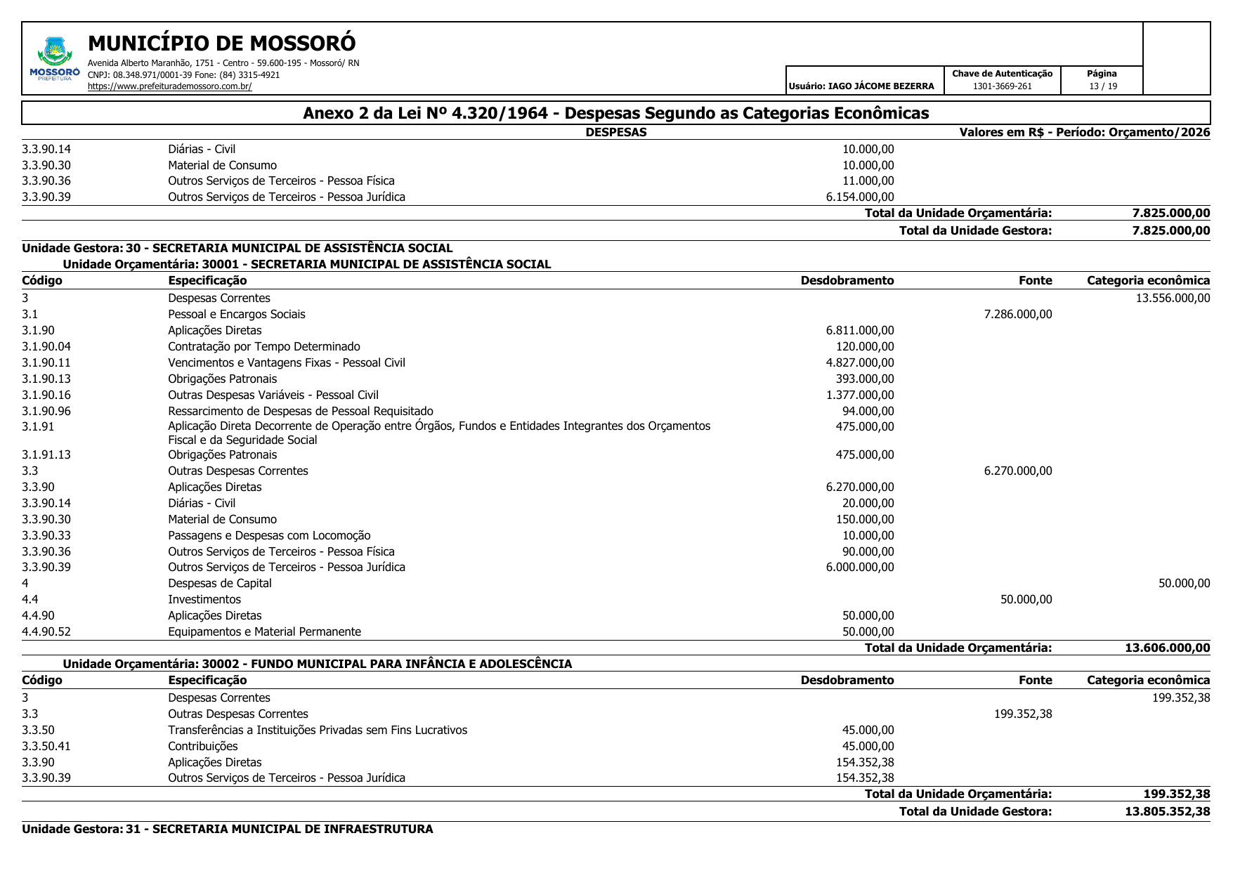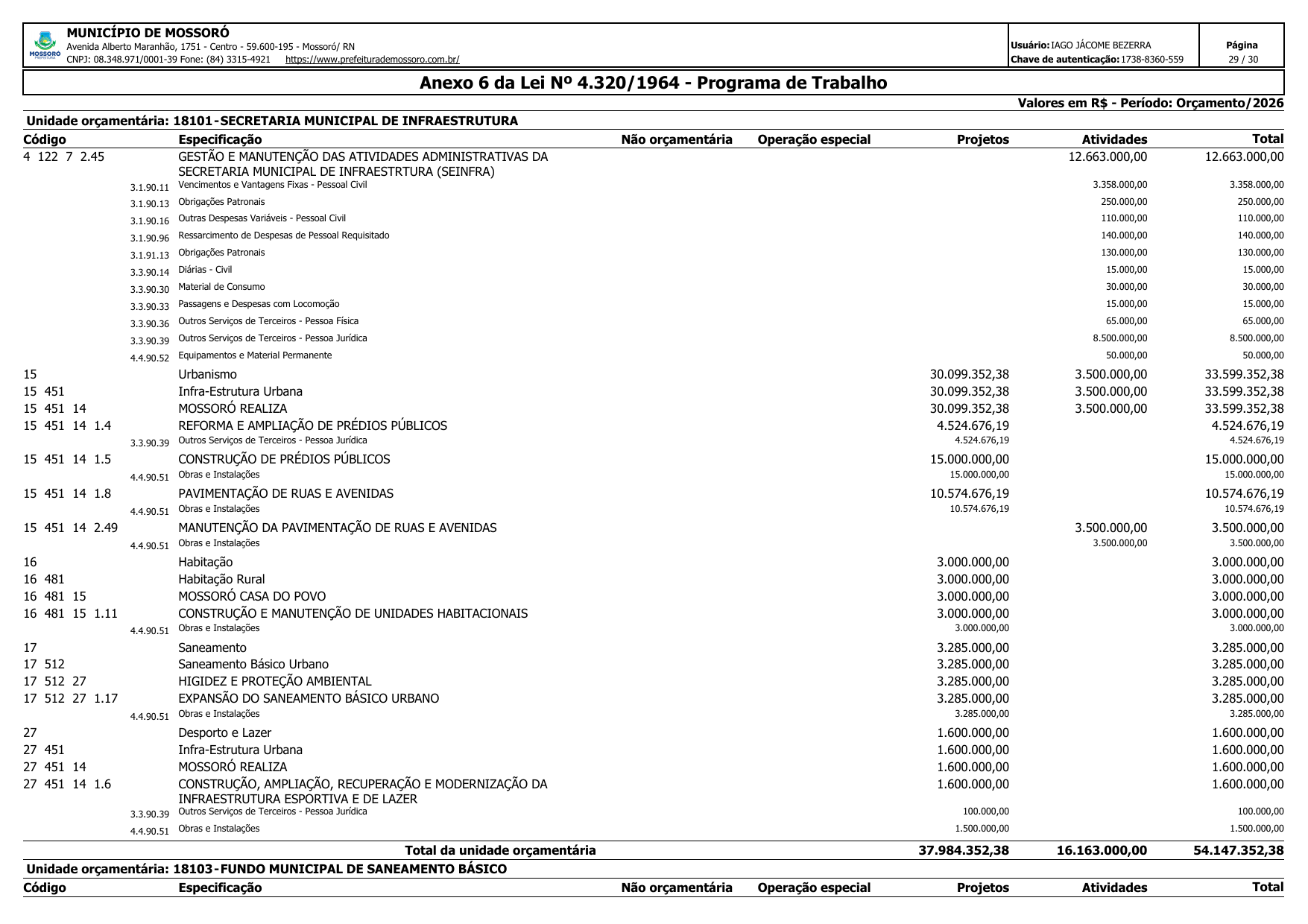 Estima as receitas e fixa as despesas do Município de Mossoró para o exercício financeiro de 2026 e dá outras providências