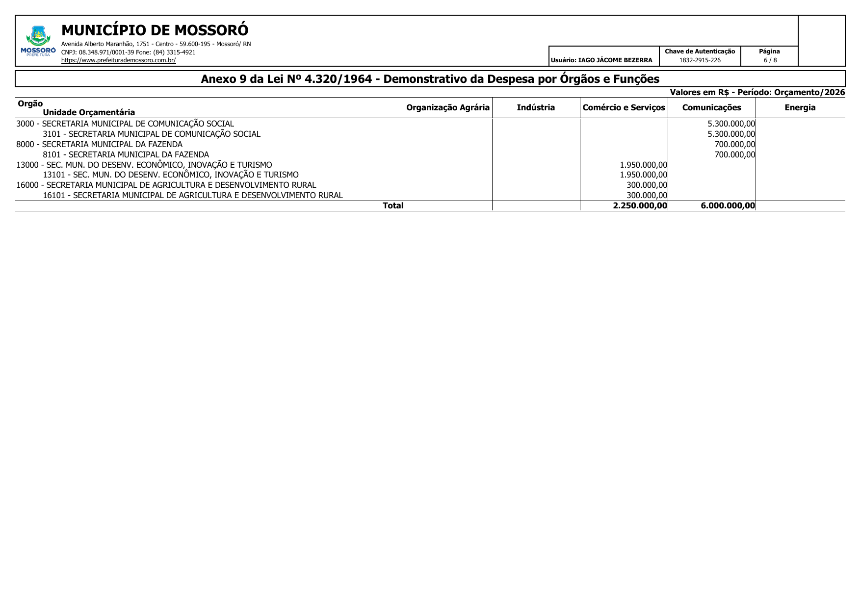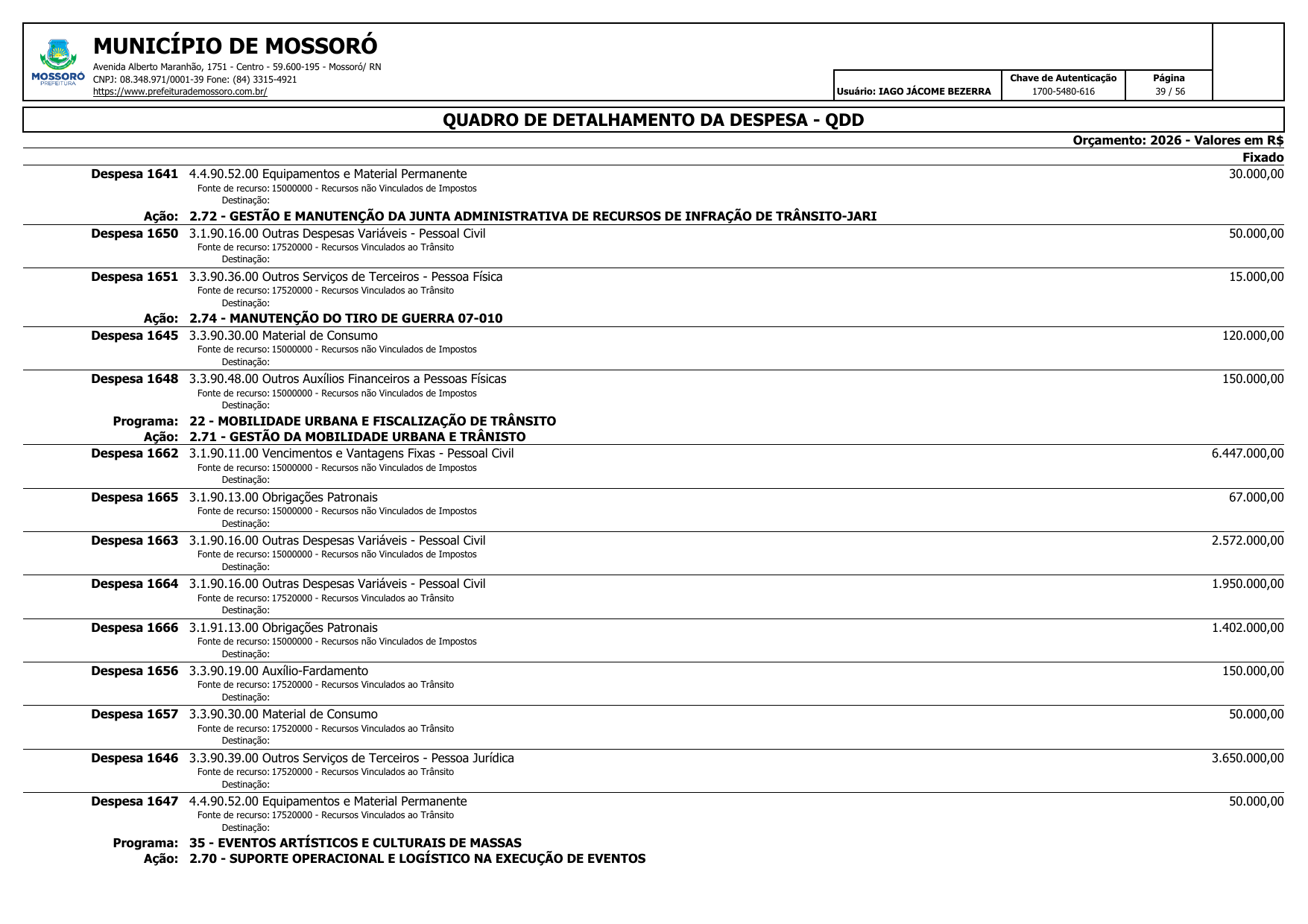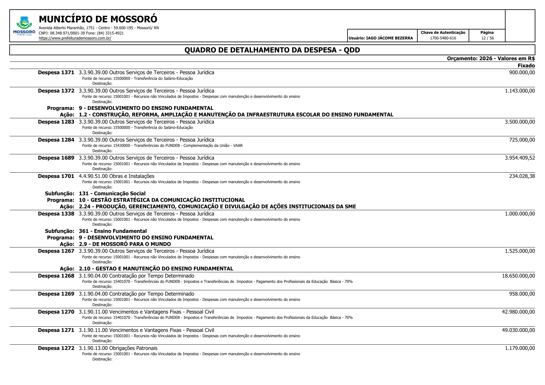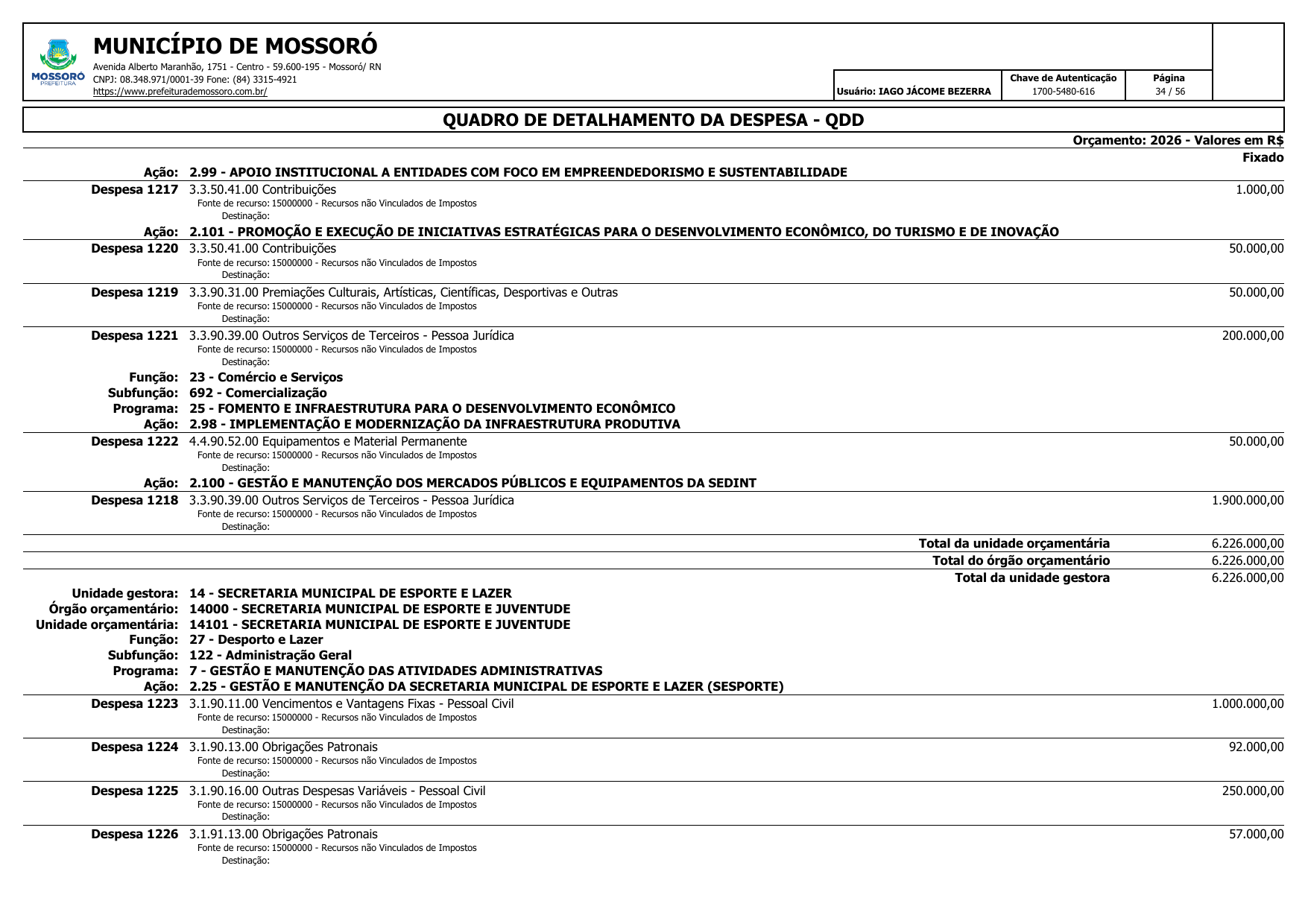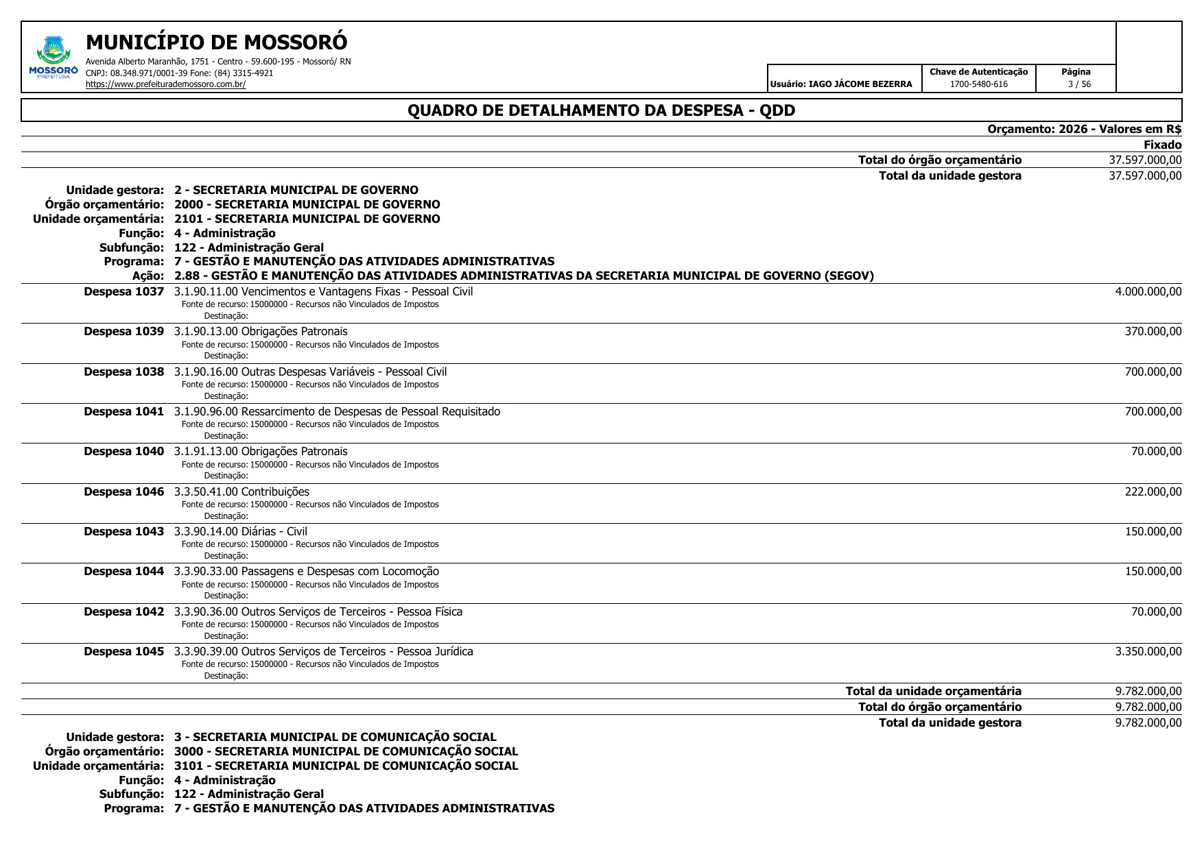 Estima as receitas e fixa as despesas do Município de Mossoró para o exercício financeiro de 2026 e dá outras providências