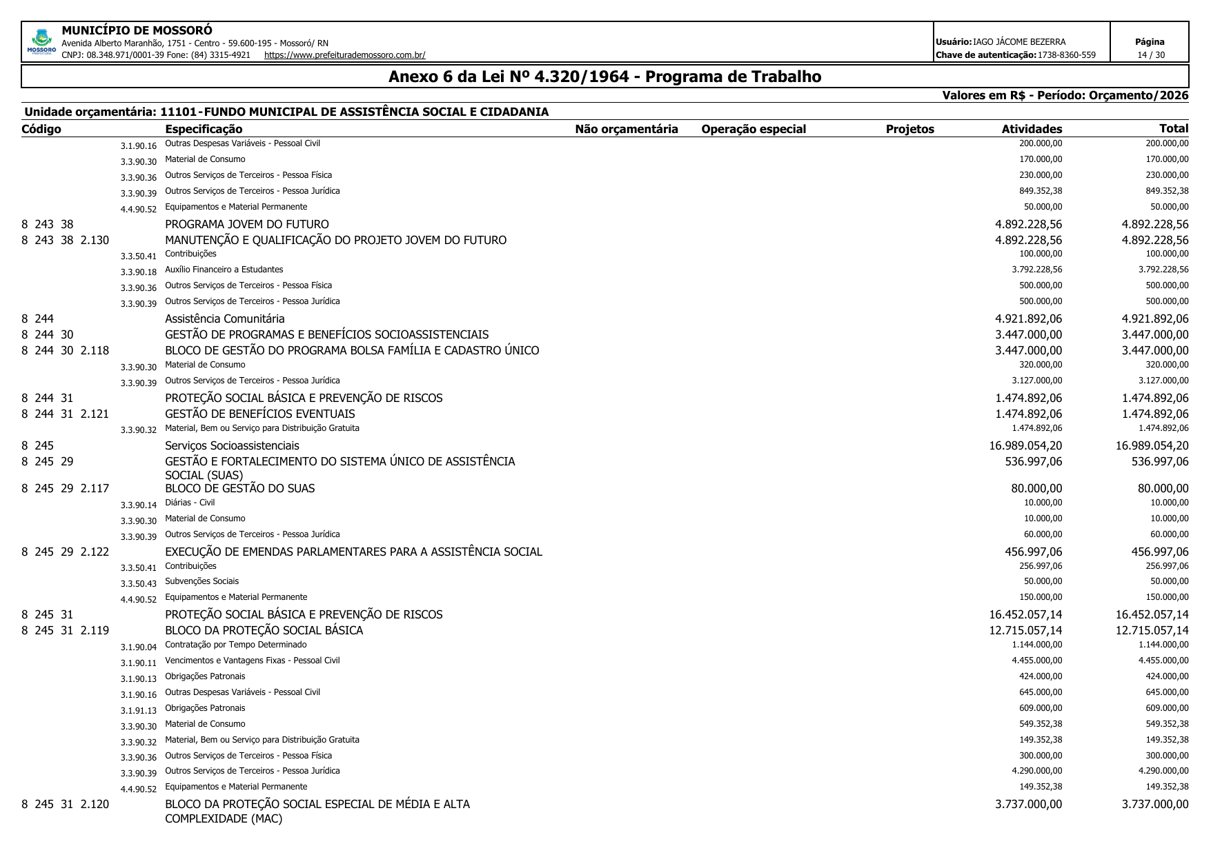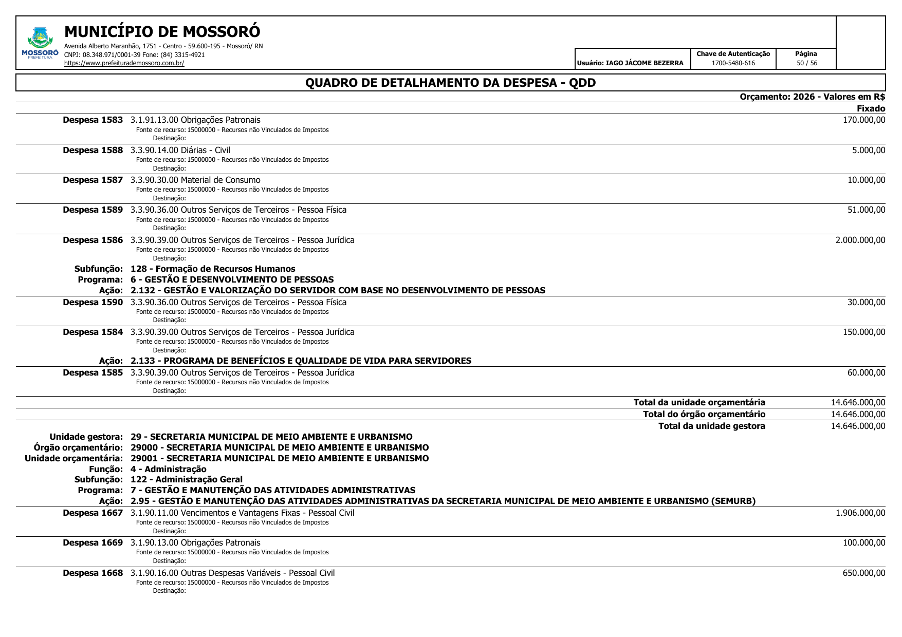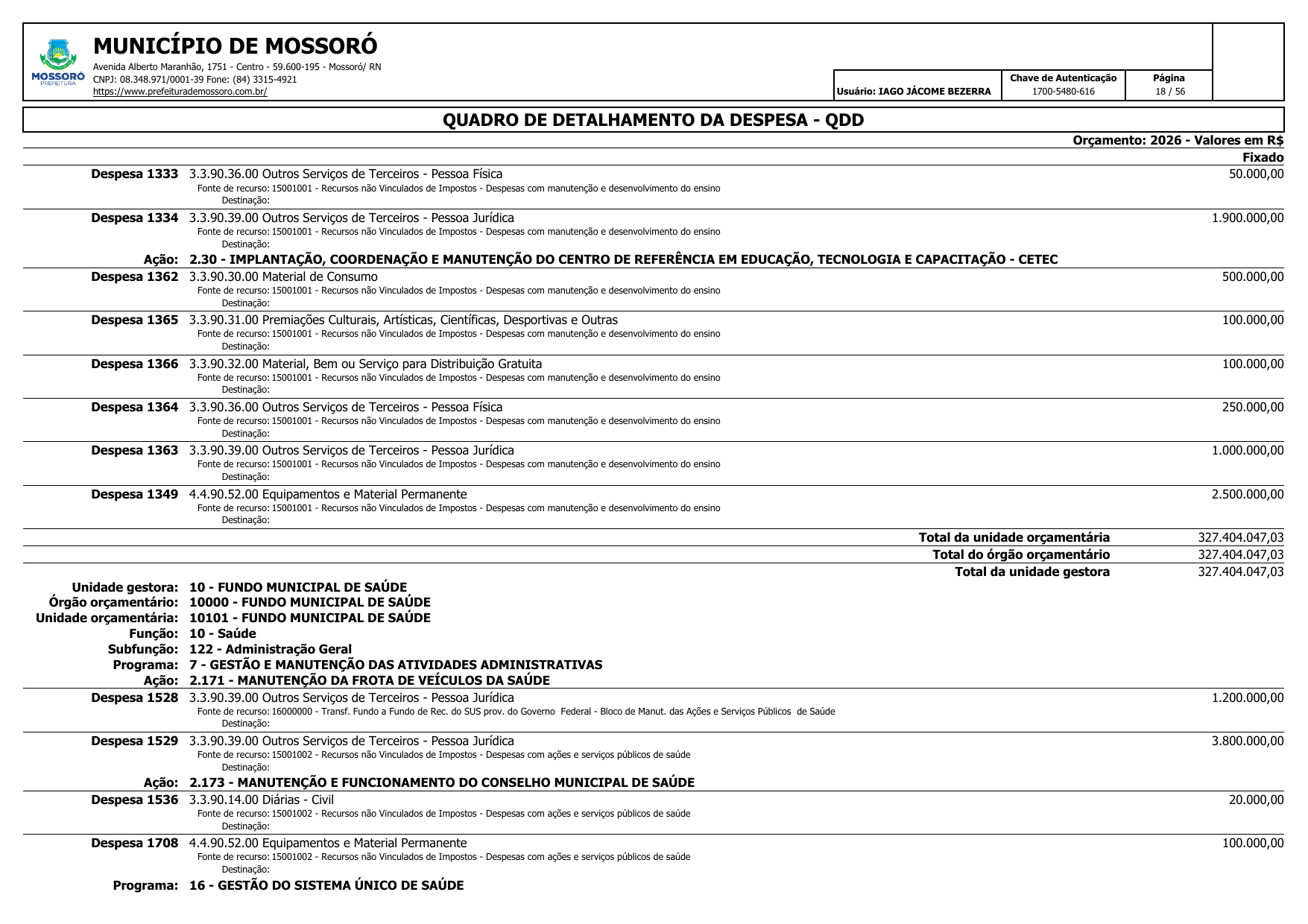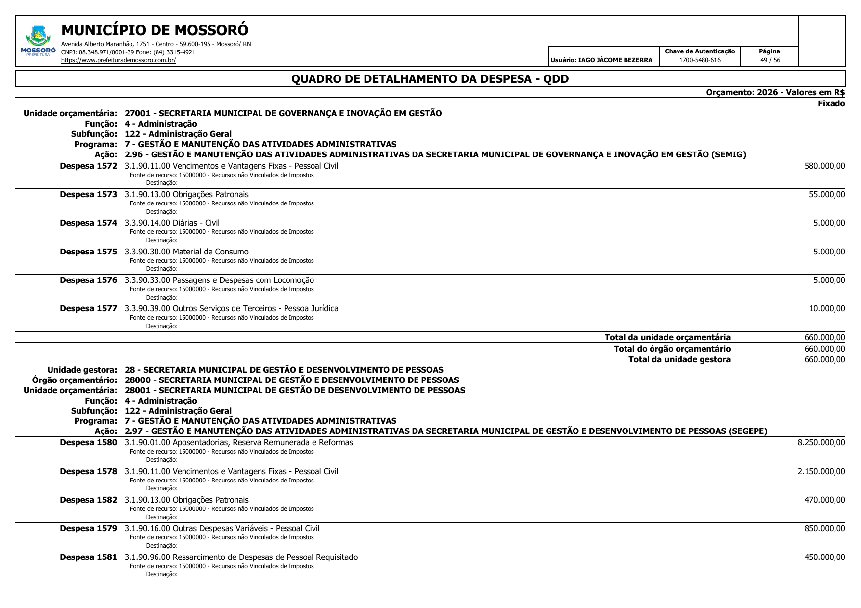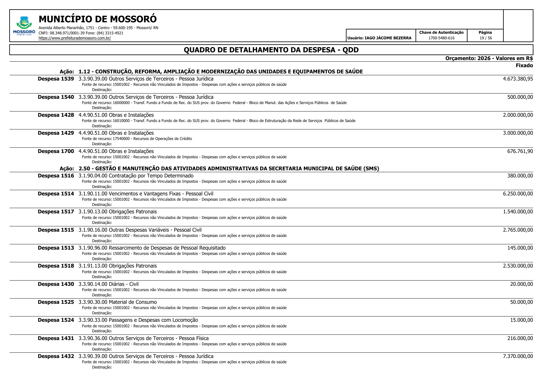 Estima as receitas e fixa as despesas do Município de Mossoró para o exercício financeiro de 2026 e dá outras providências