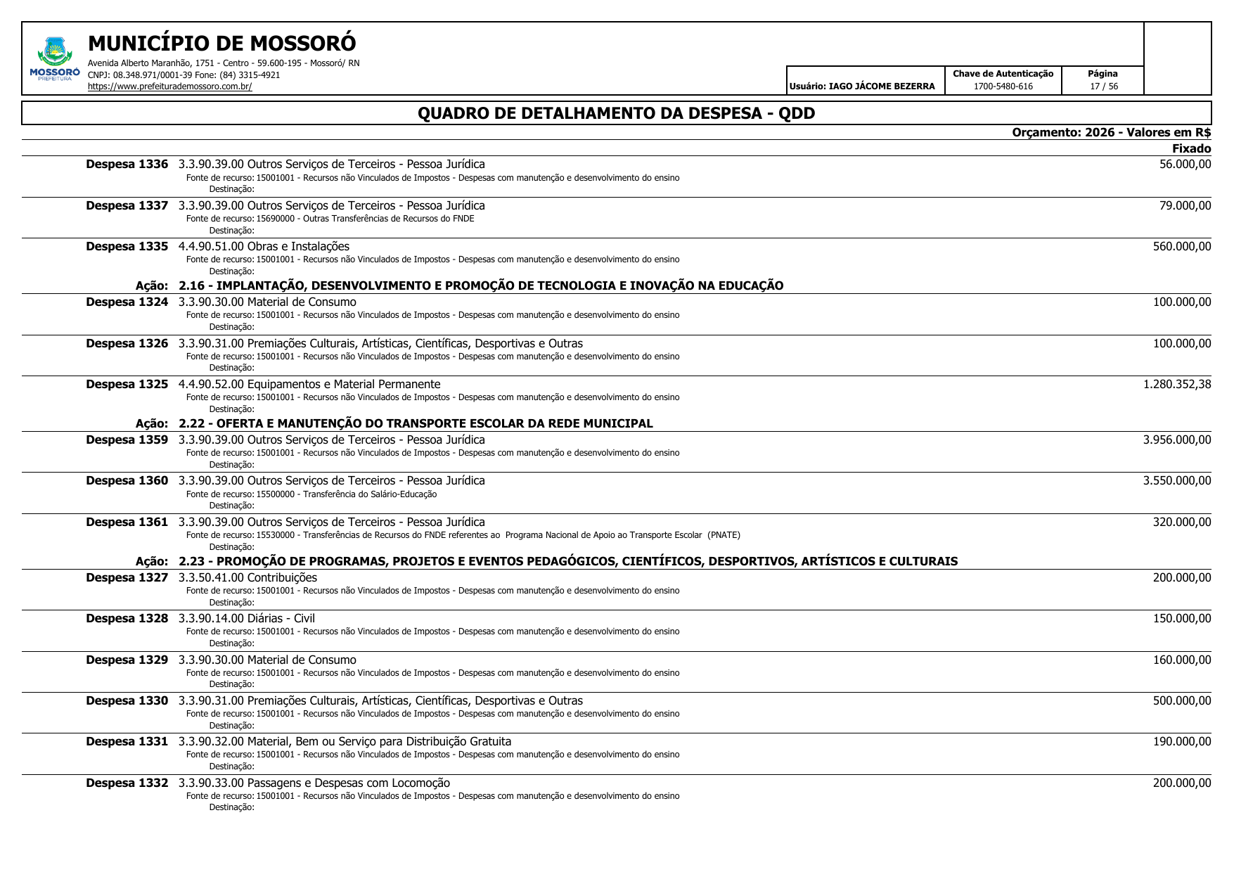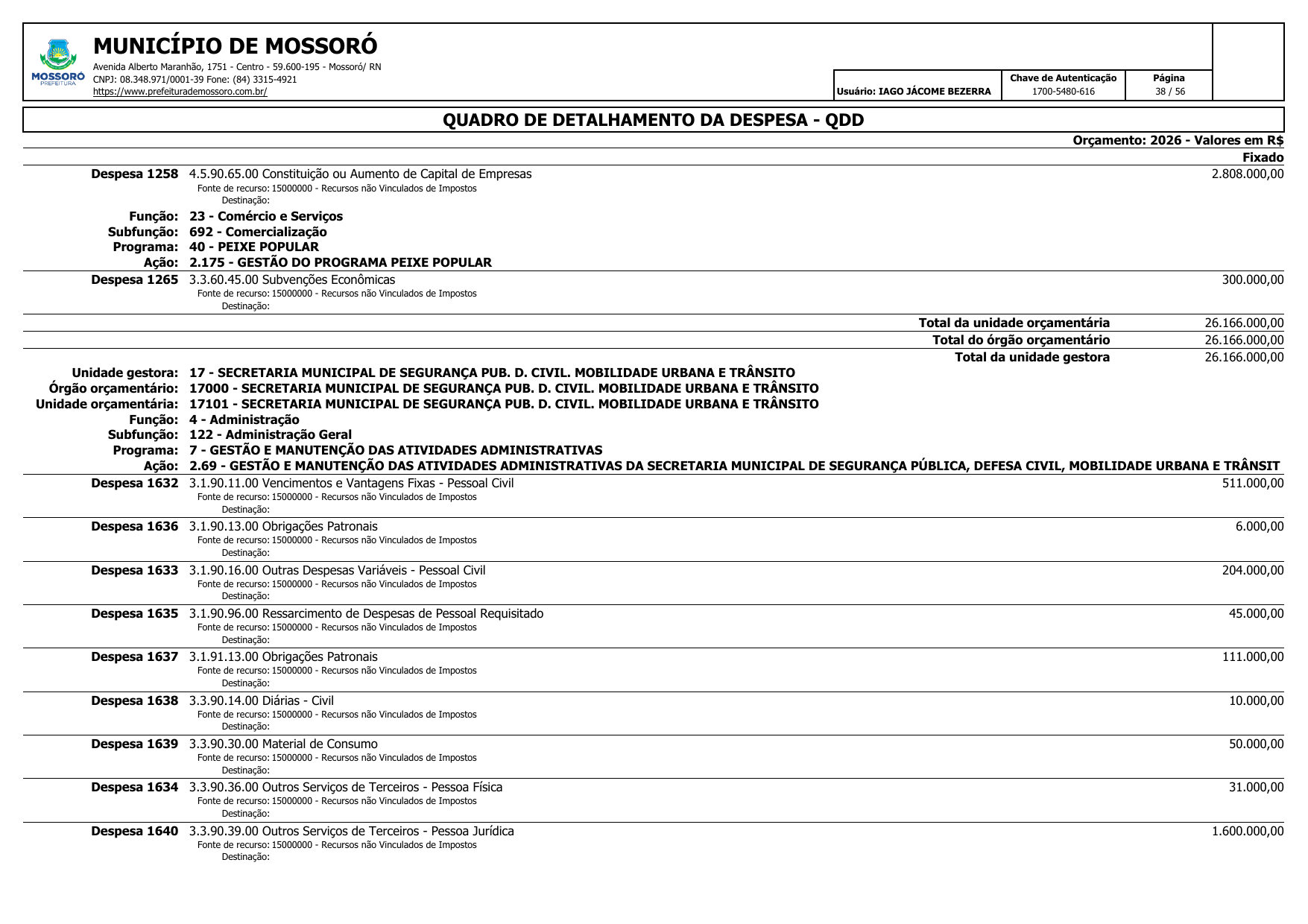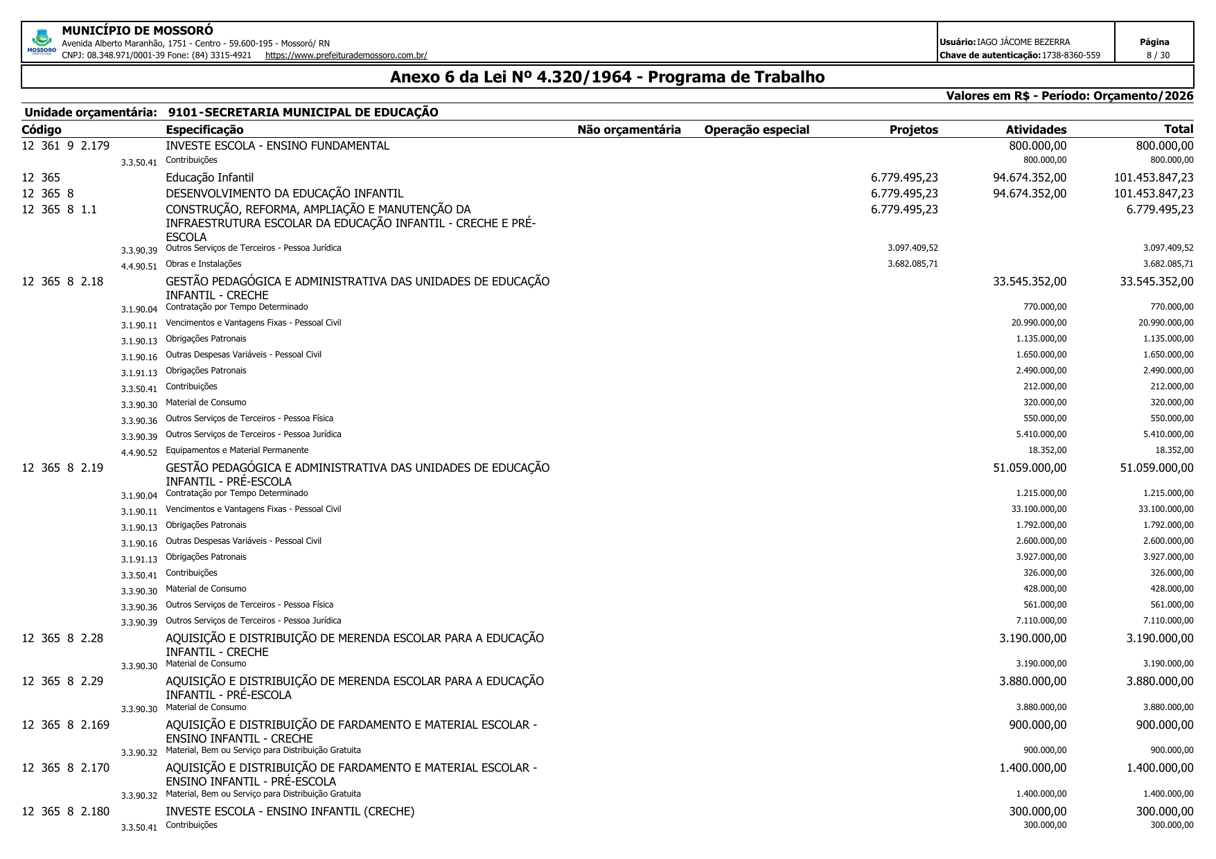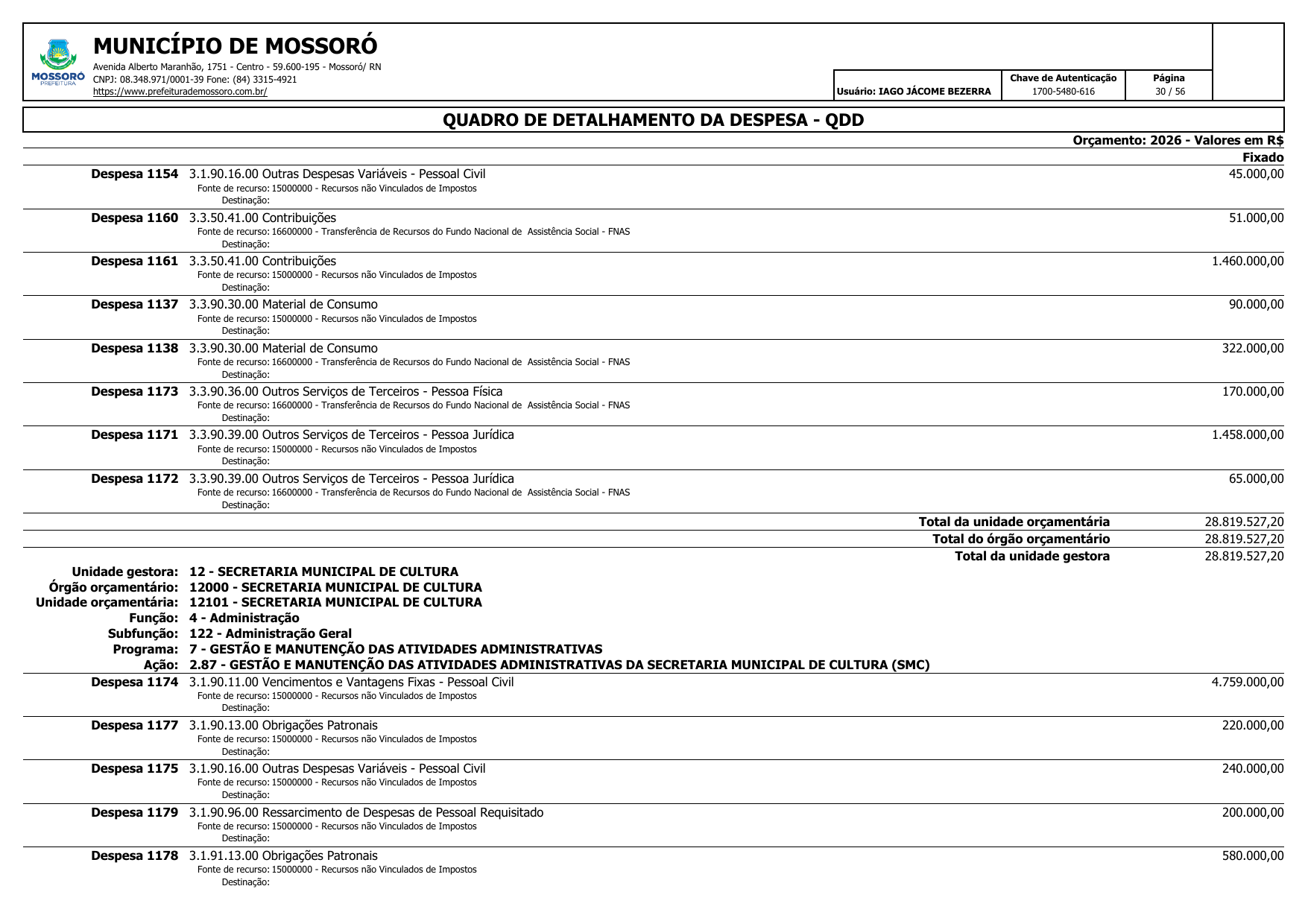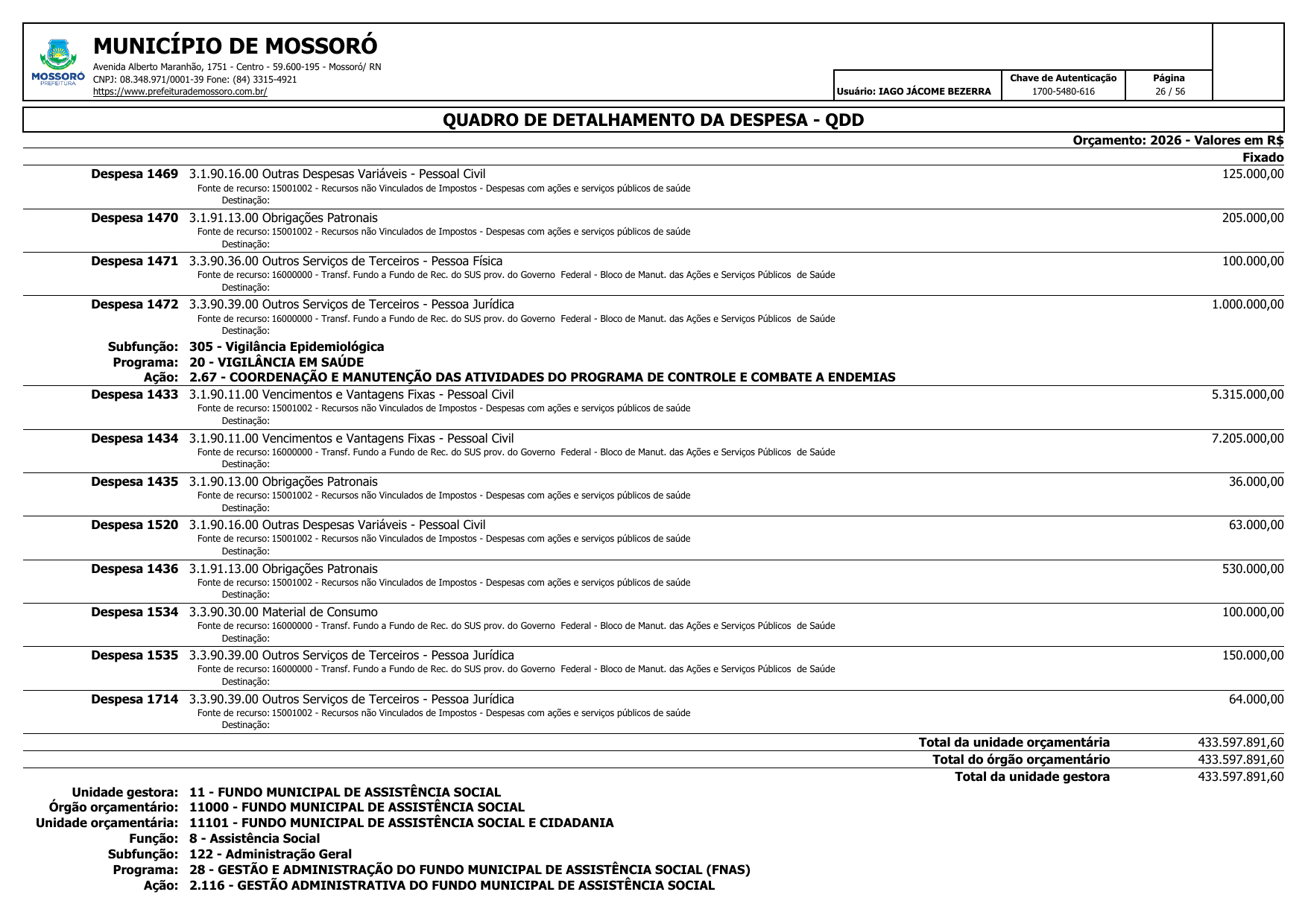 Estima as receitas e fixa as despesas do Município de Mossoró para o exercício financeiro de 2026 e dá outras providências