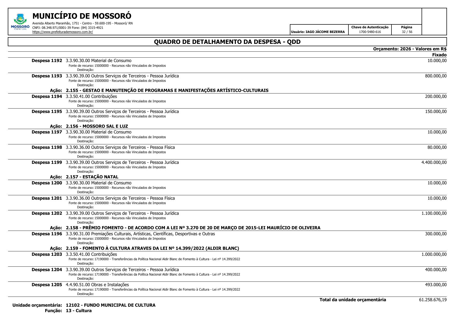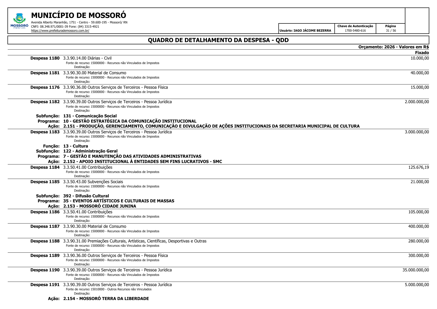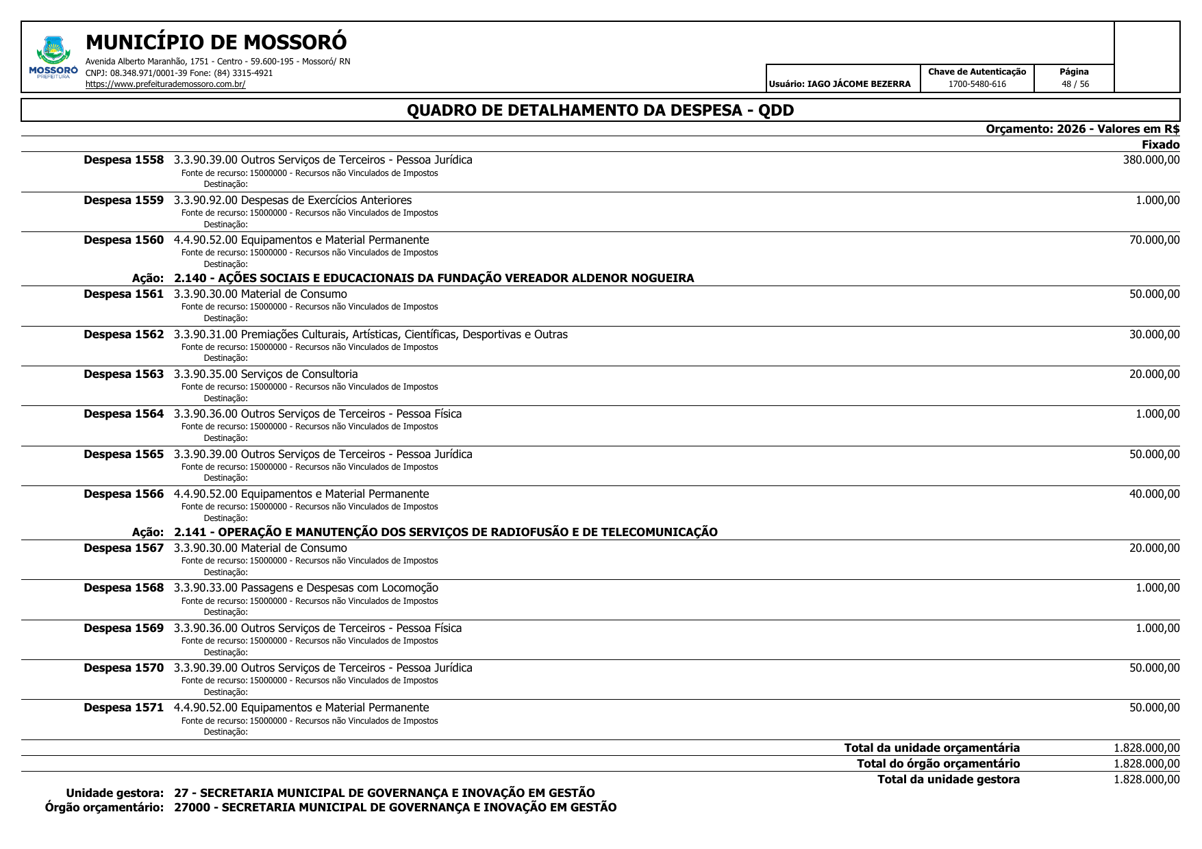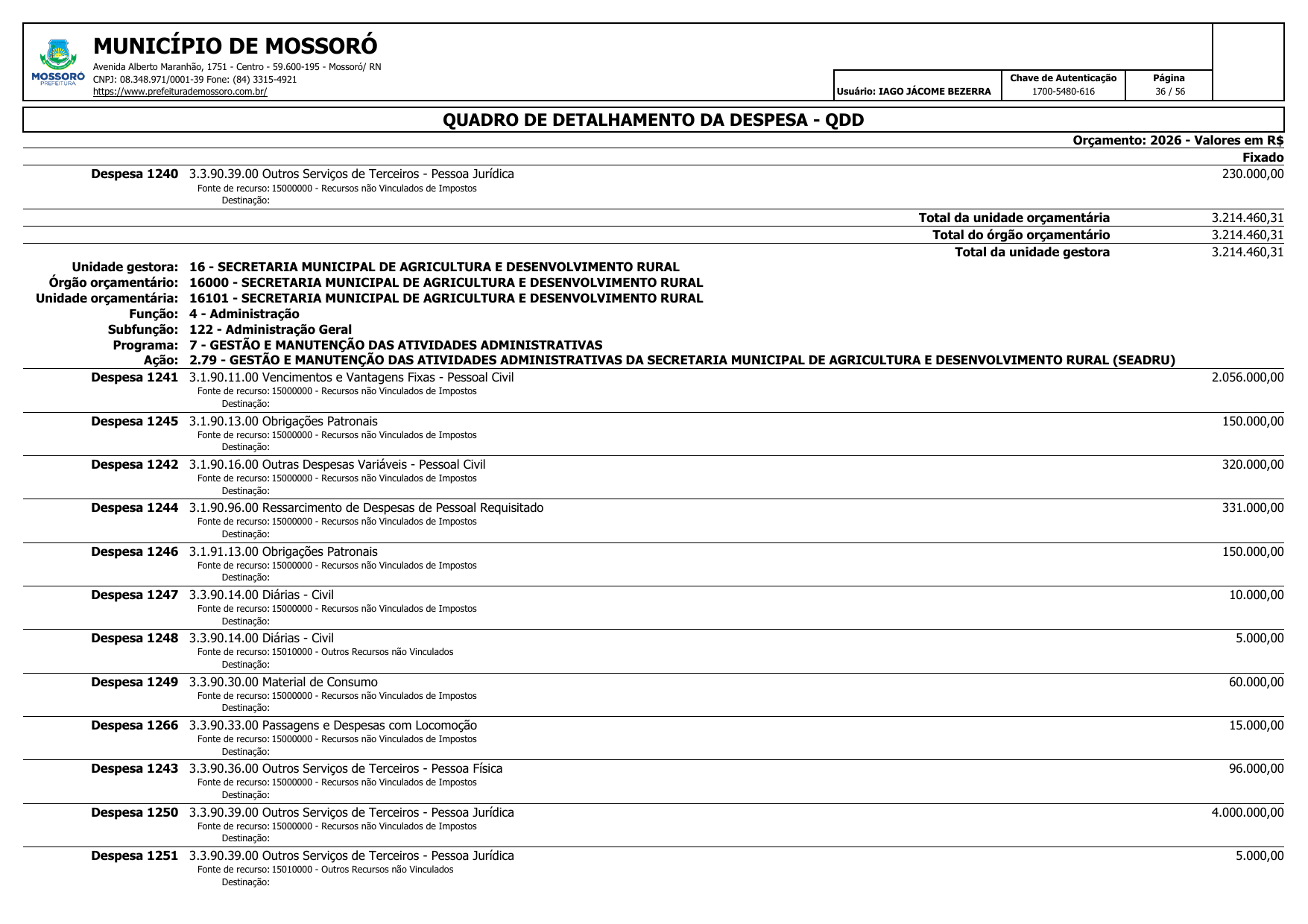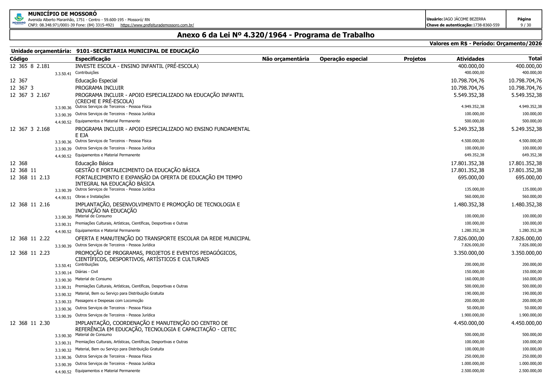 Estima as receitas e fixa as despesas do Município de Mossoró para o exercício financeiro de 2026 e dá outras providências