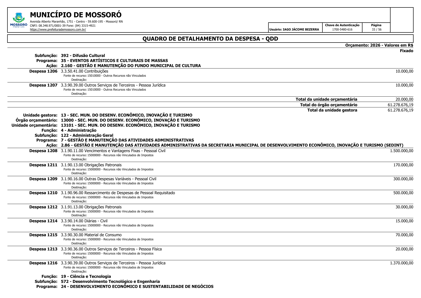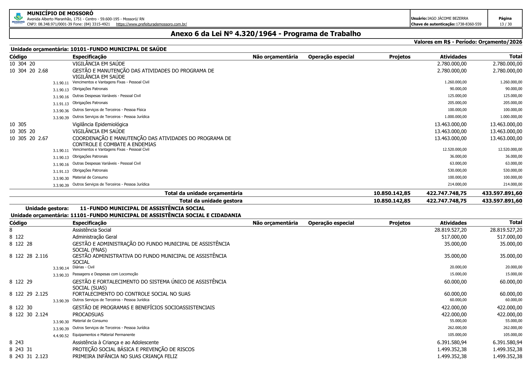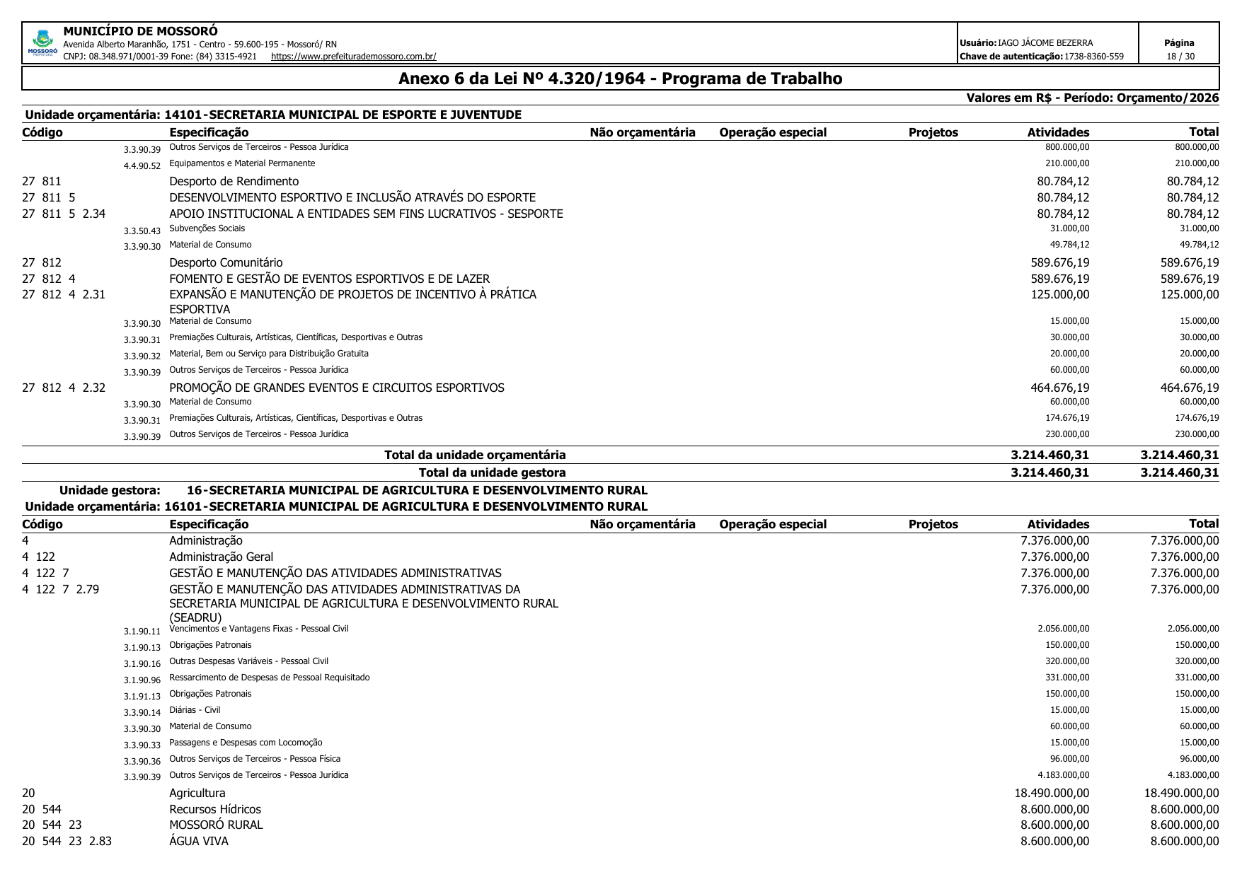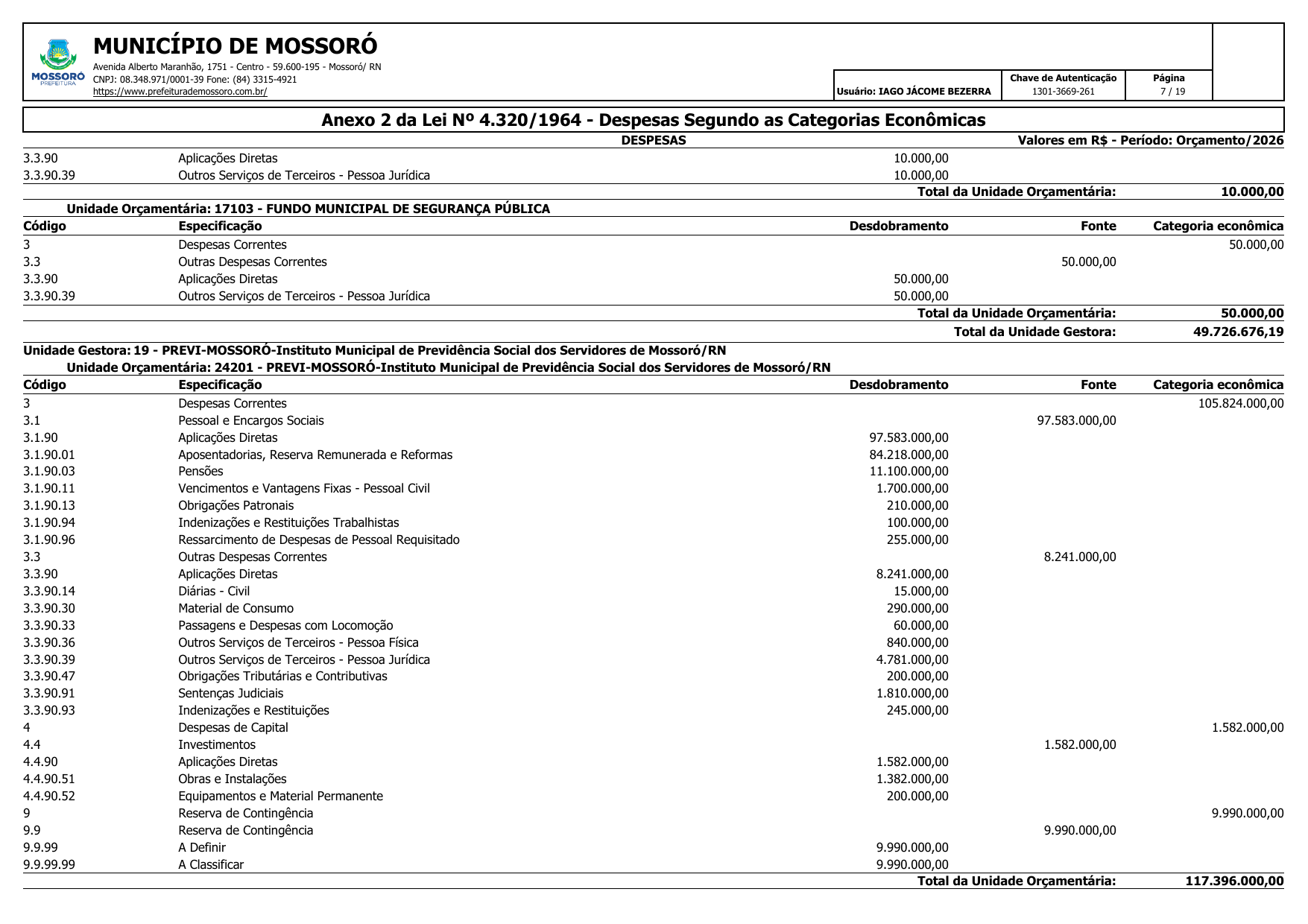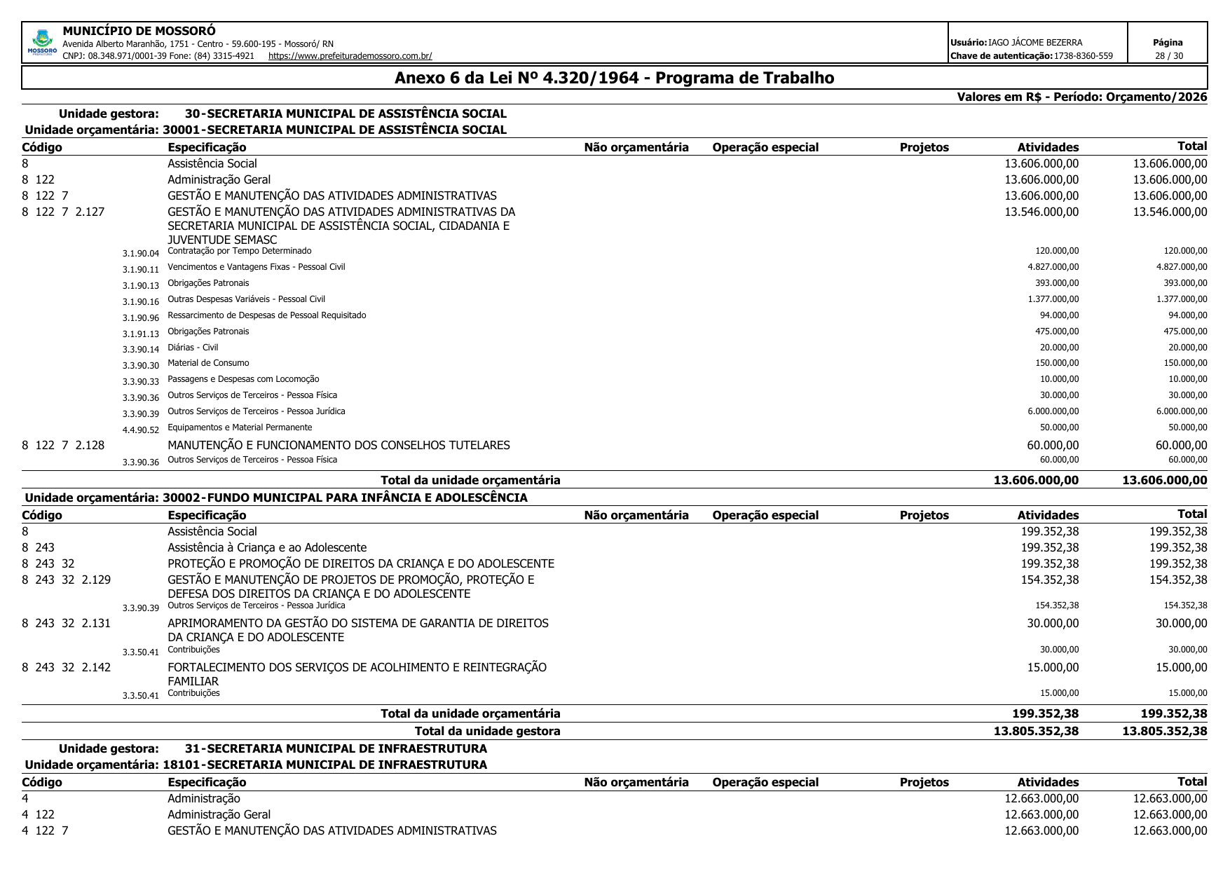 DO ORÇAMENTO FISCAL E DA SEGURIDADE SOCIAL