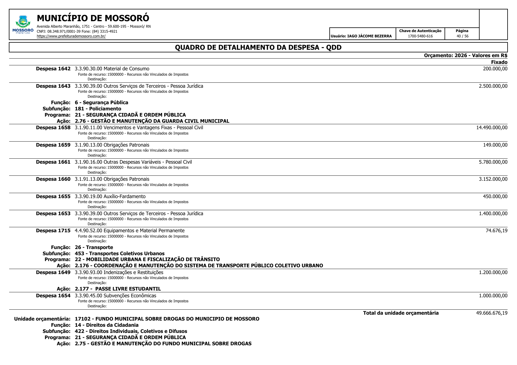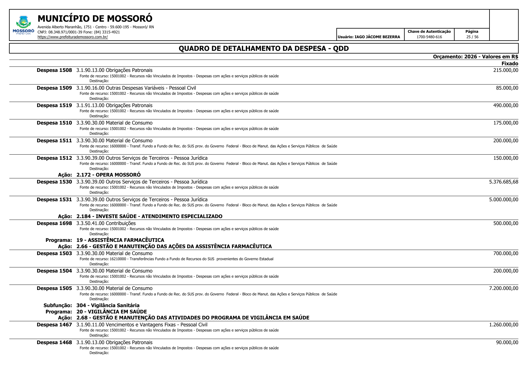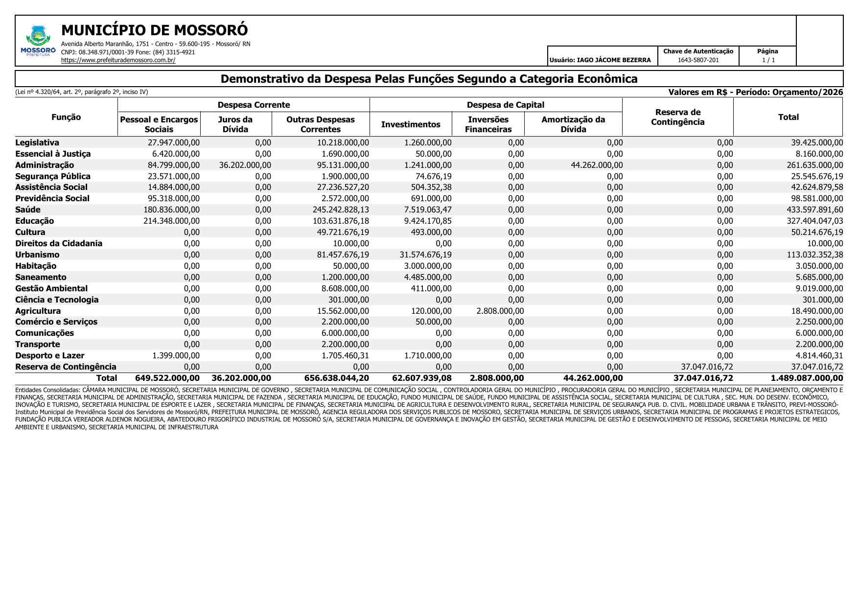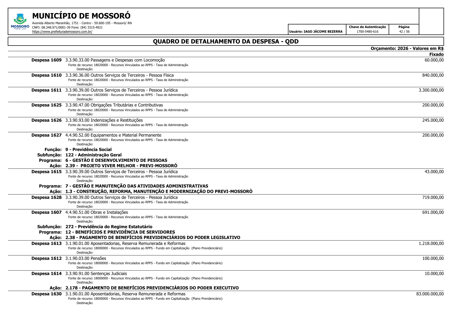 Art. 3° A despesa total fixada nos Orçamentos Fiscal e da Seguridade Social é de R$ 1.489.087.000,00 (um bilhão, quatrocentos e oitenta e nove milhões, oitenta e sete mil reais), em observância ao disposto no art. 5° da Lei Complementar Federal n° 101, de 2000 e nos arts. 7° e 8° da Lei n° 4.203 de 2025 com o seguinte desdobramento:
