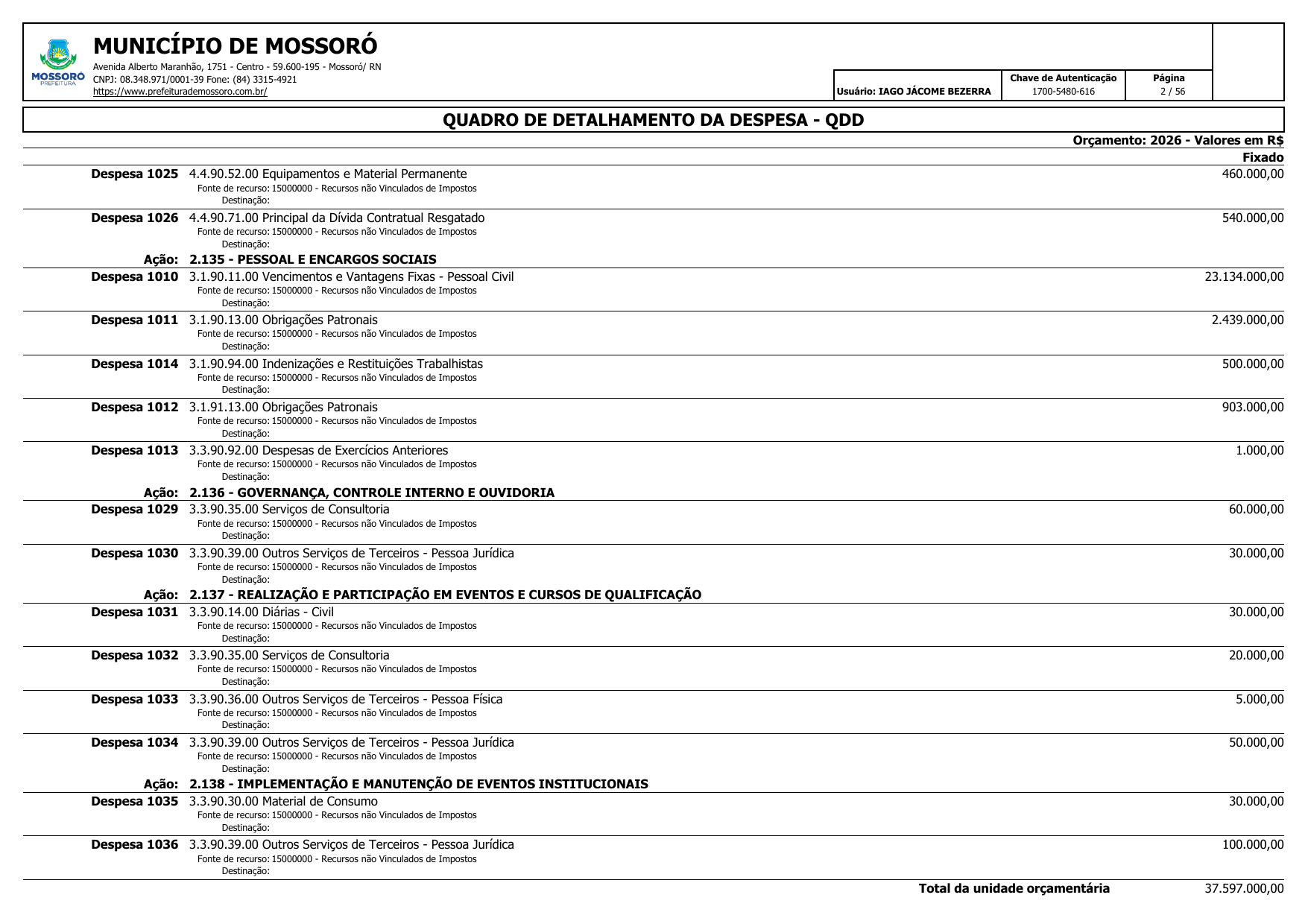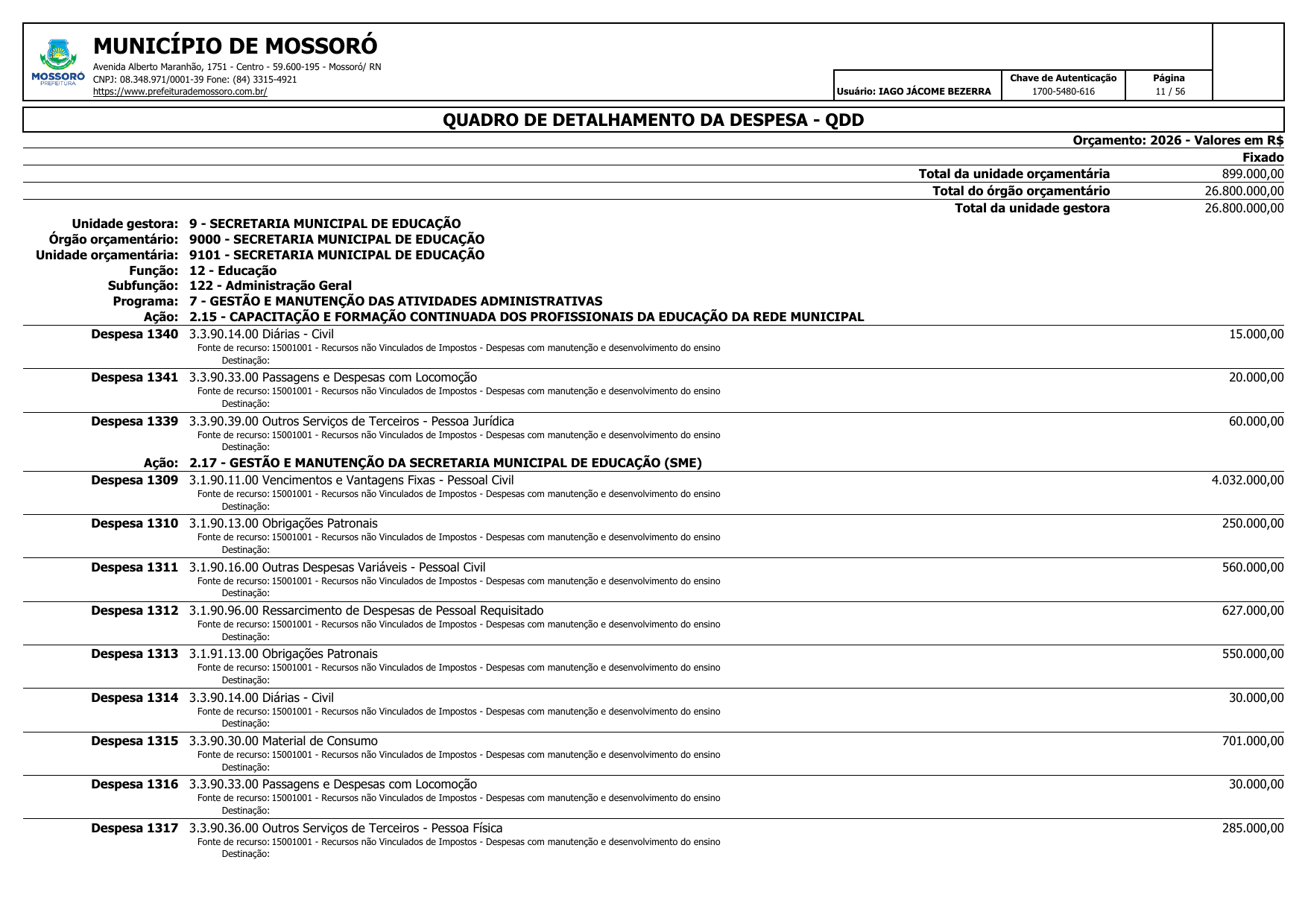 XI - Quadro de Detalhamento da Despesa - QDD;
