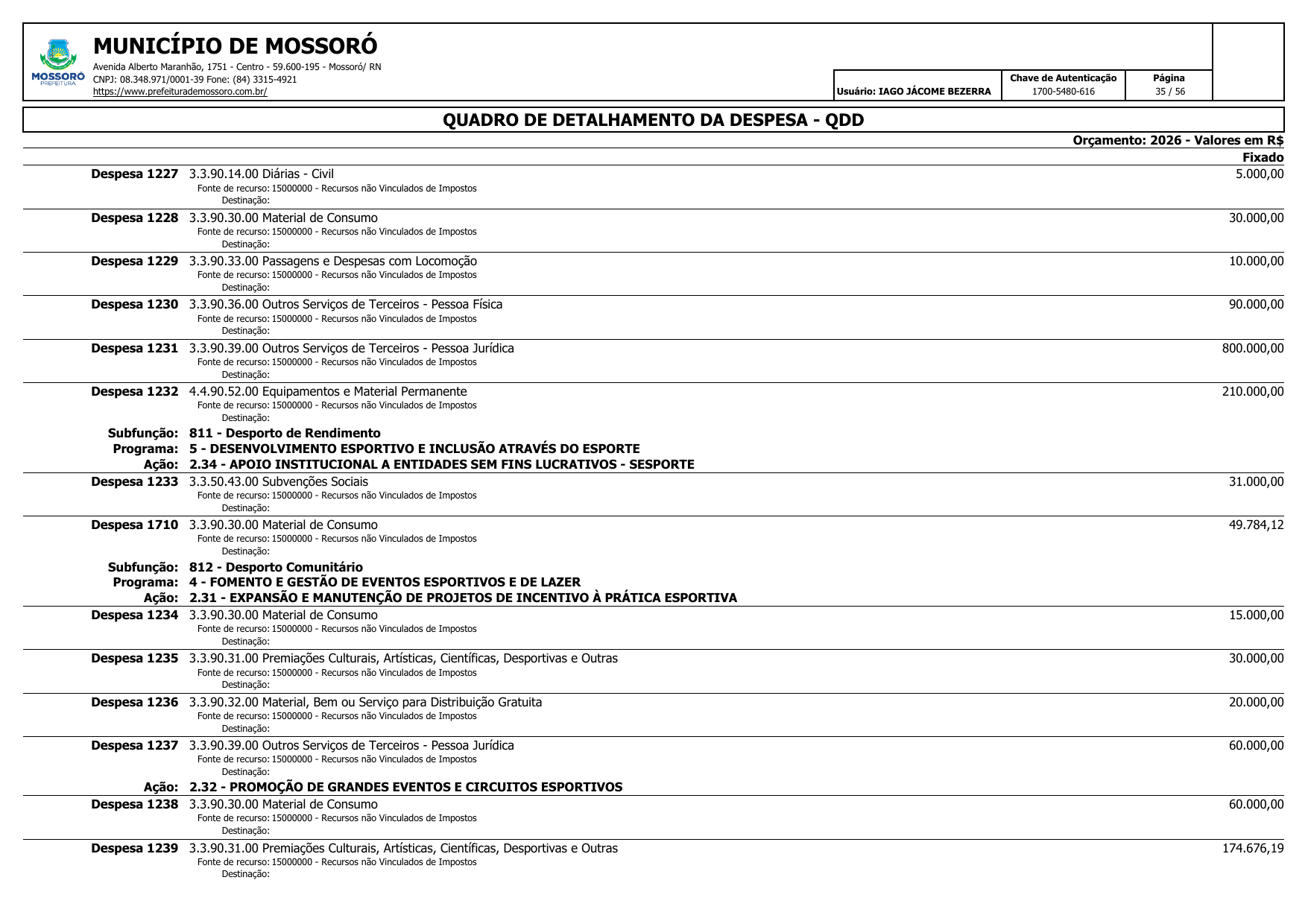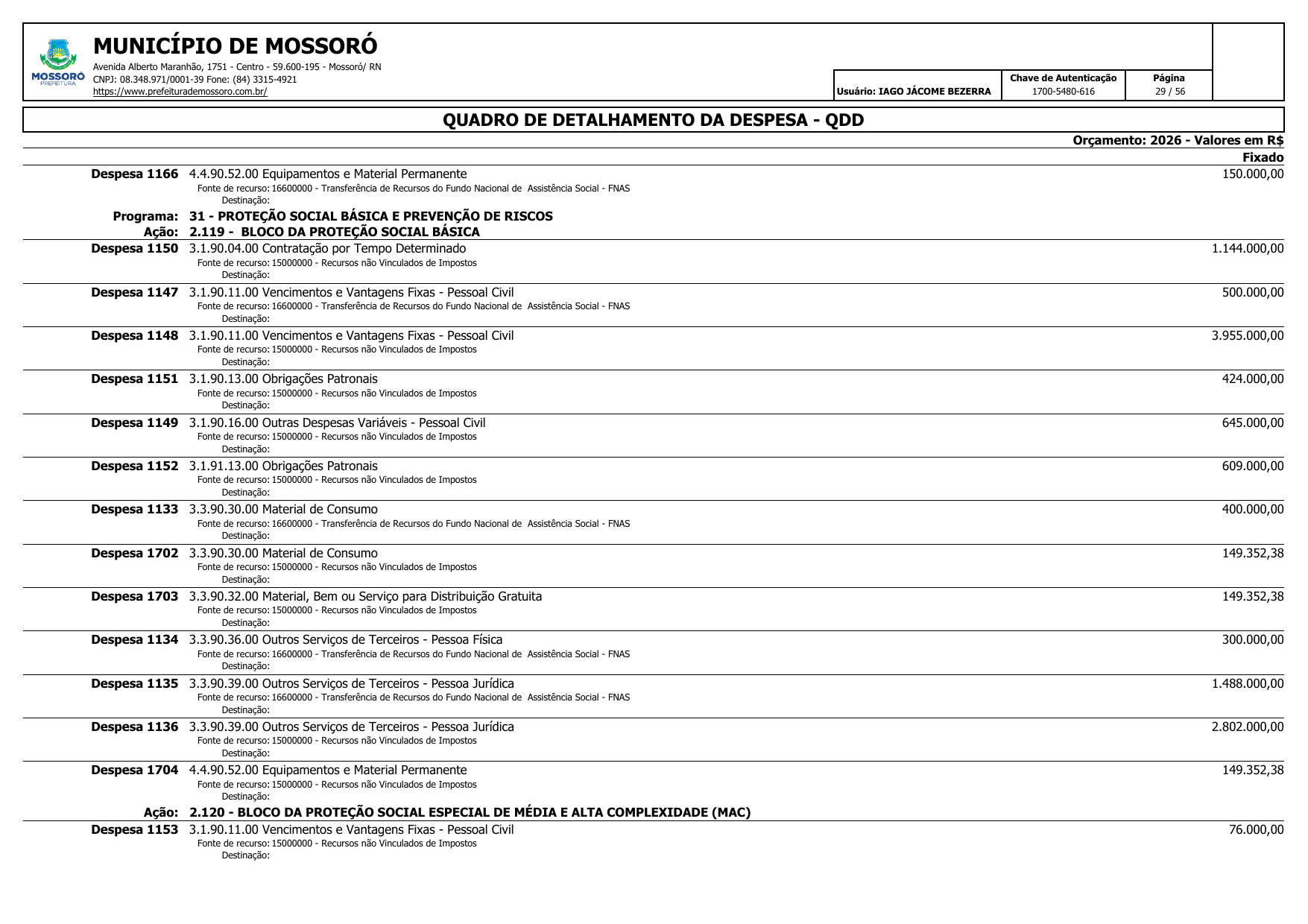 Art. 4° A despesa, fixada à conta de recursos previstos neste Capítulo, observada a programação constante no Detalhamento das Ações, é apresentada por unidade orçamentária, conforme desdobramento constante no Quadro de Detalhamento de Despesa - QDD apresentado nesta Lei. Seção IV Da autorização para a abertura de créditos suplementares