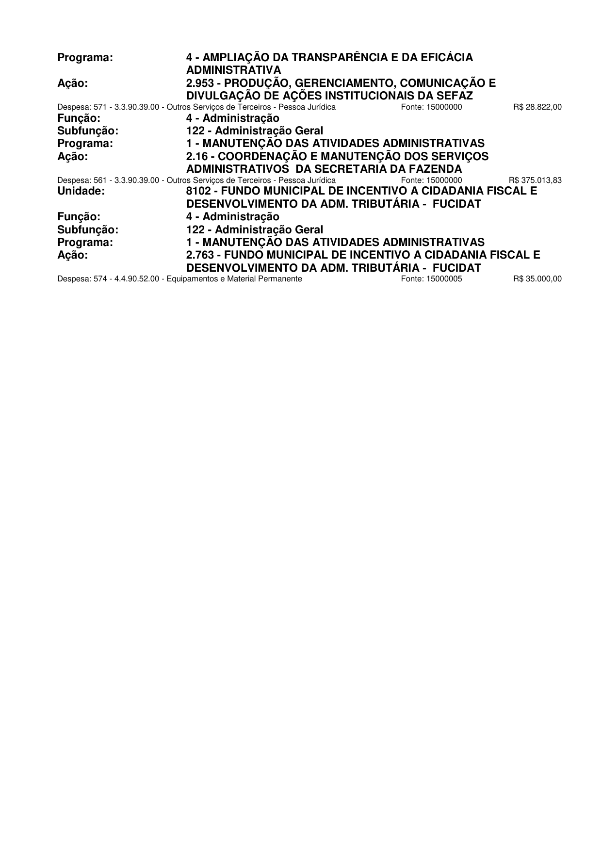 I - O Orçamento Fiscal, referente aos Poderes do Município, seus fundos, órgãos e entidades da Administração Direta e Indireta, inclusive Autarquia instituída e mantida pelo Poder Público;