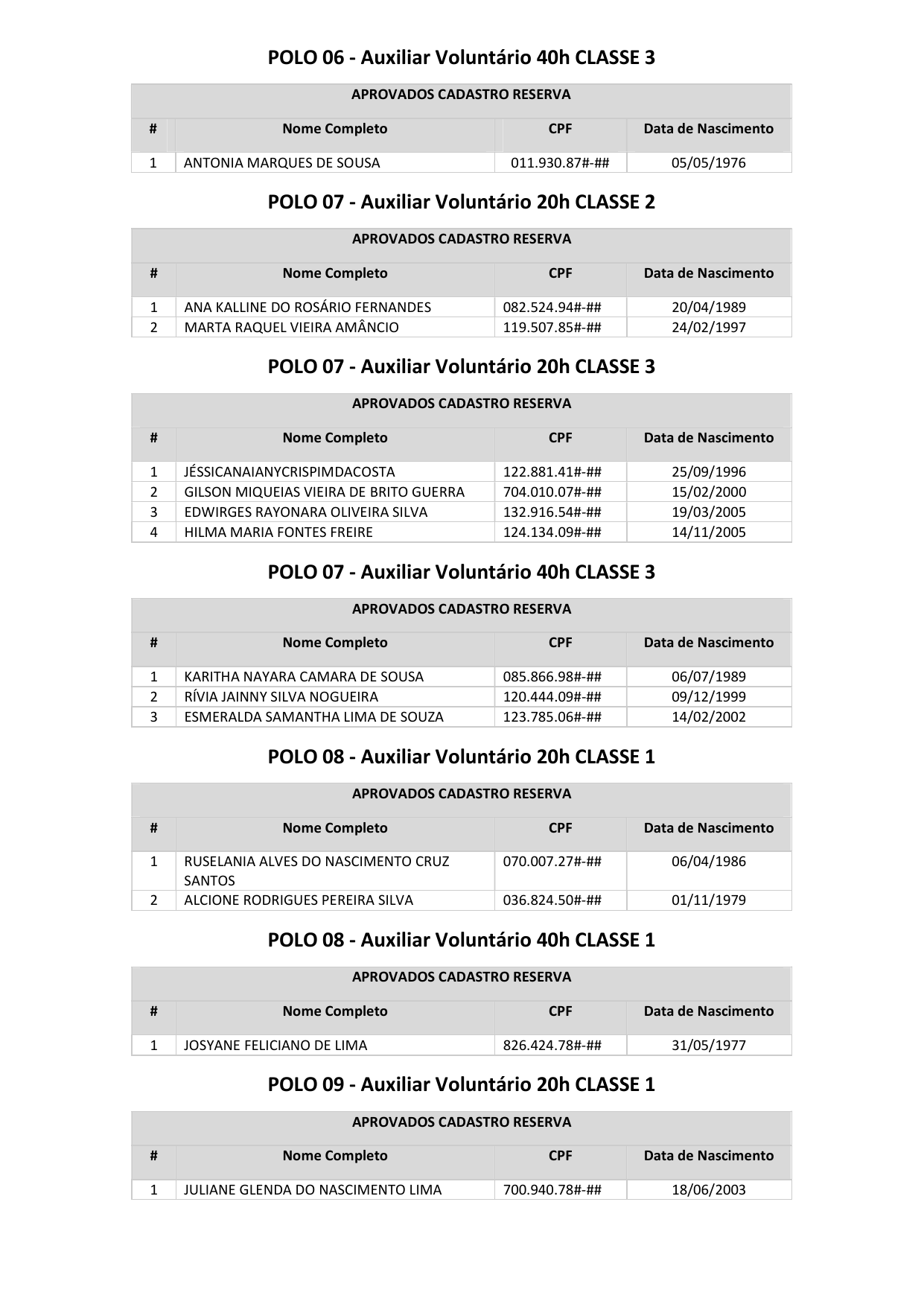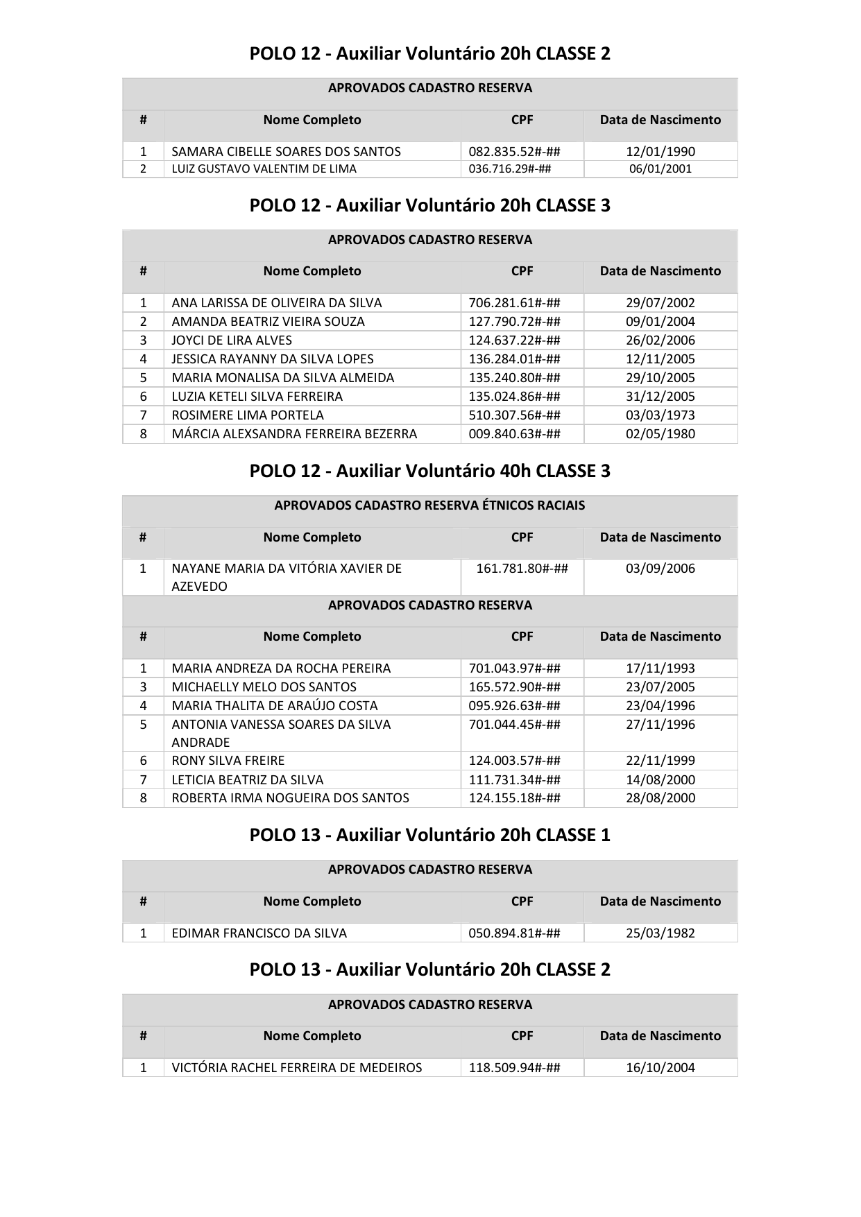 Registra-se que os(as) candidatos(as) classificados(as) além do número de vagas ofertadas, se houver, integrarão o cadastro de reserva, podendo ser convocados(as) conforme a necessidade e conveniência da Administração, durante o prazo de validade do certame.